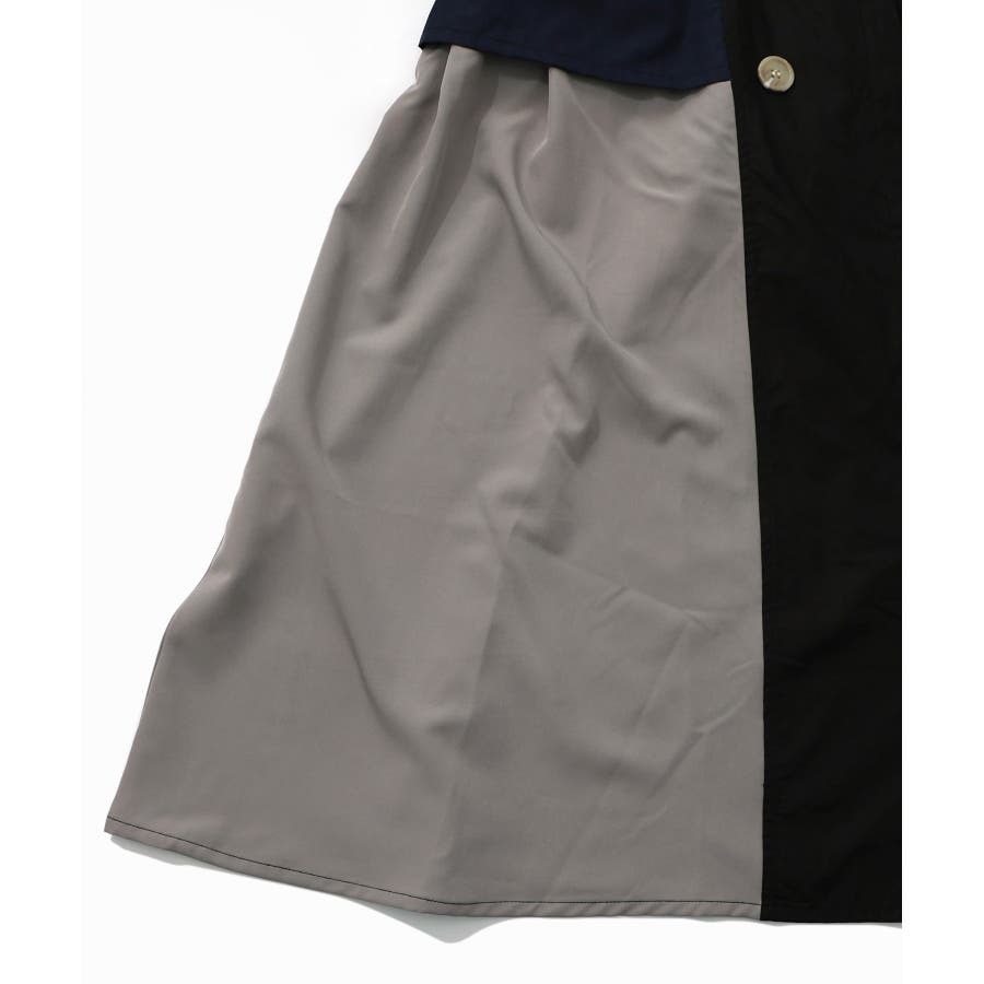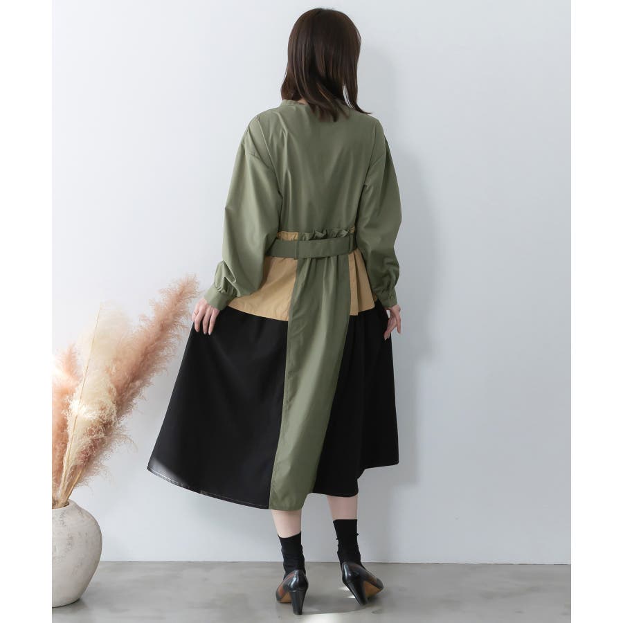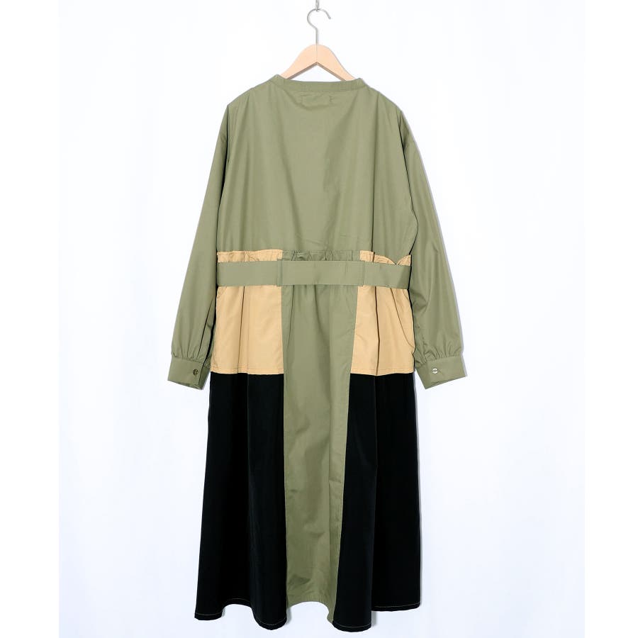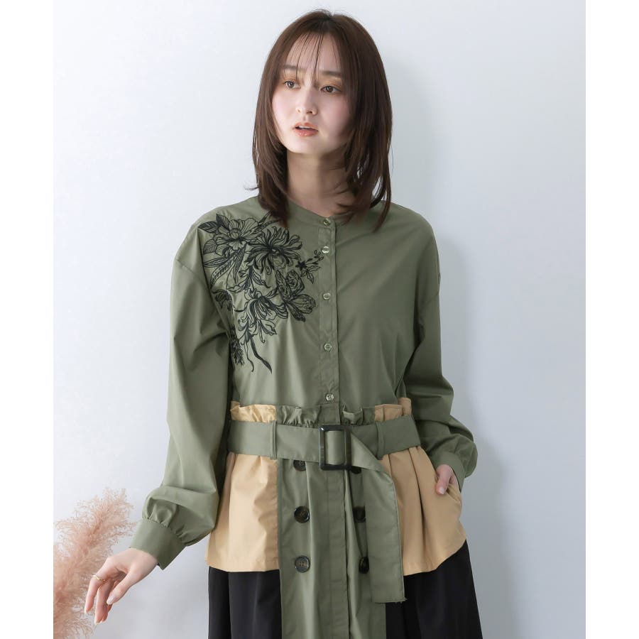 花刺繍トレンチコート風 異素材切替ワンピース