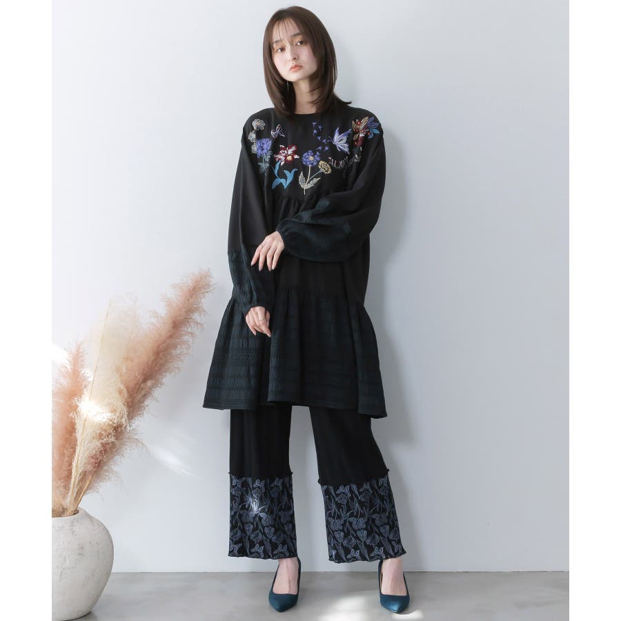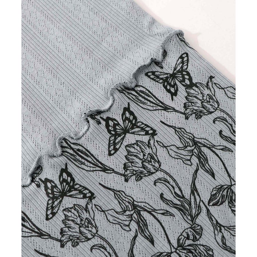 裾にあしらったチューリップと蝶々柄がコーディネートを華やかに彩ります。