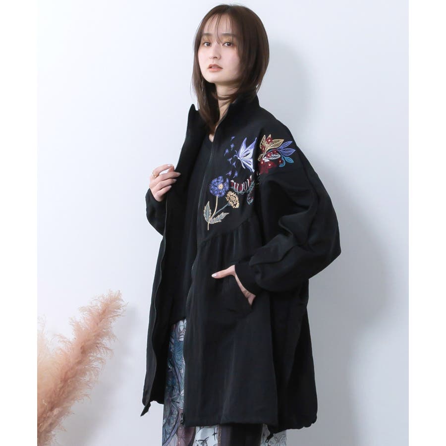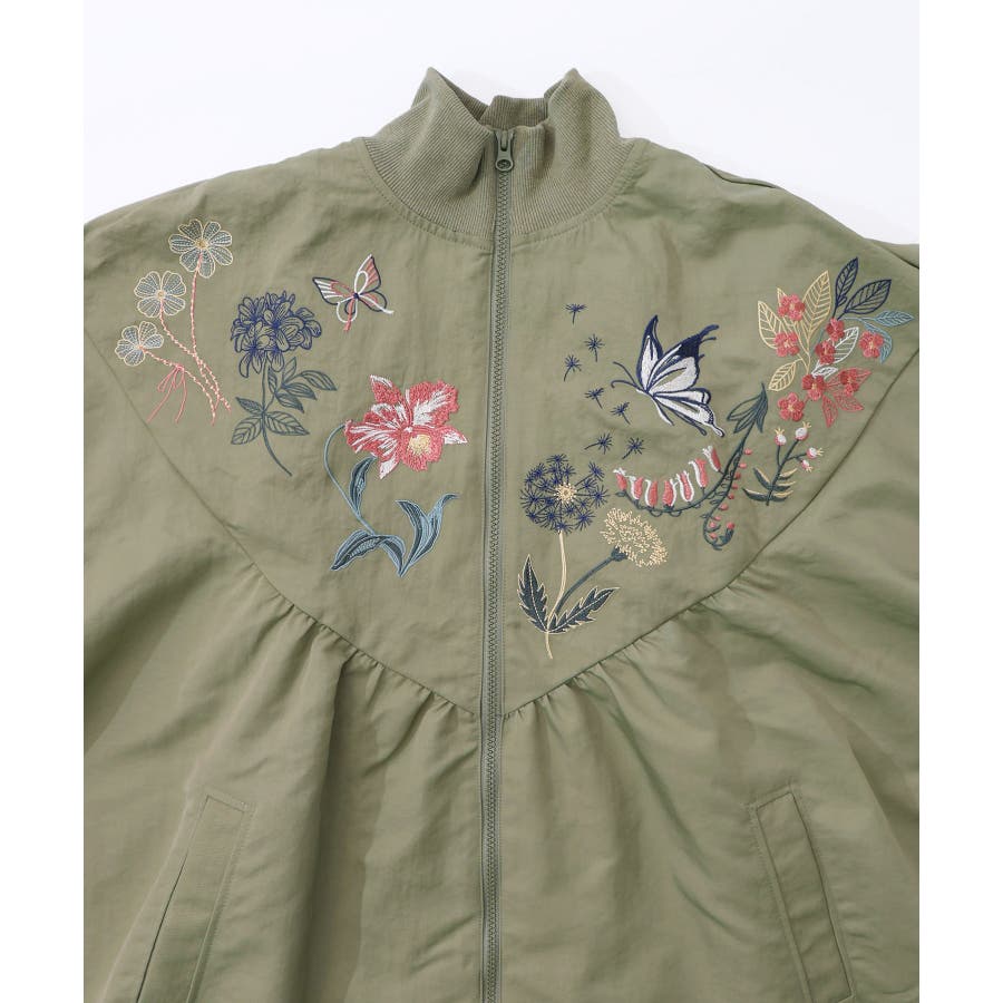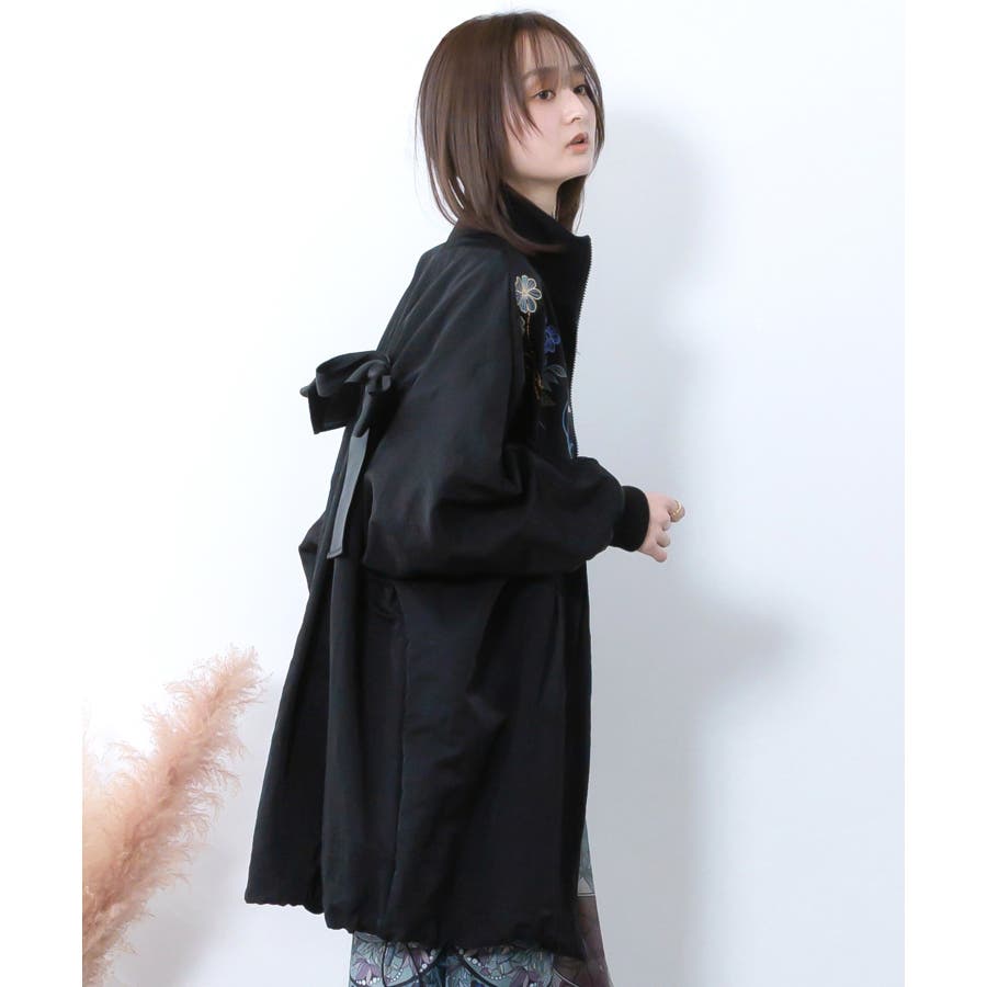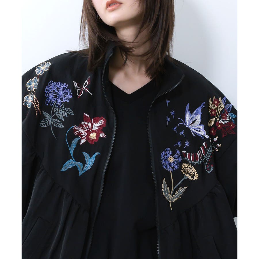 リボン×花刺繍ドルマンスリーブブルゾン