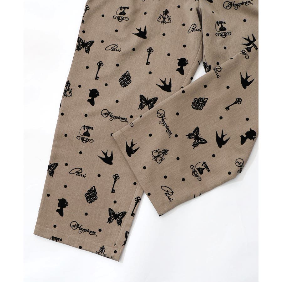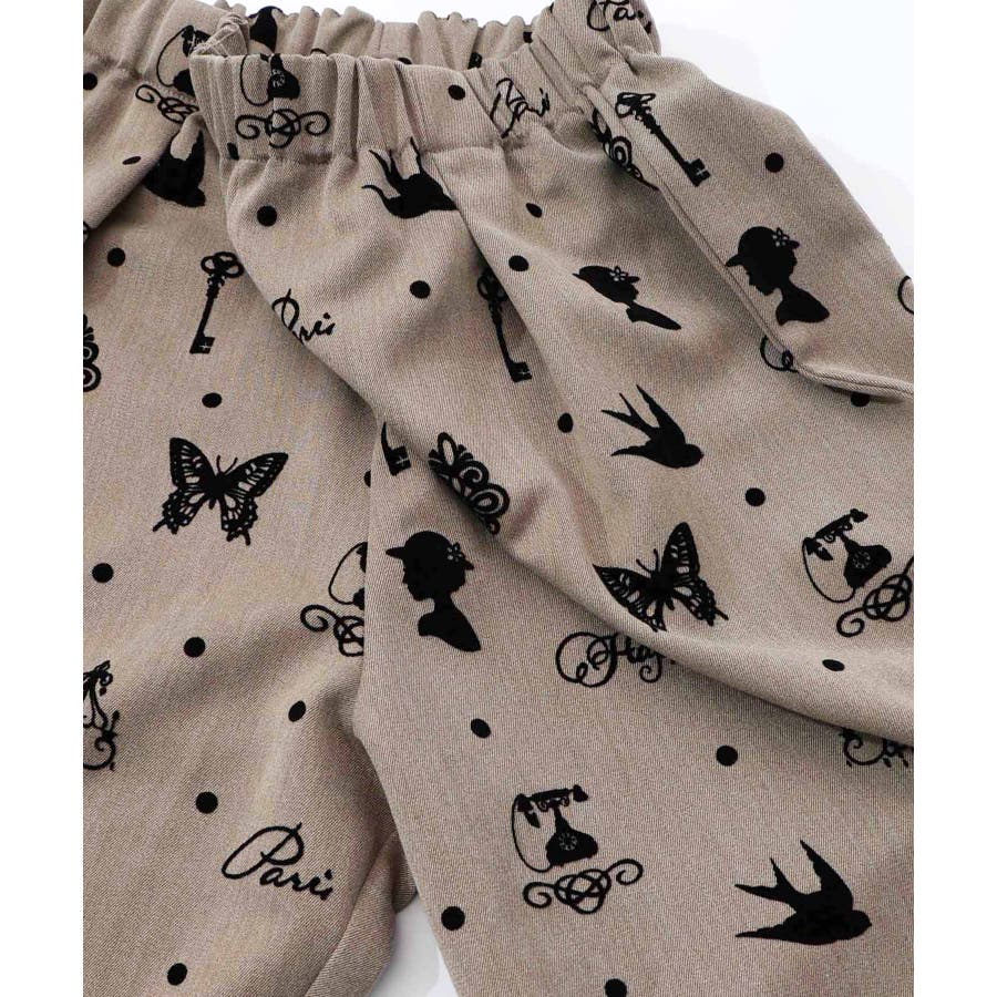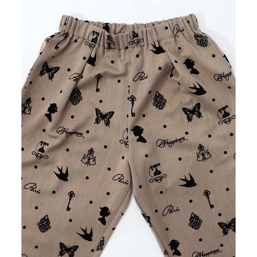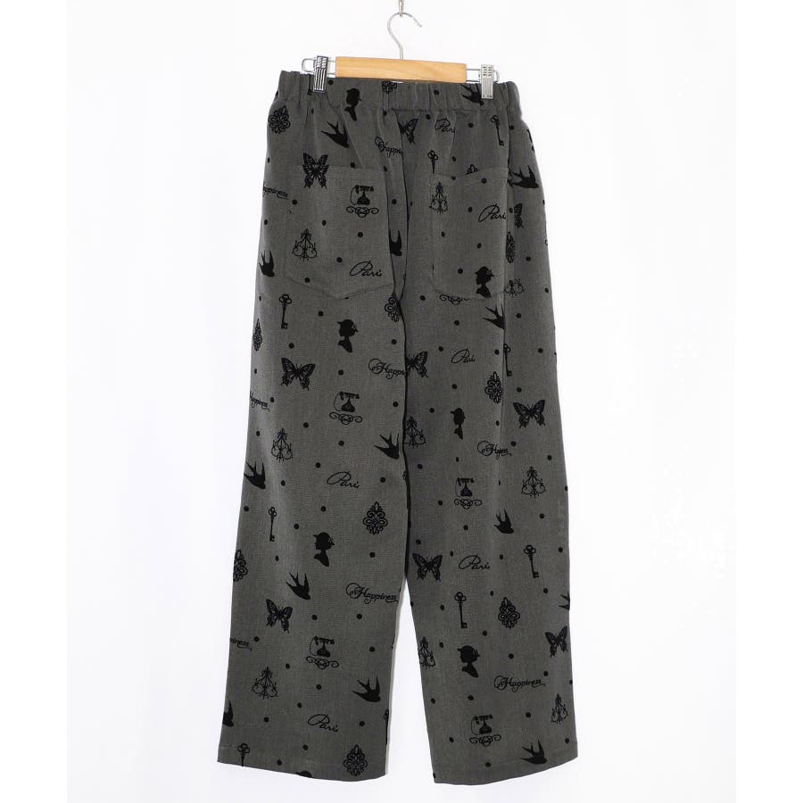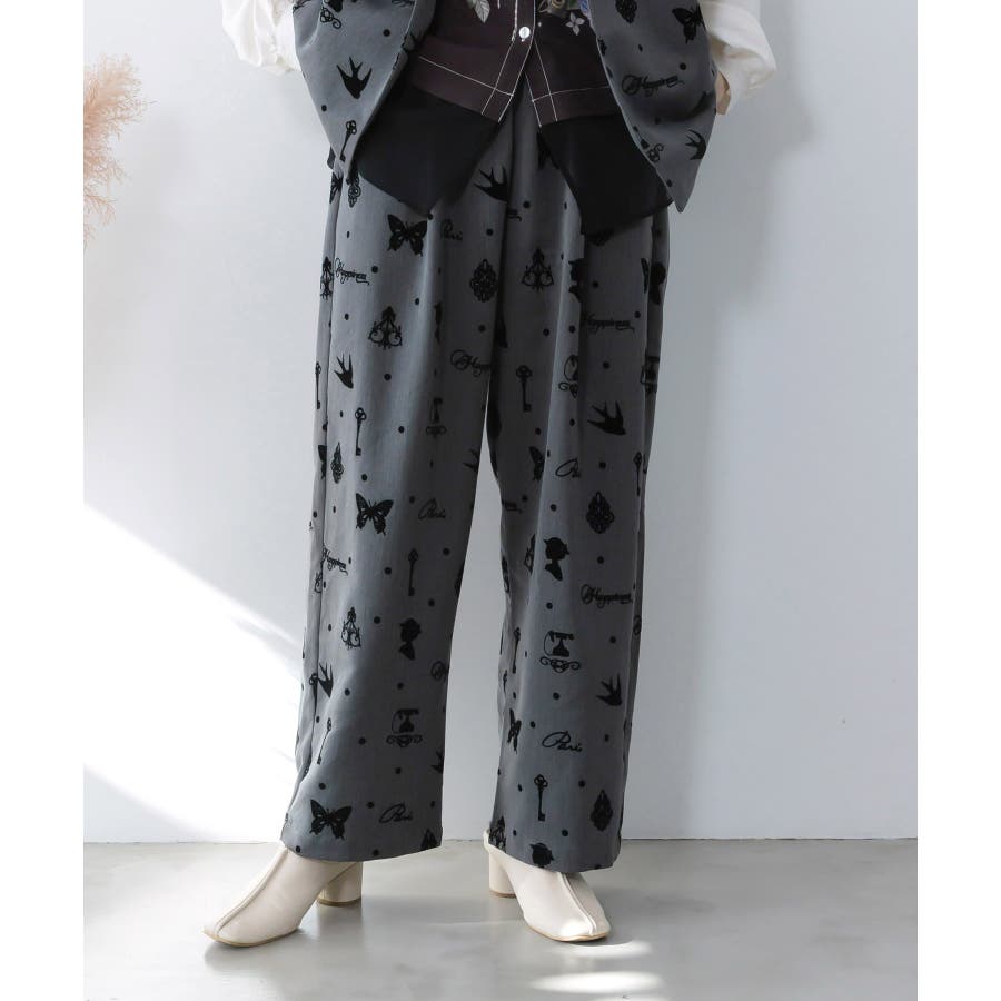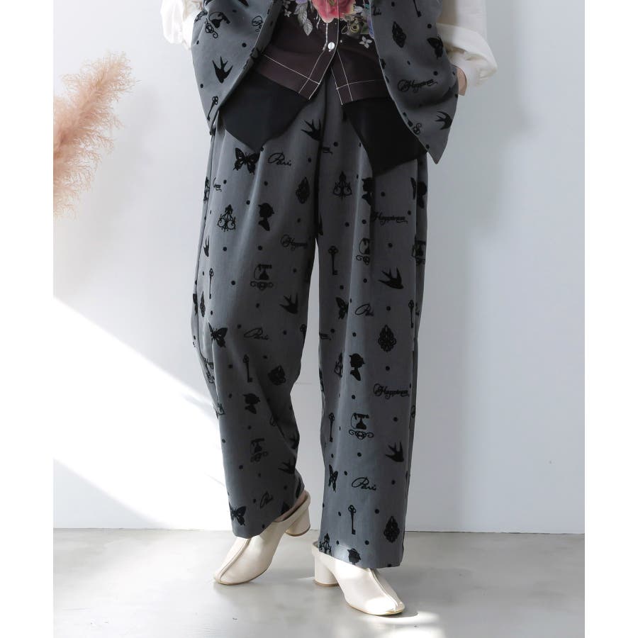 アンティーク調モチーフがさりげなく浮かび上がるタック入りパンツ。