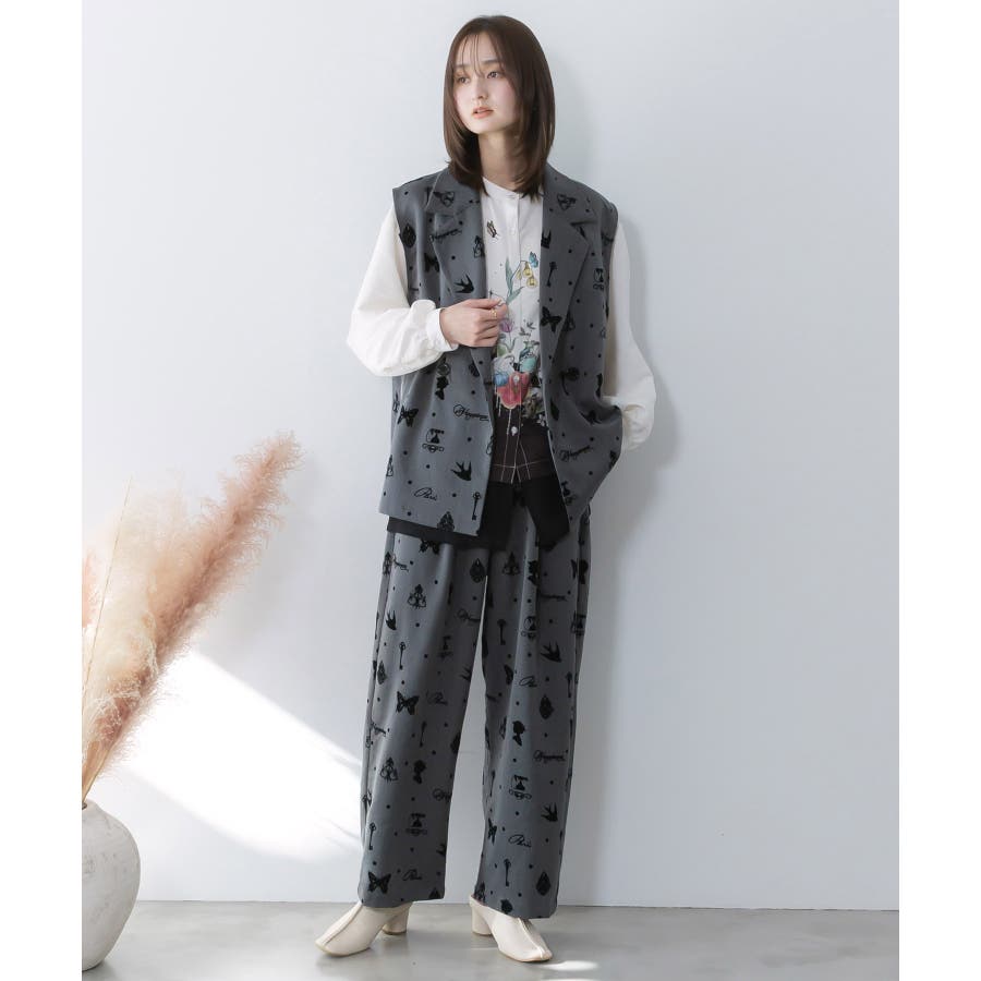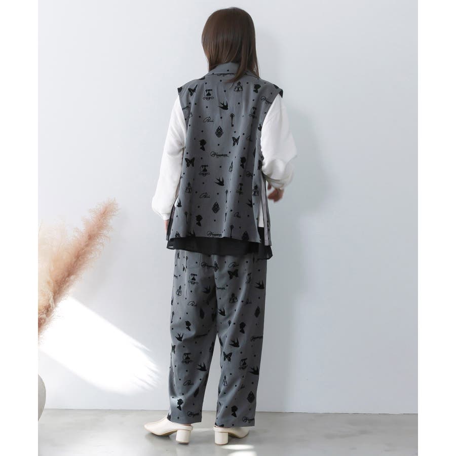 同柄デザインのベストと合わせれば、セットアップ風のこなれたスタイリングも楽しめます。