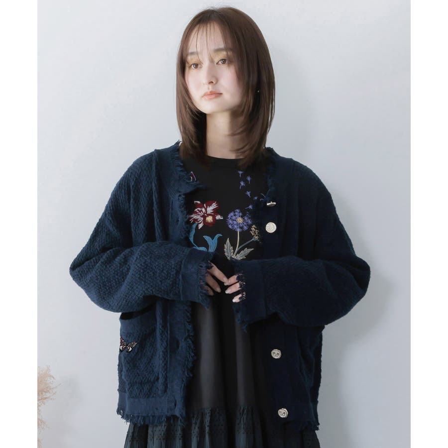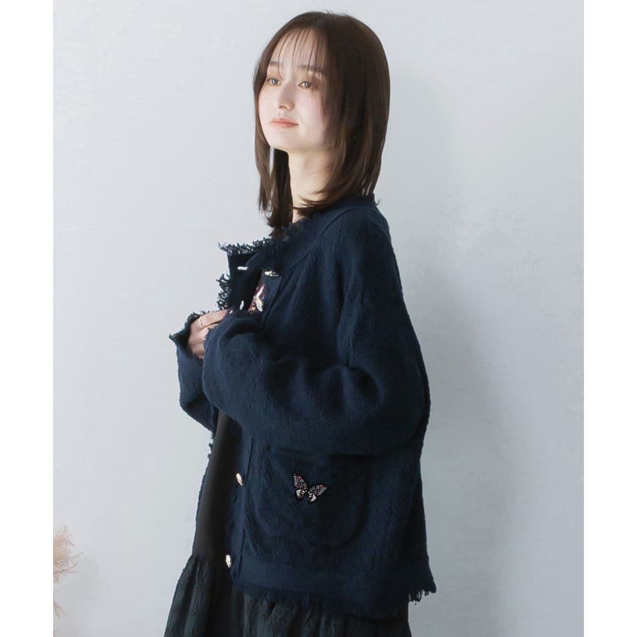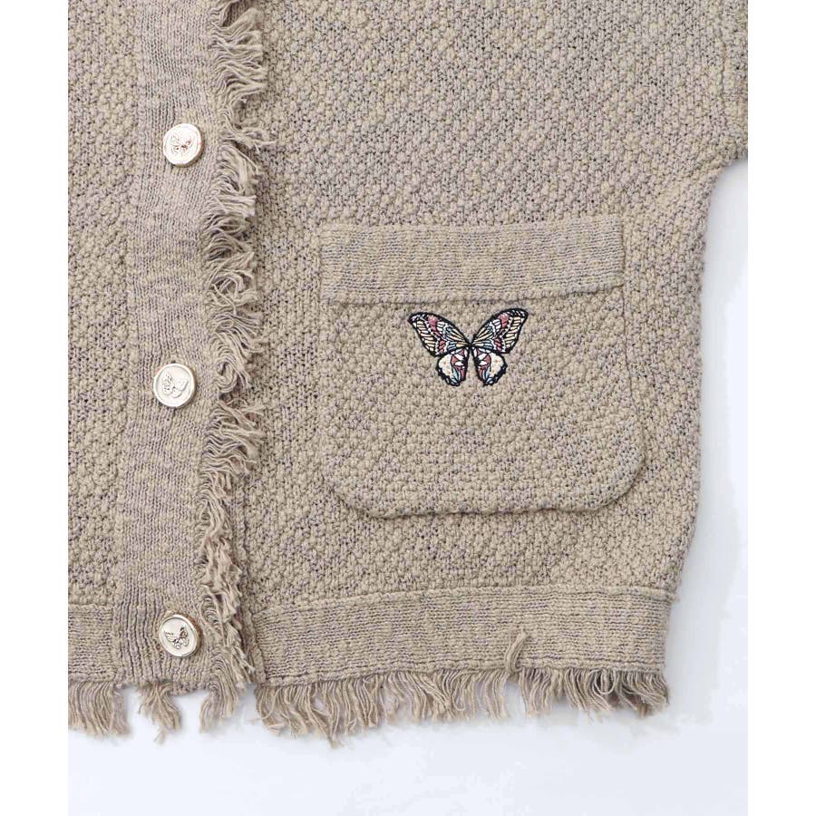 蝶刺繍×蝶ボタン付きニットカーディガン