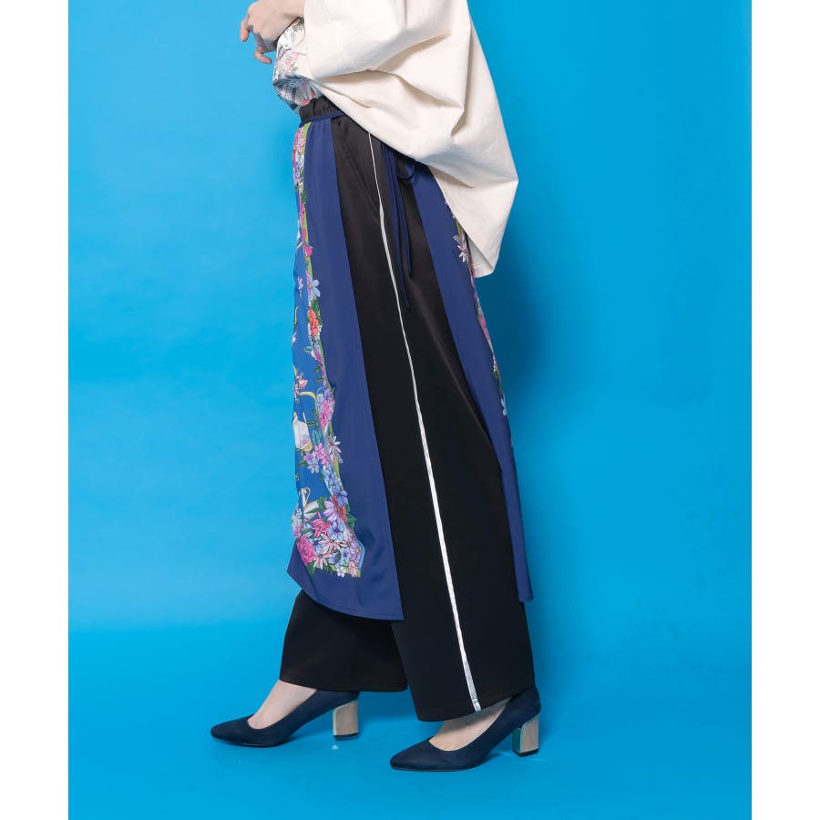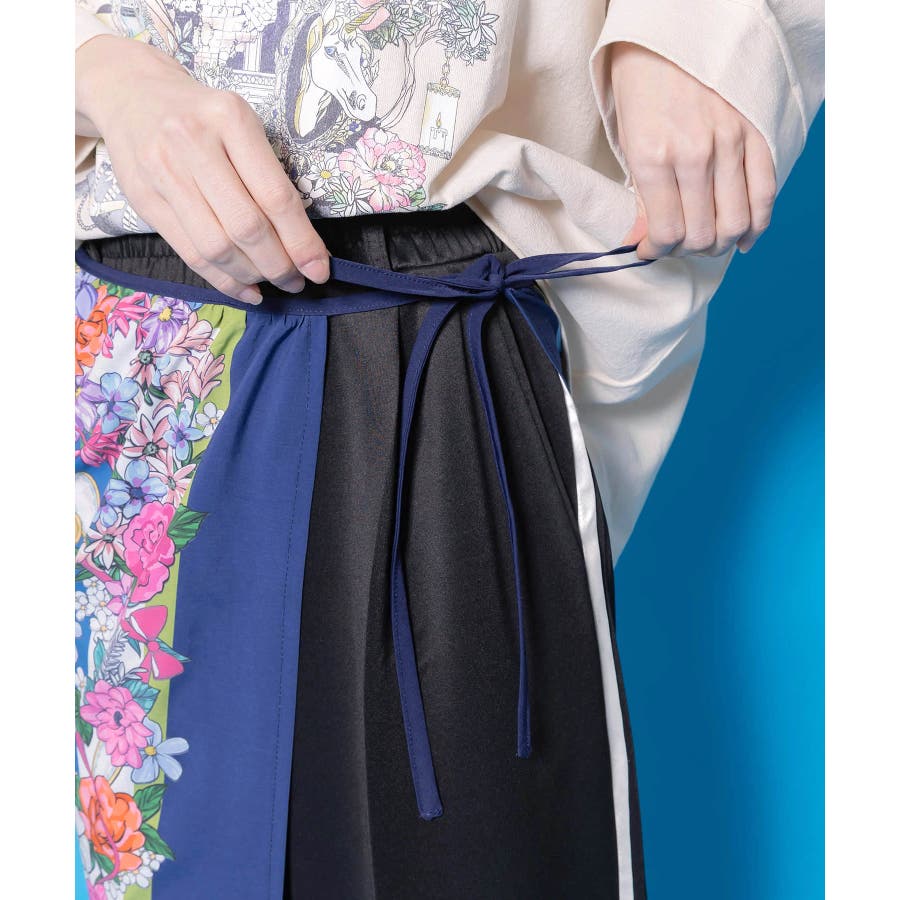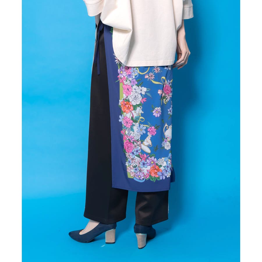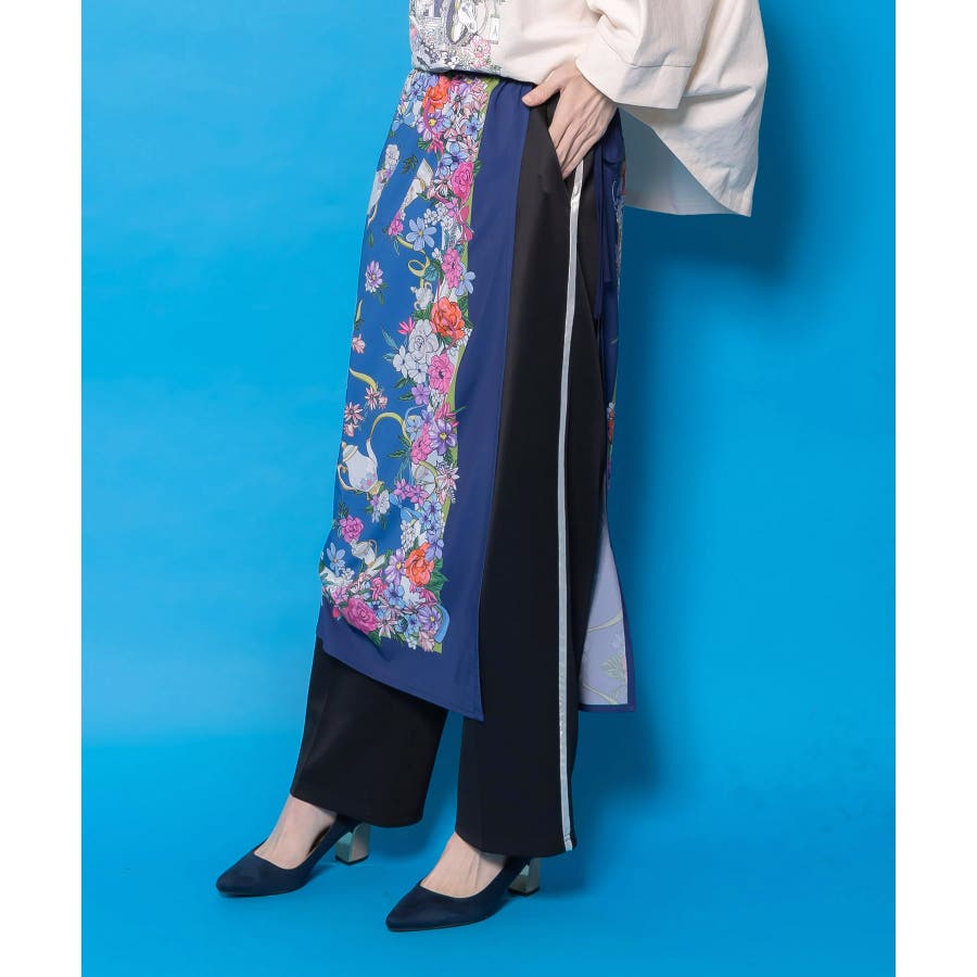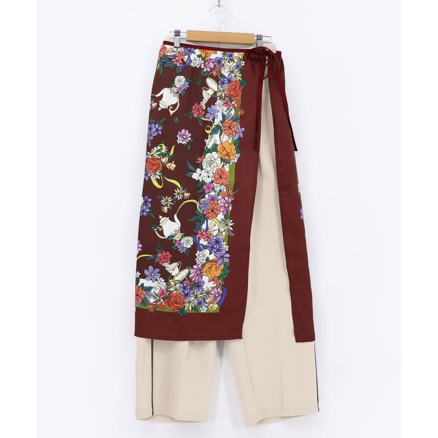 スカーフ柄巻きスカート付きパンツ