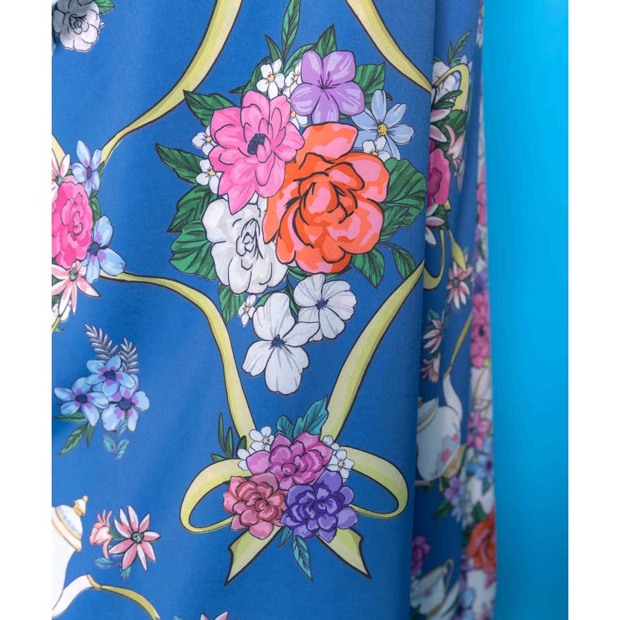 ・エレガントなティーセットやお花柄の華やかな巻きスカート付き
