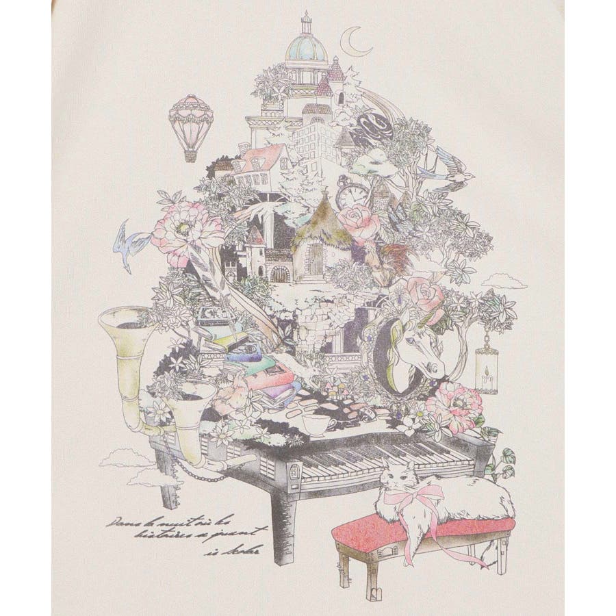 ツリーハウス柄麻タッチコットンプルオーバー