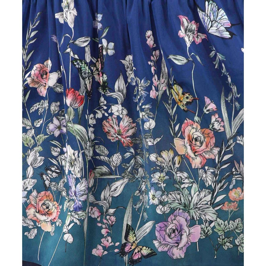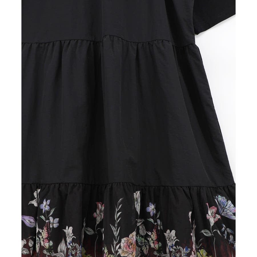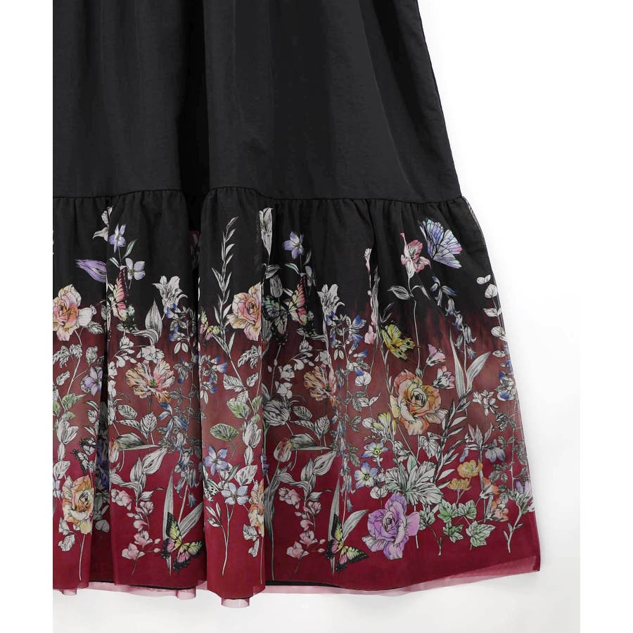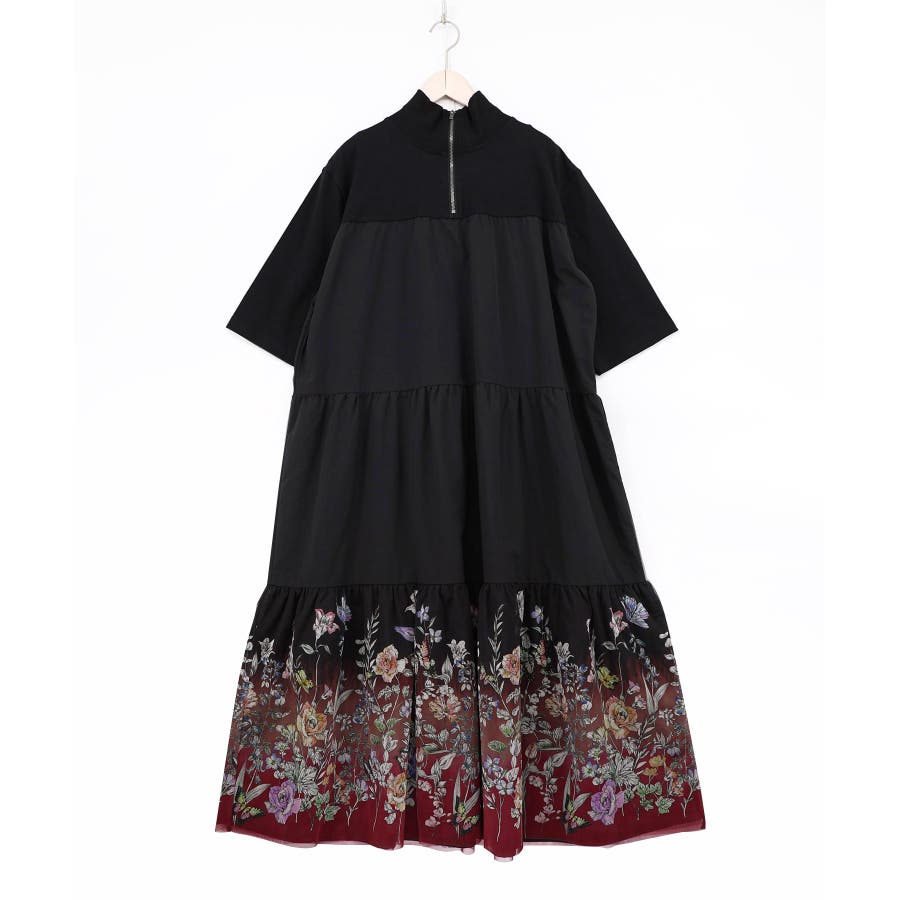 ジャージ風グラデーション裾花チュールフレアワンピース