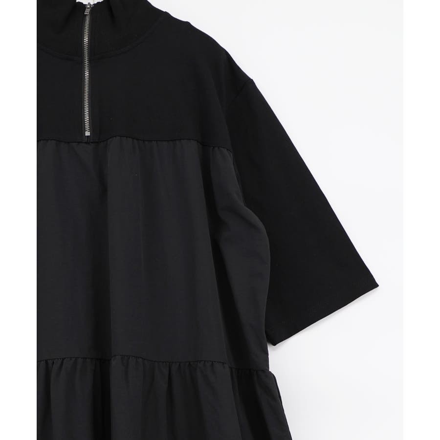・カットソー×布帛×チュールを合わせた異素材切替デザイン