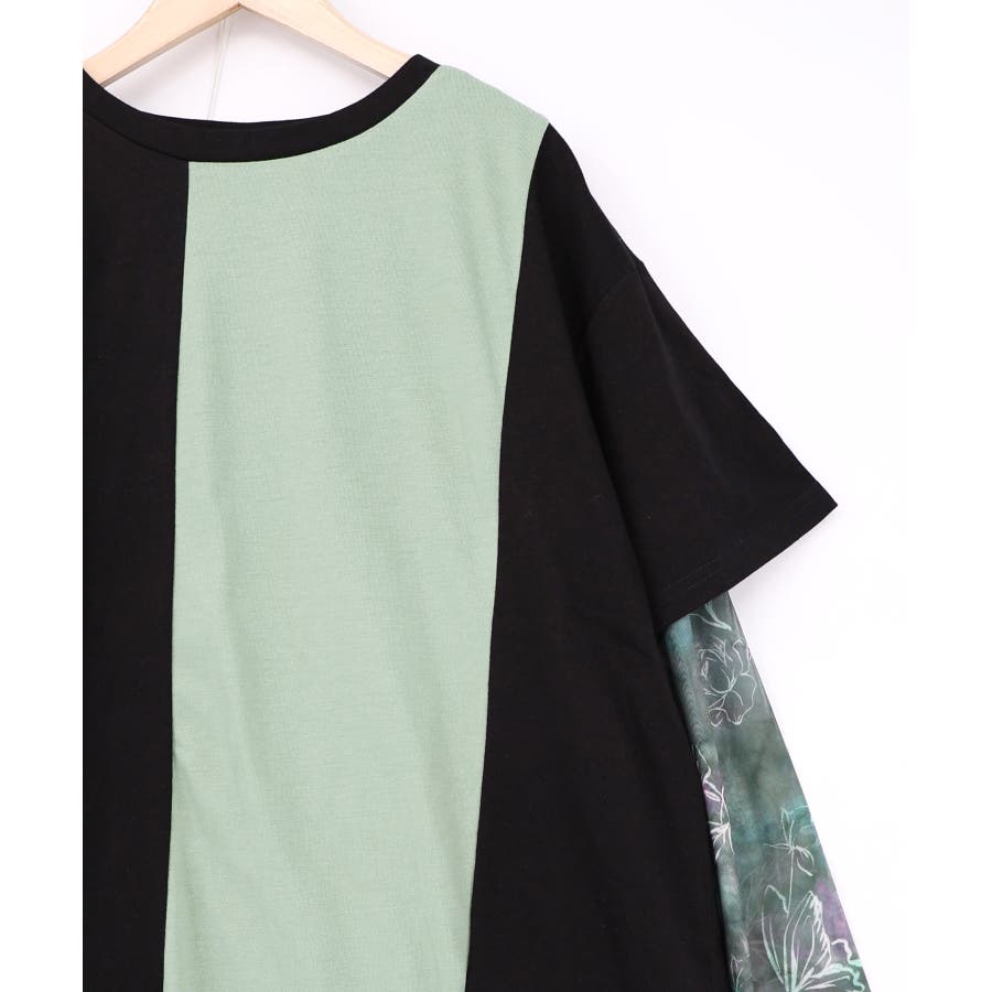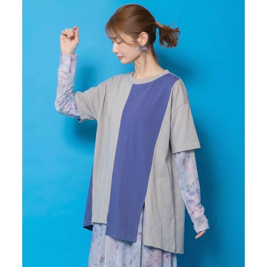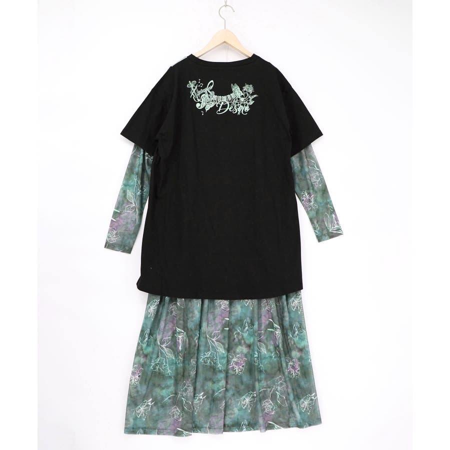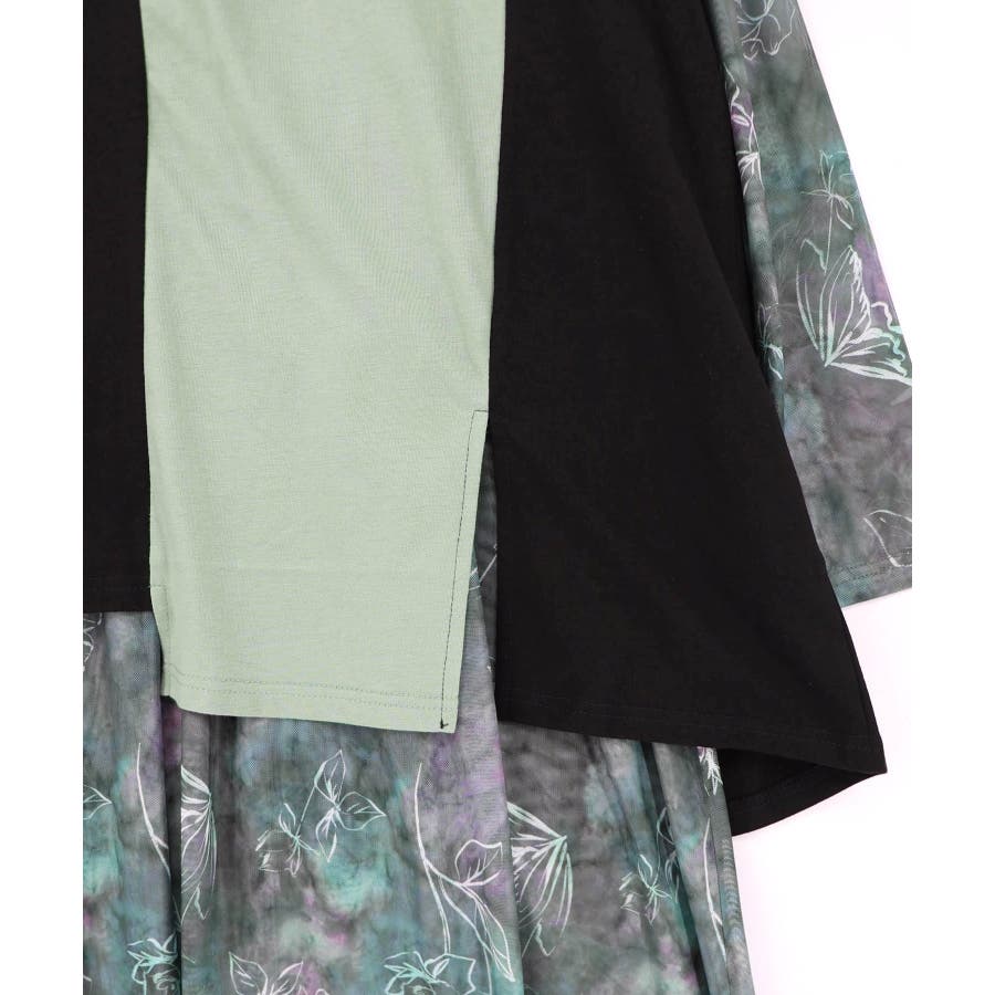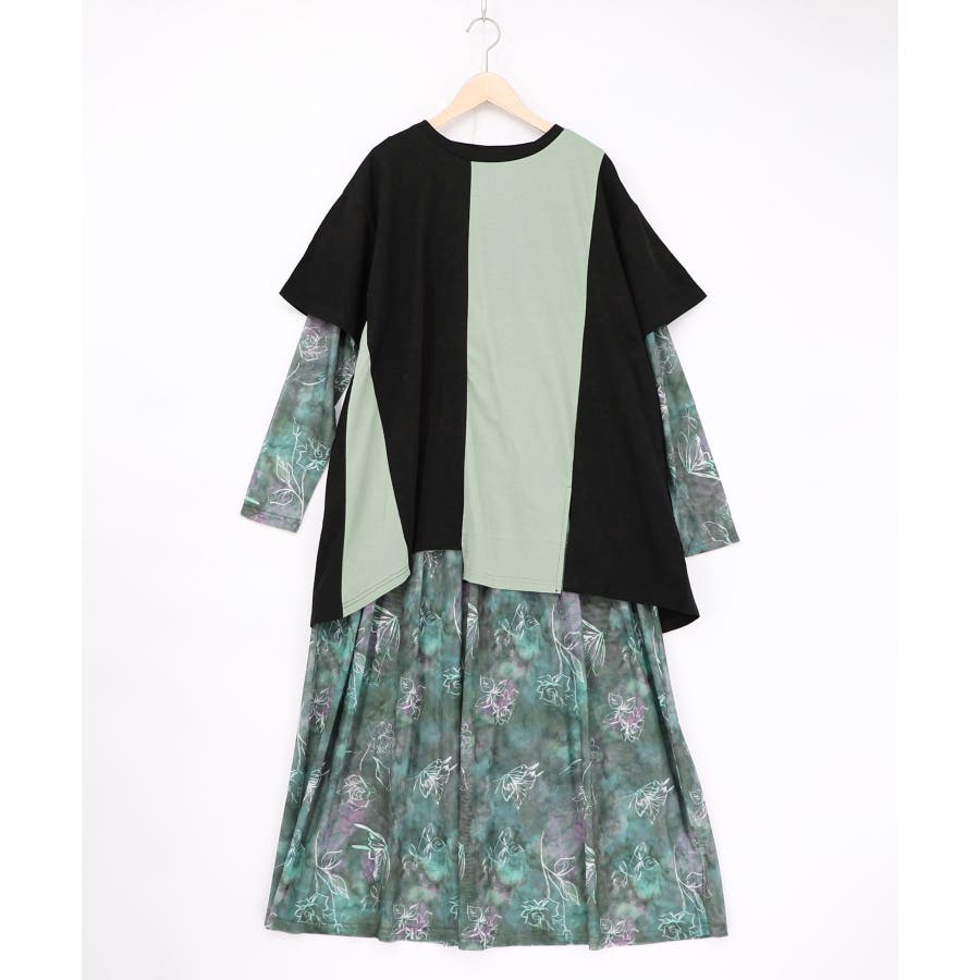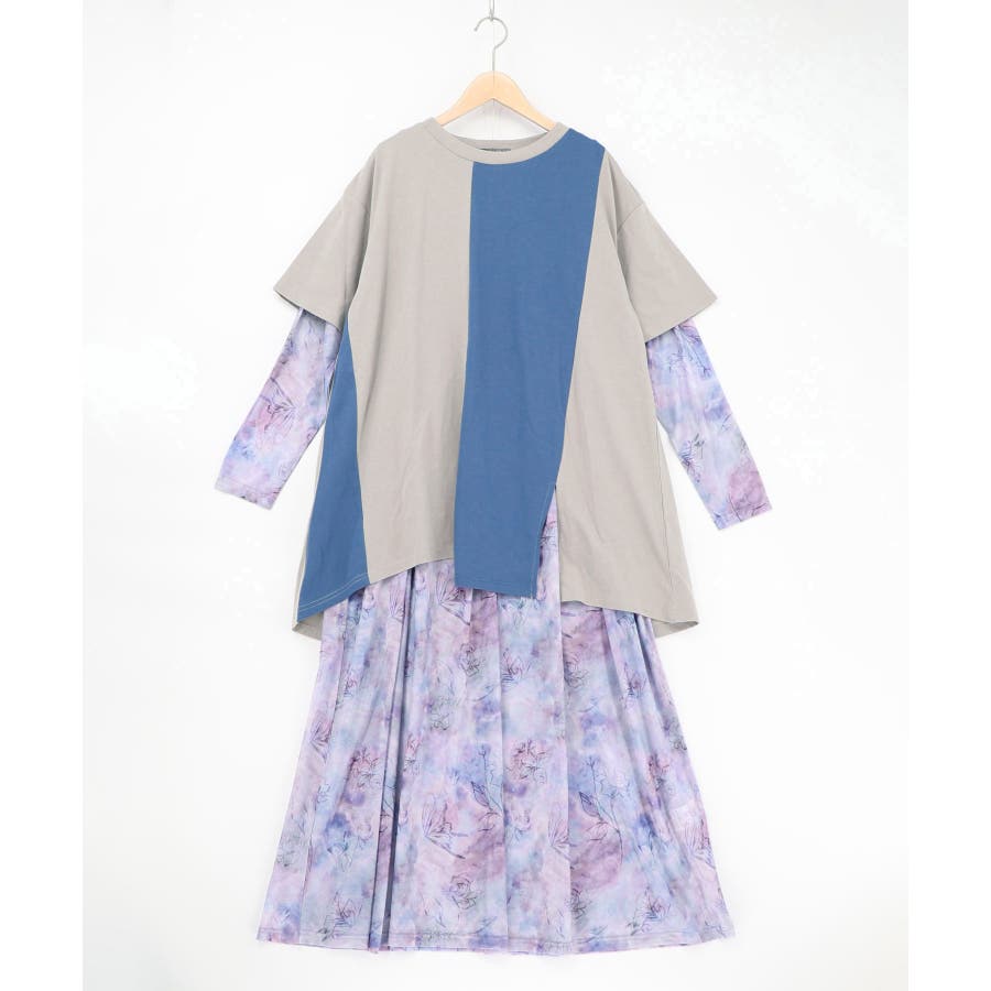 配色チュニック×マーブル柄ワンピセット