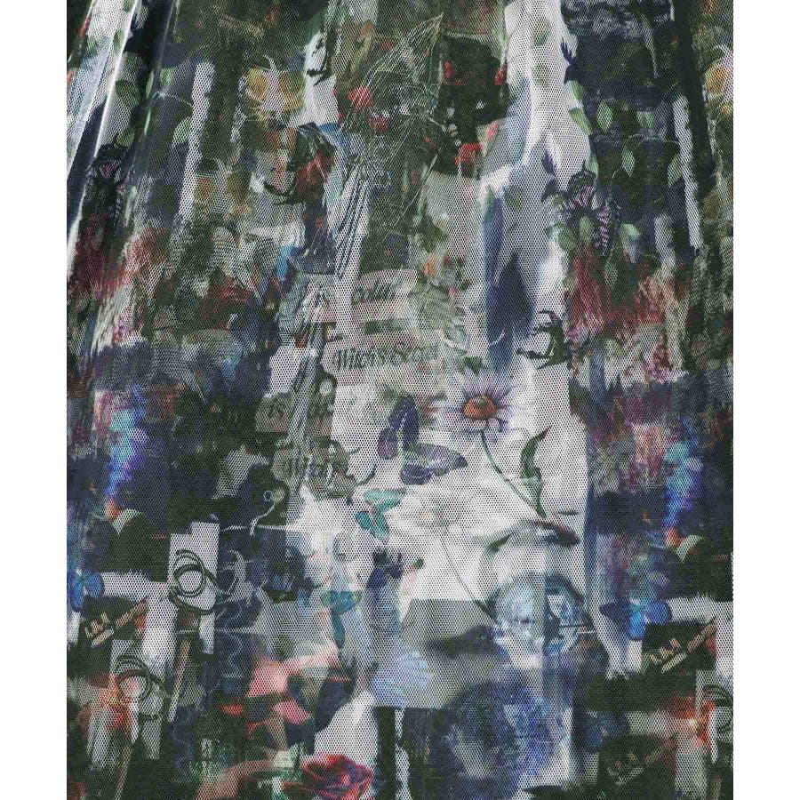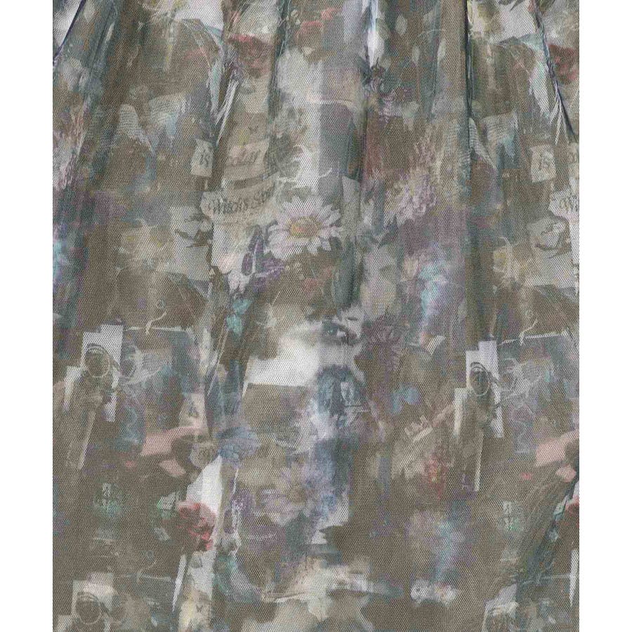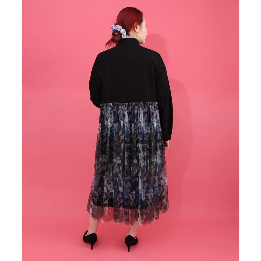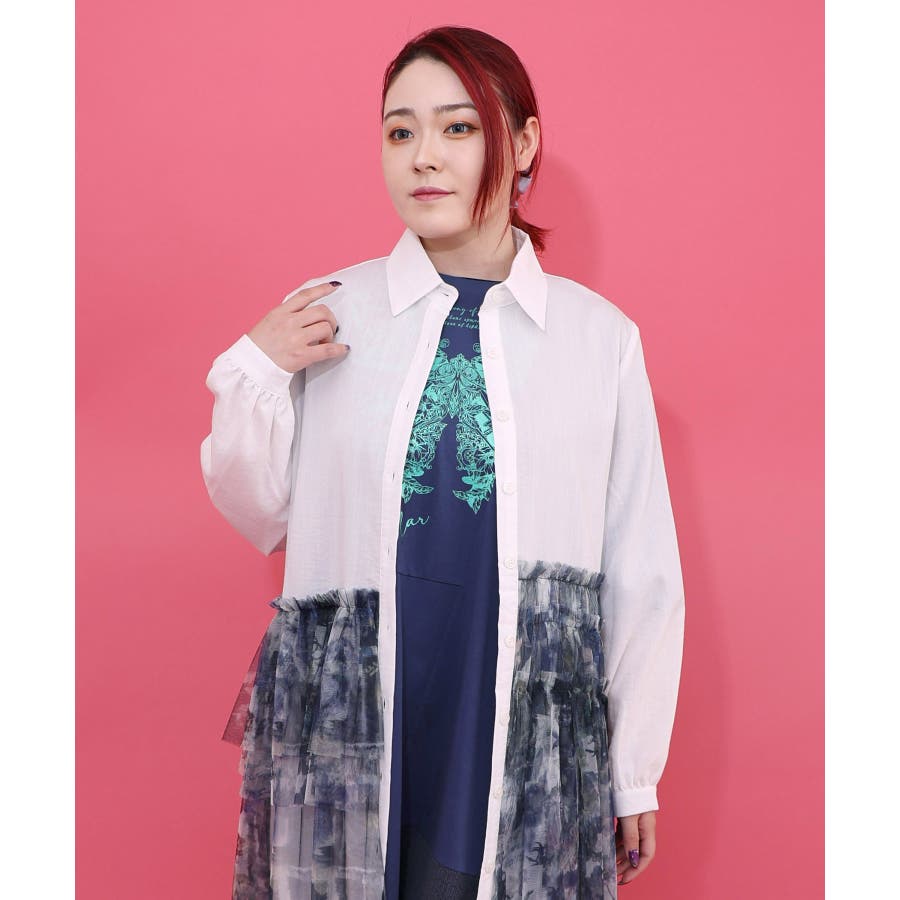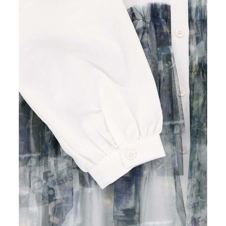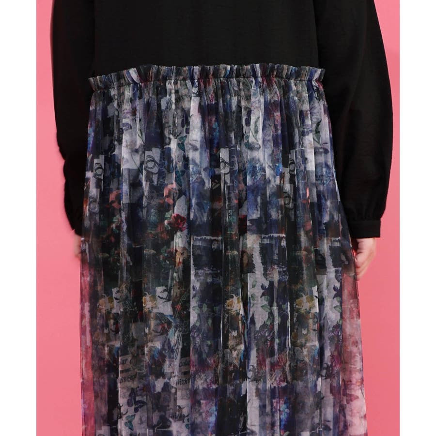 魔女の秘密柄チュール重ね異素材切替シャツワンピース