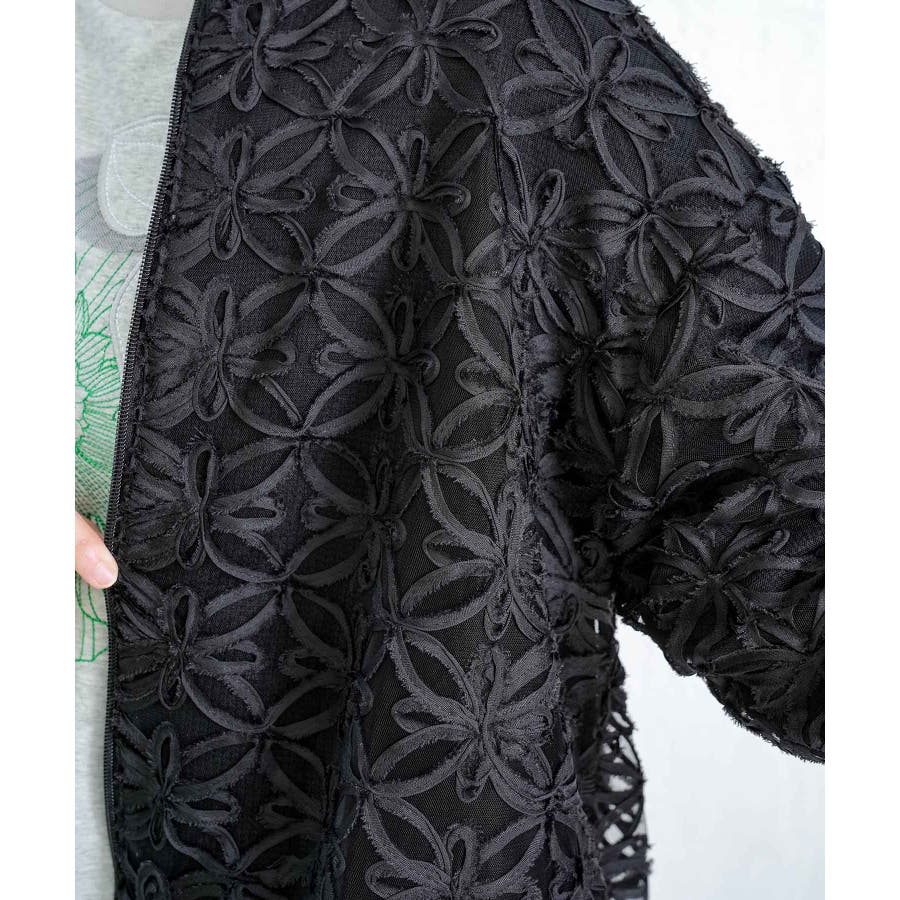 フェミニンな雰囲気を演出。襟・袖・裾は伸縮性のあるリブ仕様になっていて動きやすく、