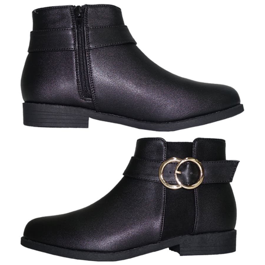 ベルト付きフラットショートブーツ