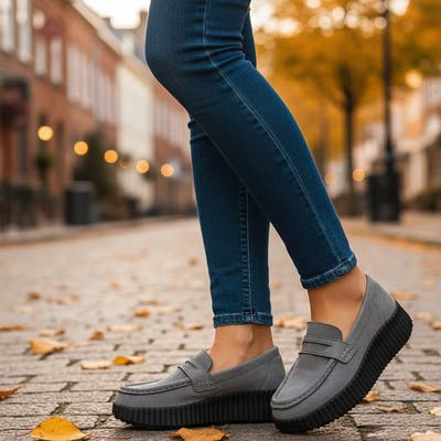 【上品なスエード調素材】 アッパーは柔らかなスエード調の素材を使用。マットで落ち着いた質感が、カジュアルなソールとのバランスを取り、大人っぽく洗練された印象を与えます。