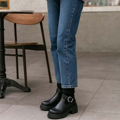 ベルトデザイン厚底ボリュームソールソックスブーツ