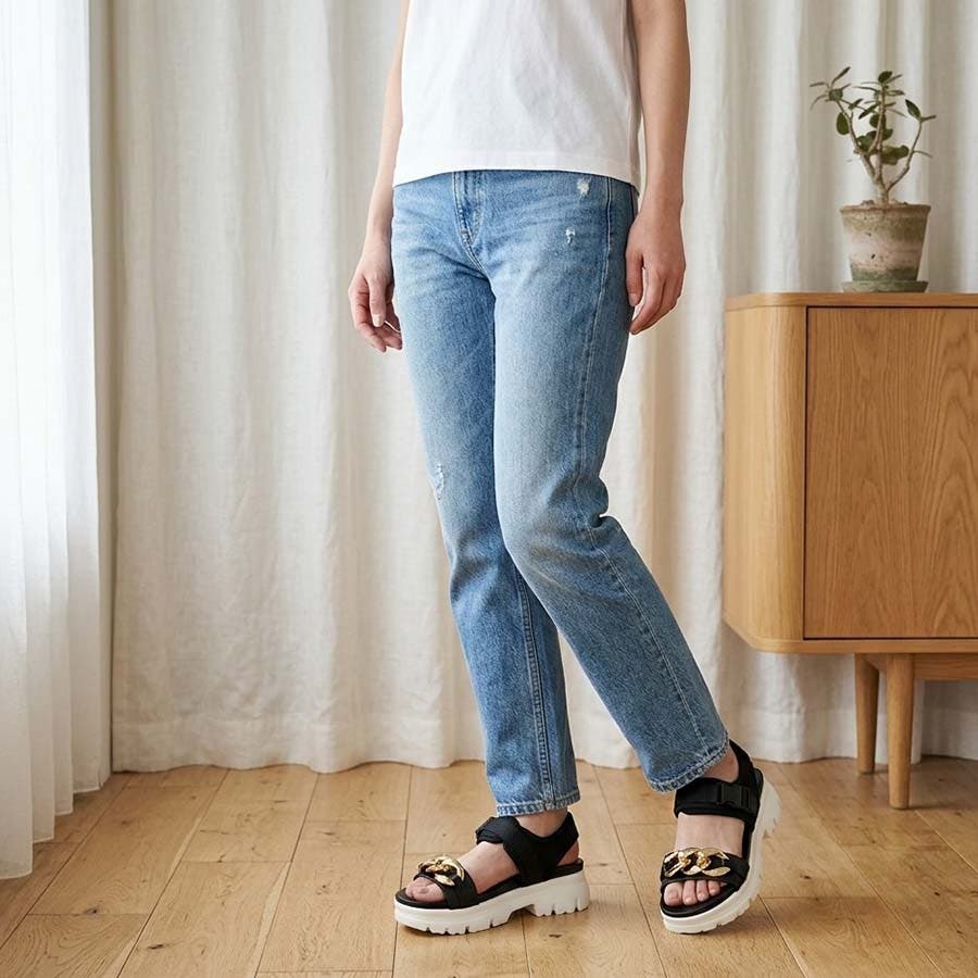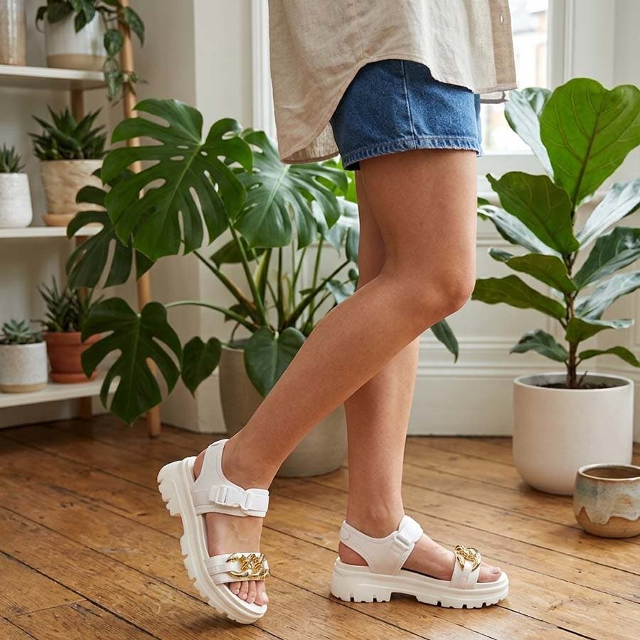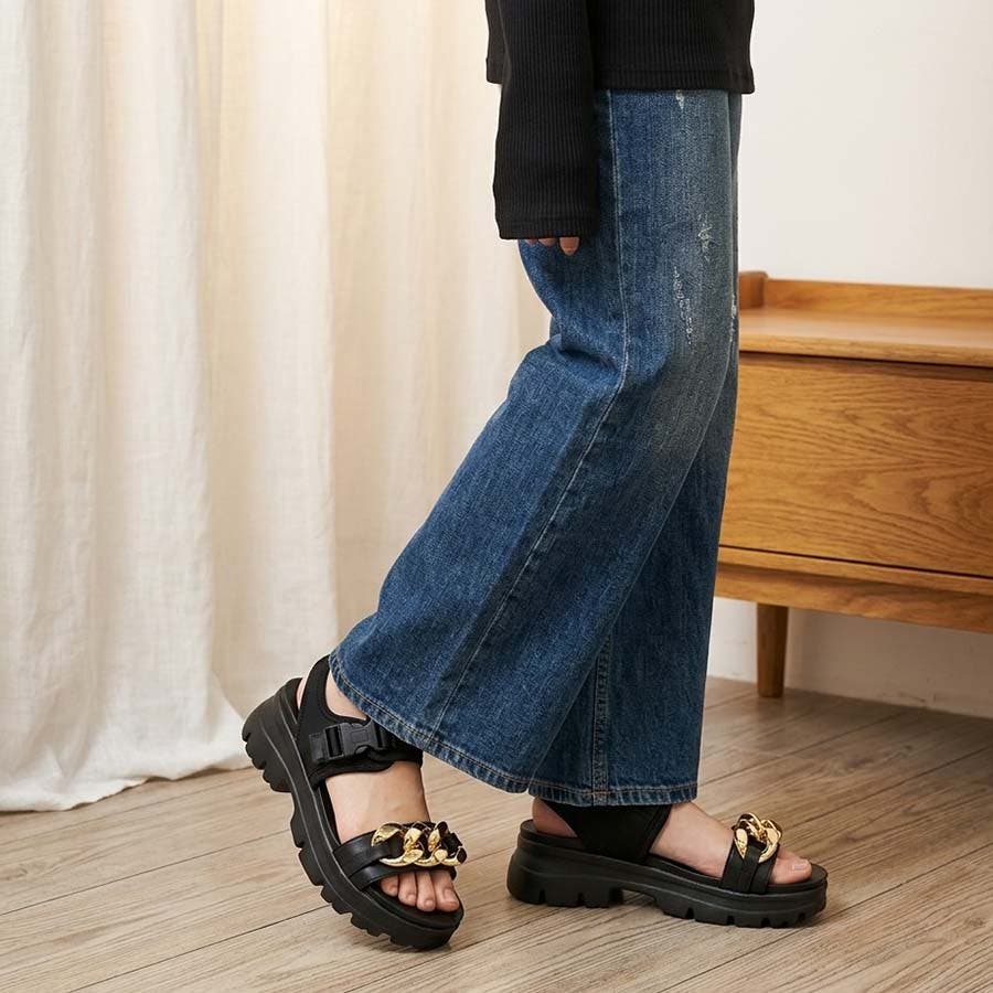 存在感抜群!ゴールドチェーン × ボリューム厚底 スポーツサンダル