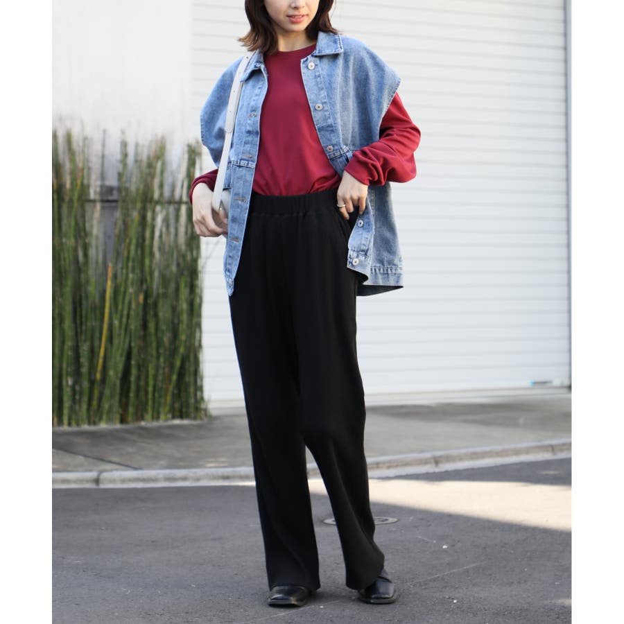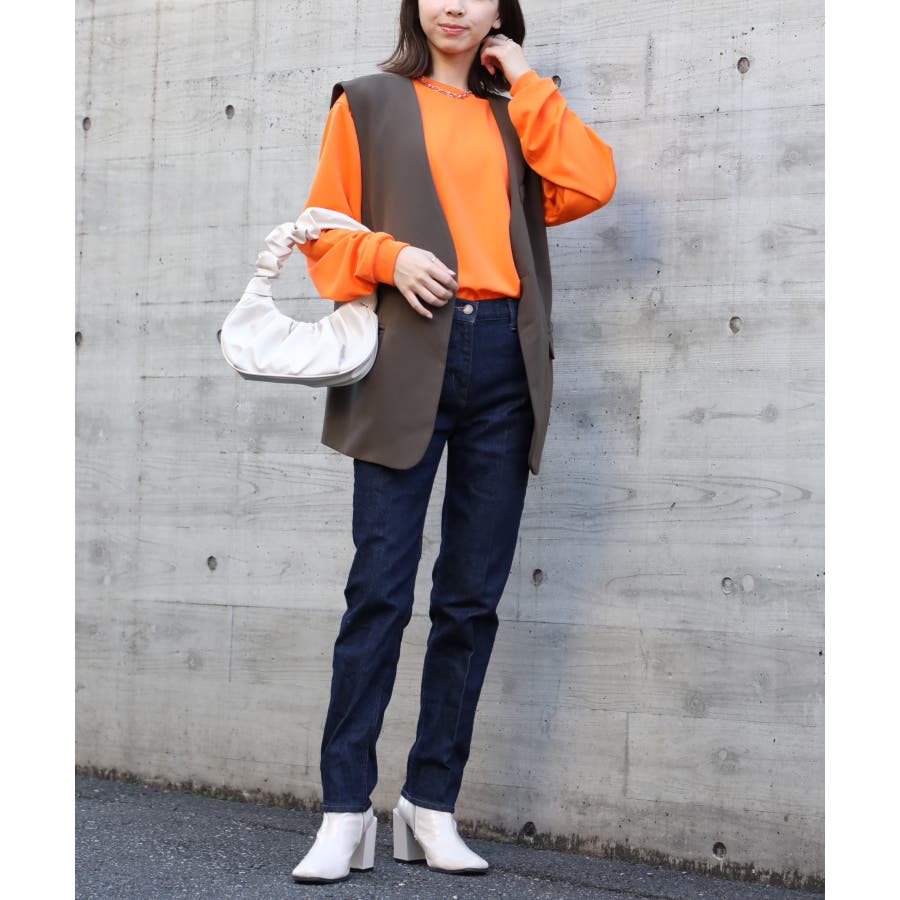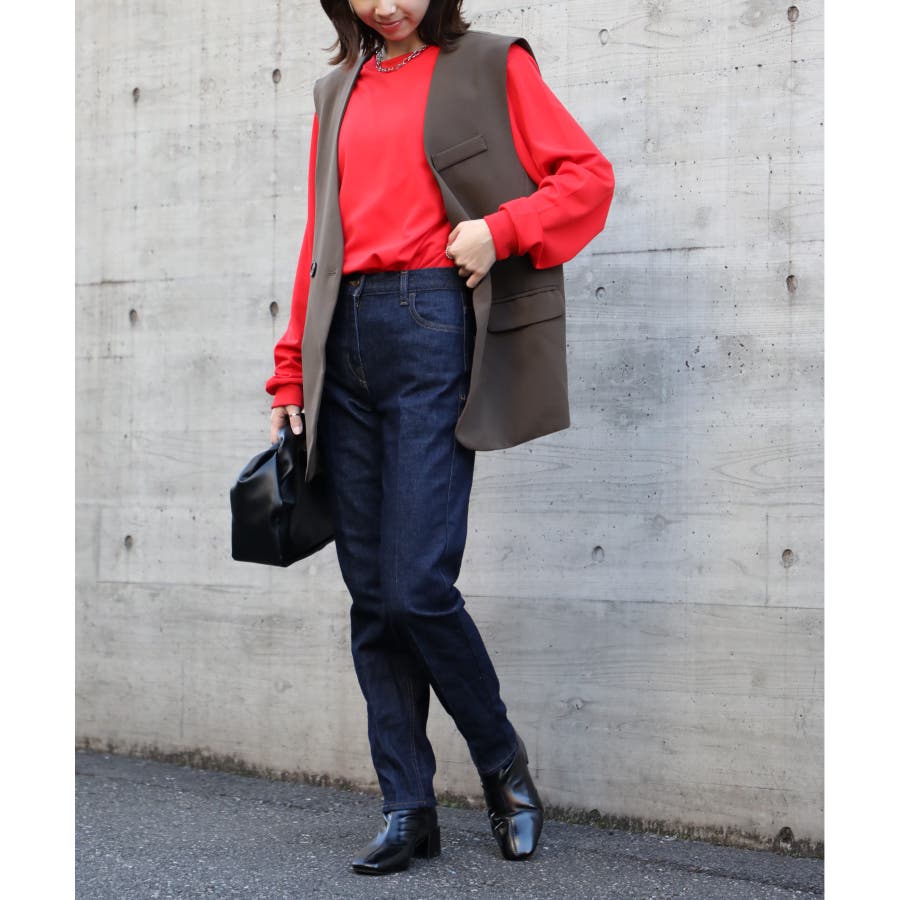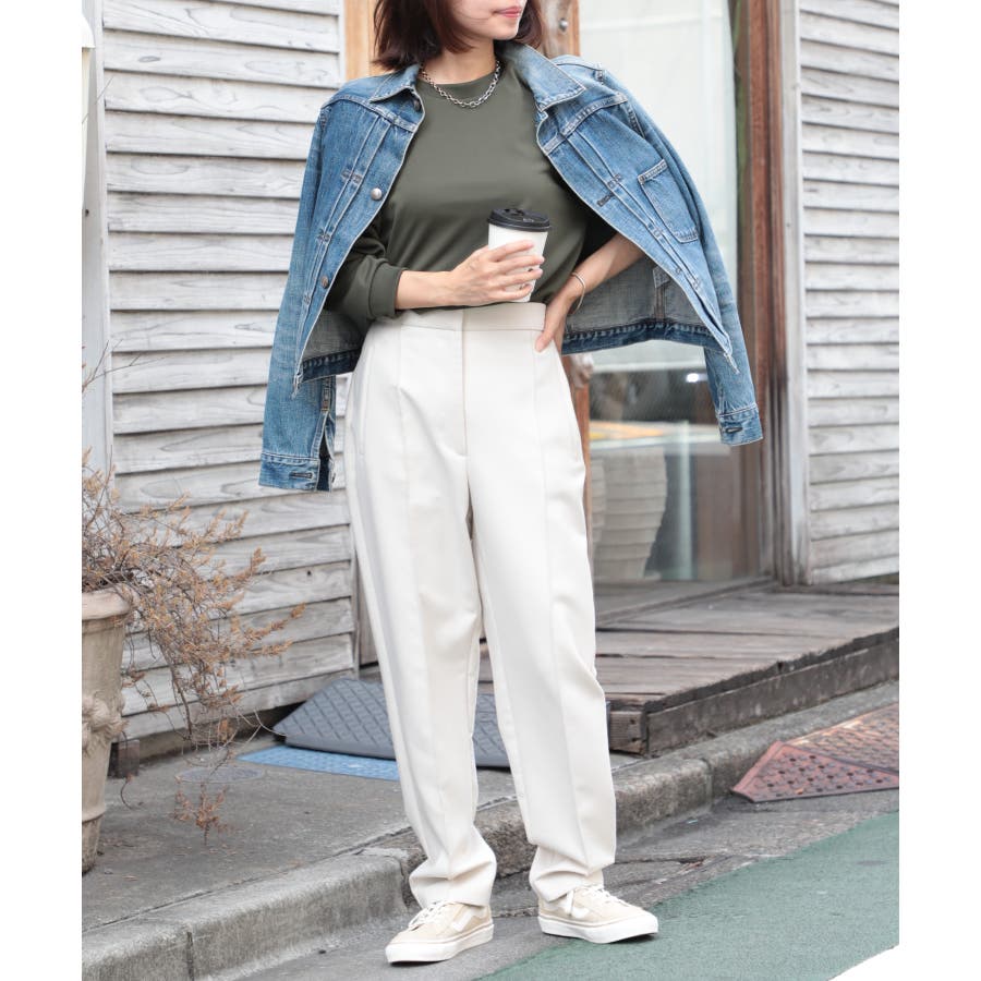 トレンドのゆったりとしたサイジングなので、レギュラーからタイトなシルエットのボトムと好相性◎