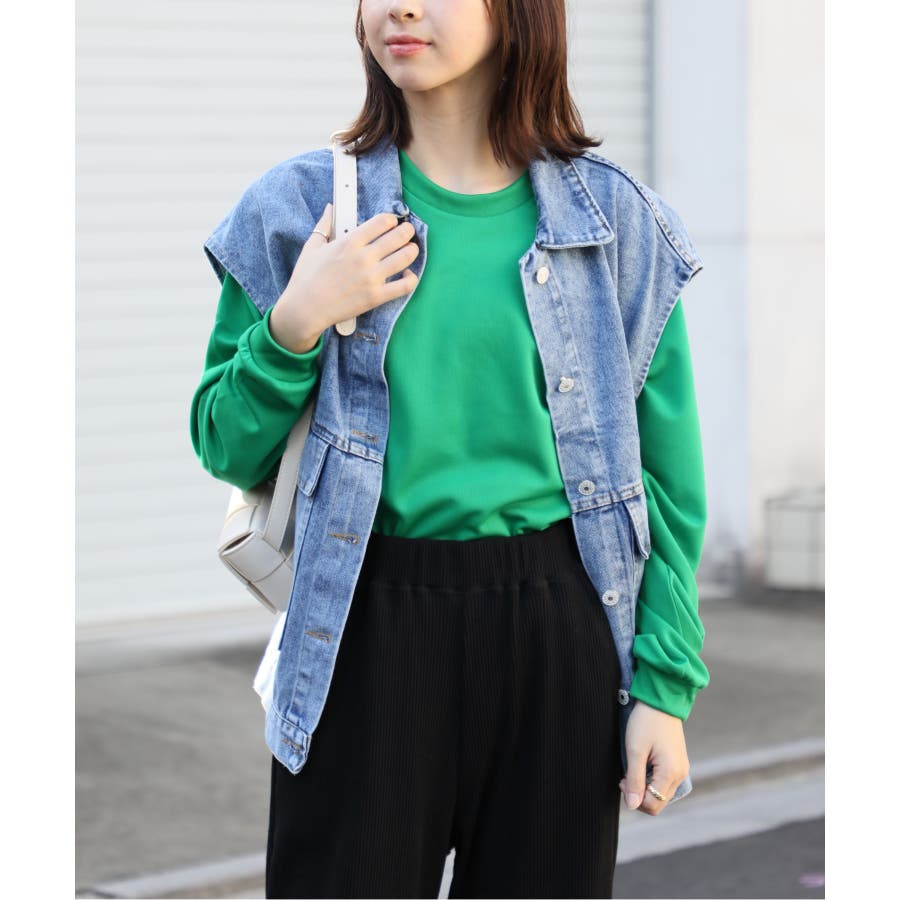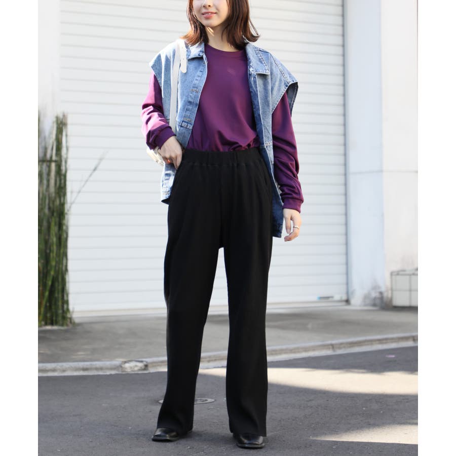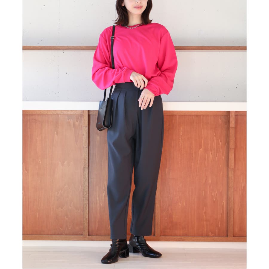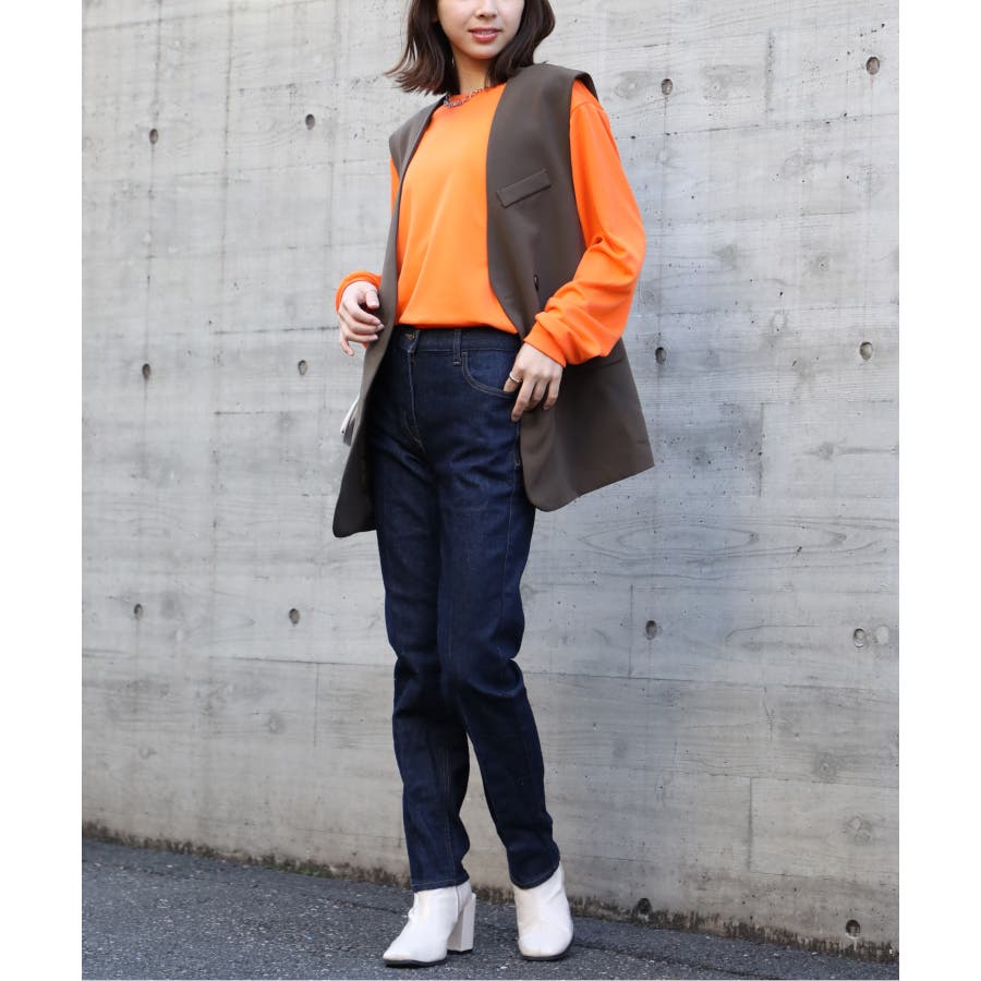 トレンドのゆったりとしたサイジングなので、レギュラーからタイトなシルエットのボトムと好相性◎
