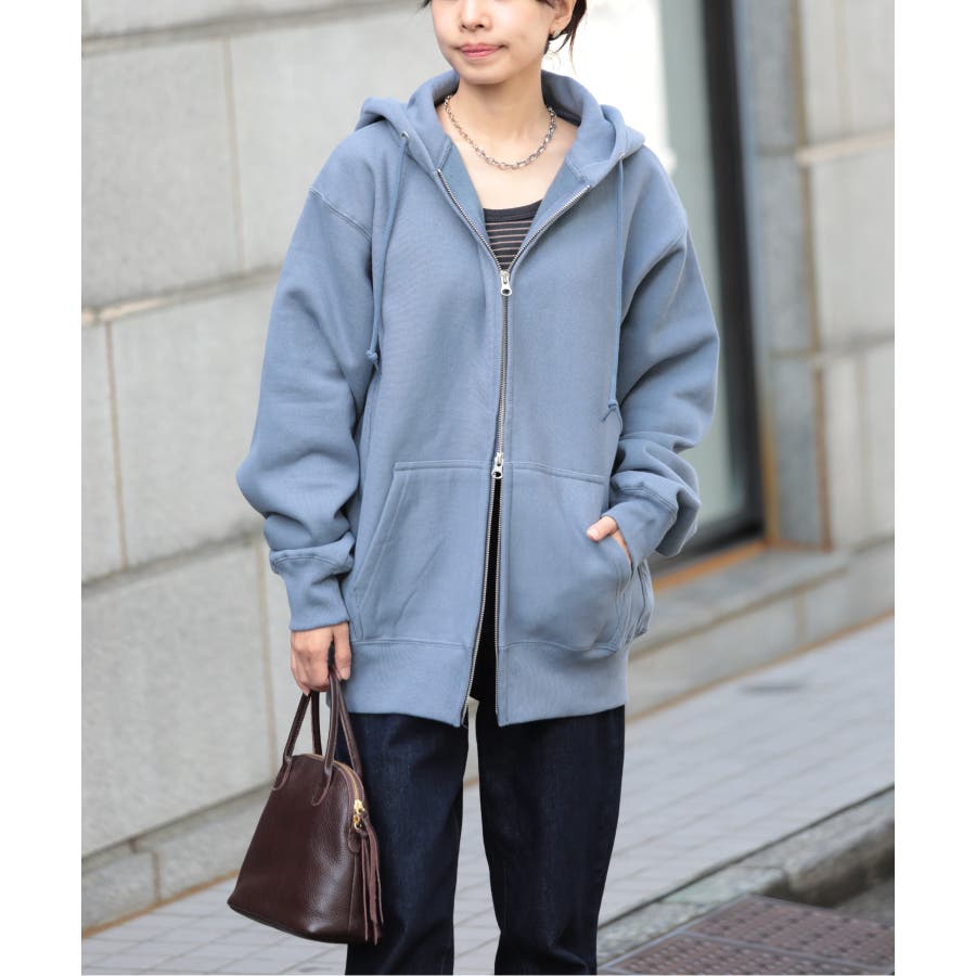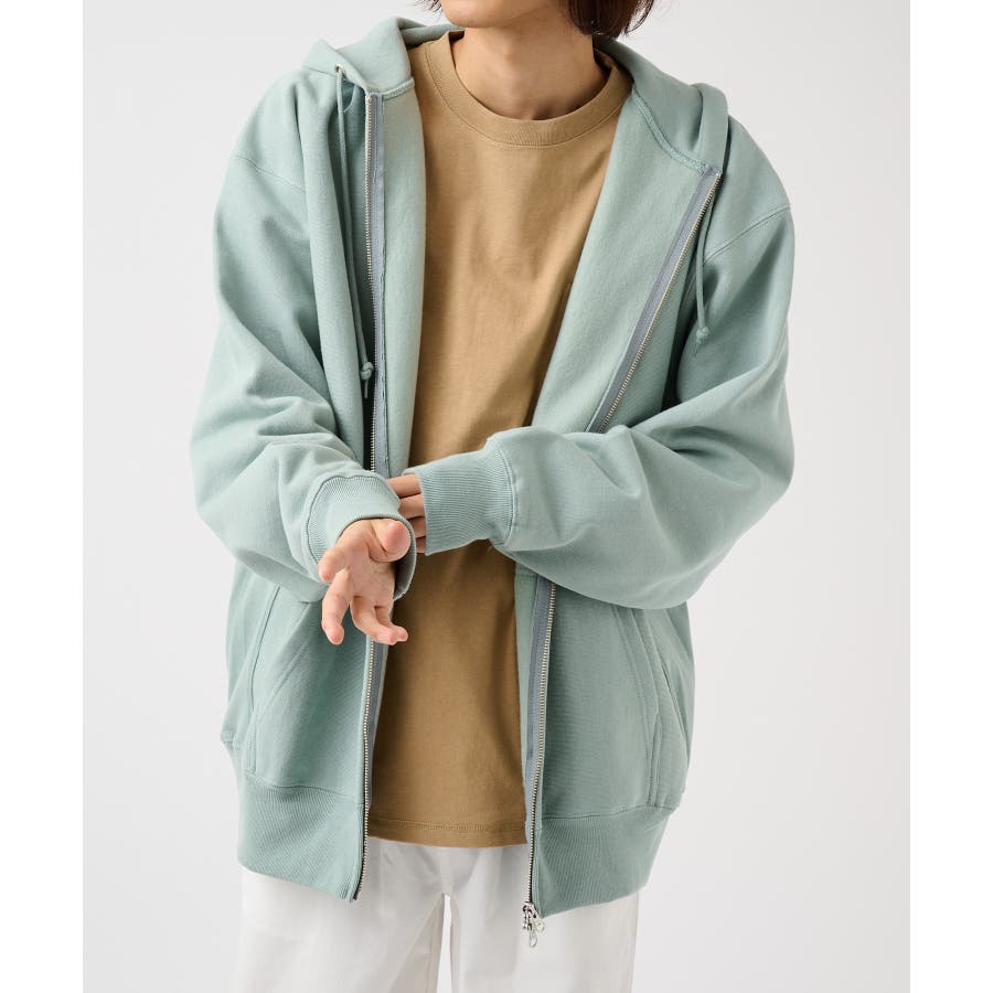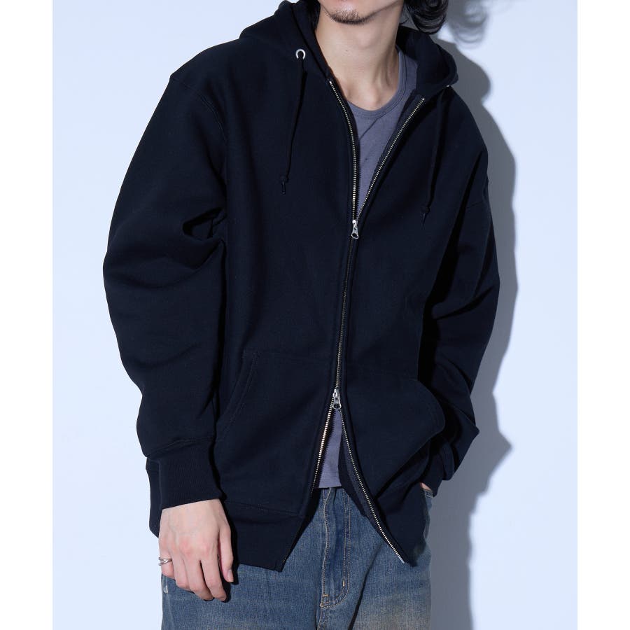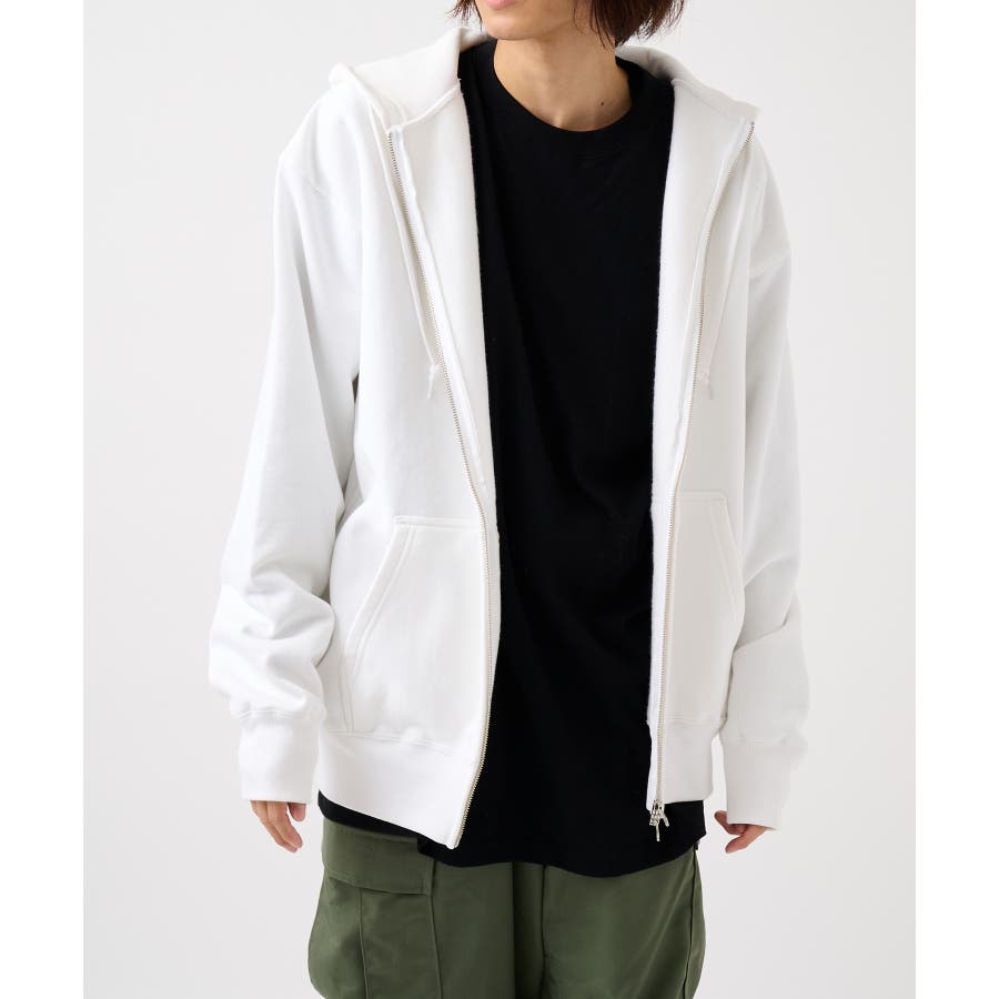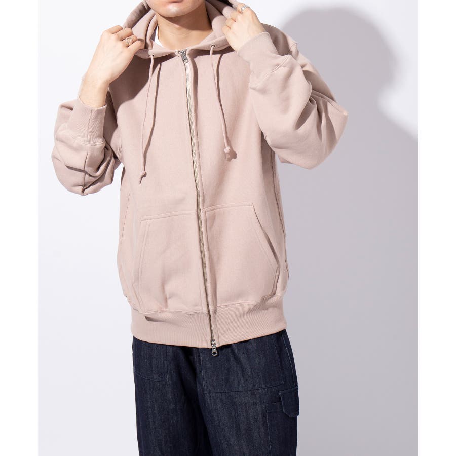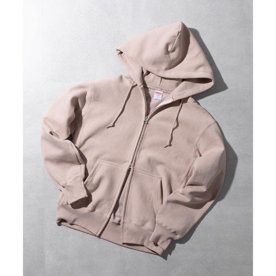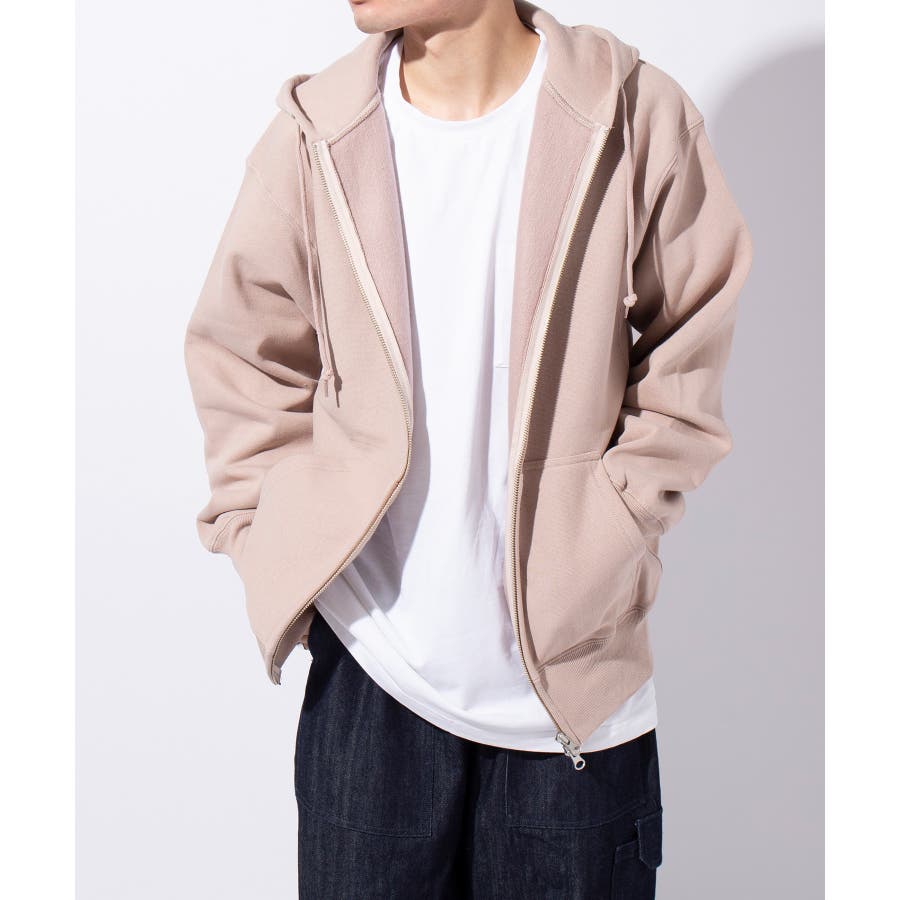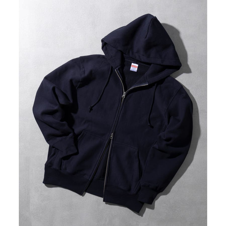 オープンエンド糸特有のドライな質感が特徴の12.0オンス裏起毛フルジップパーカー。