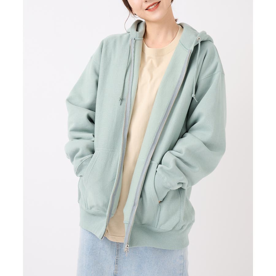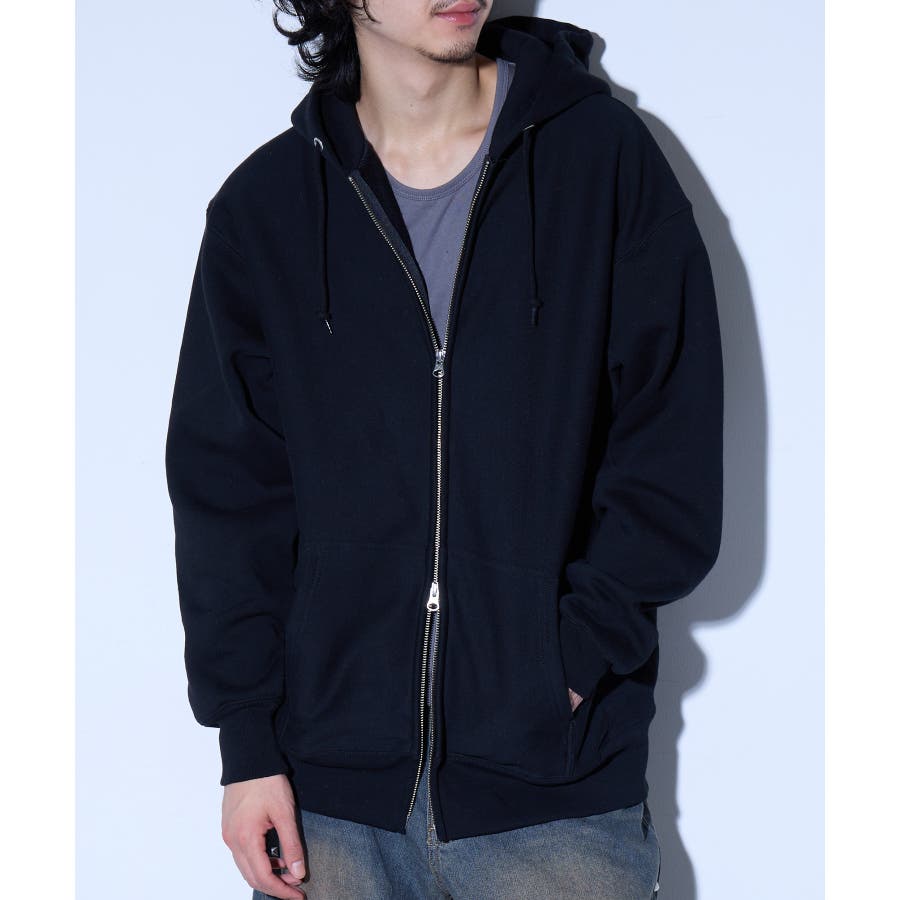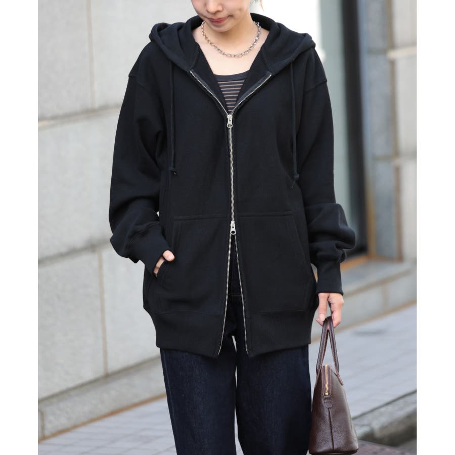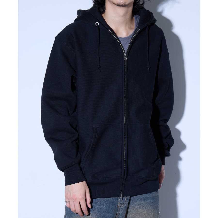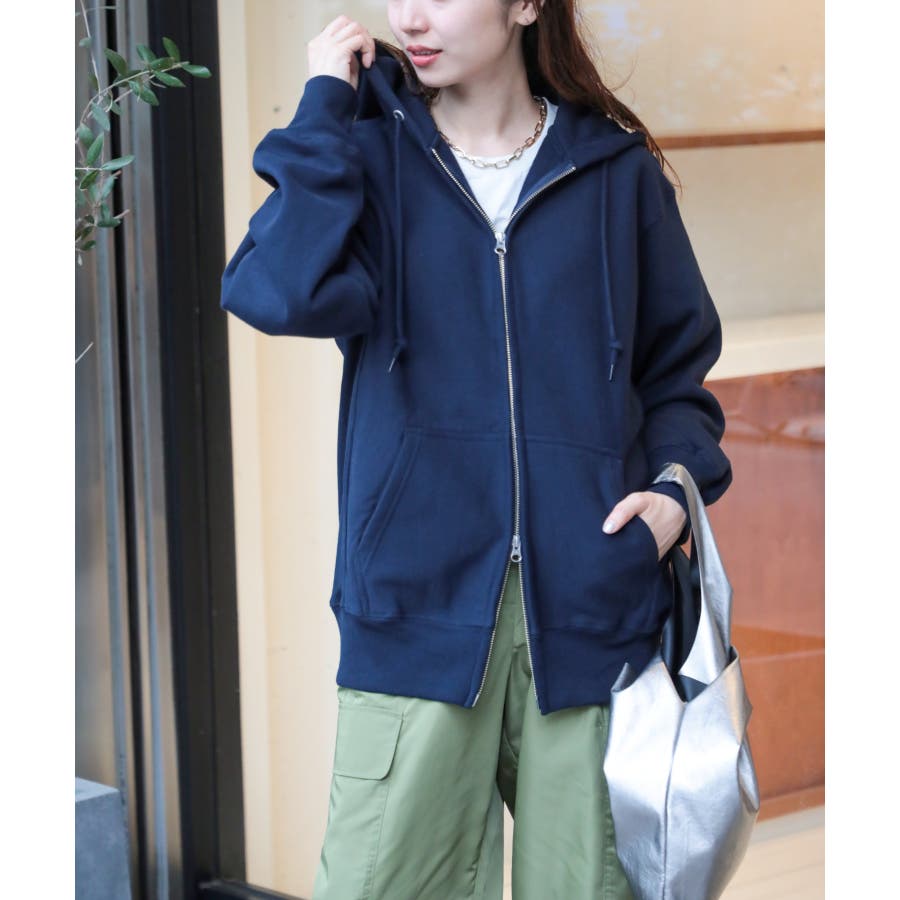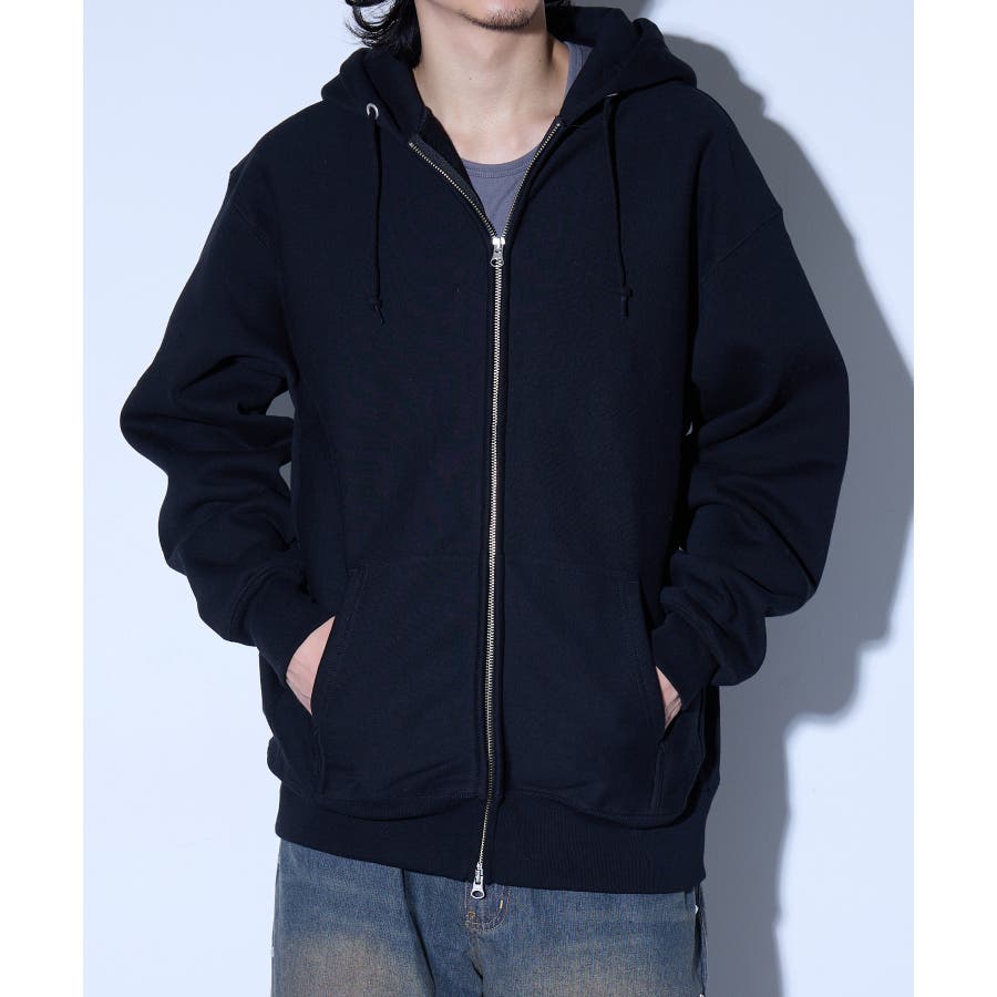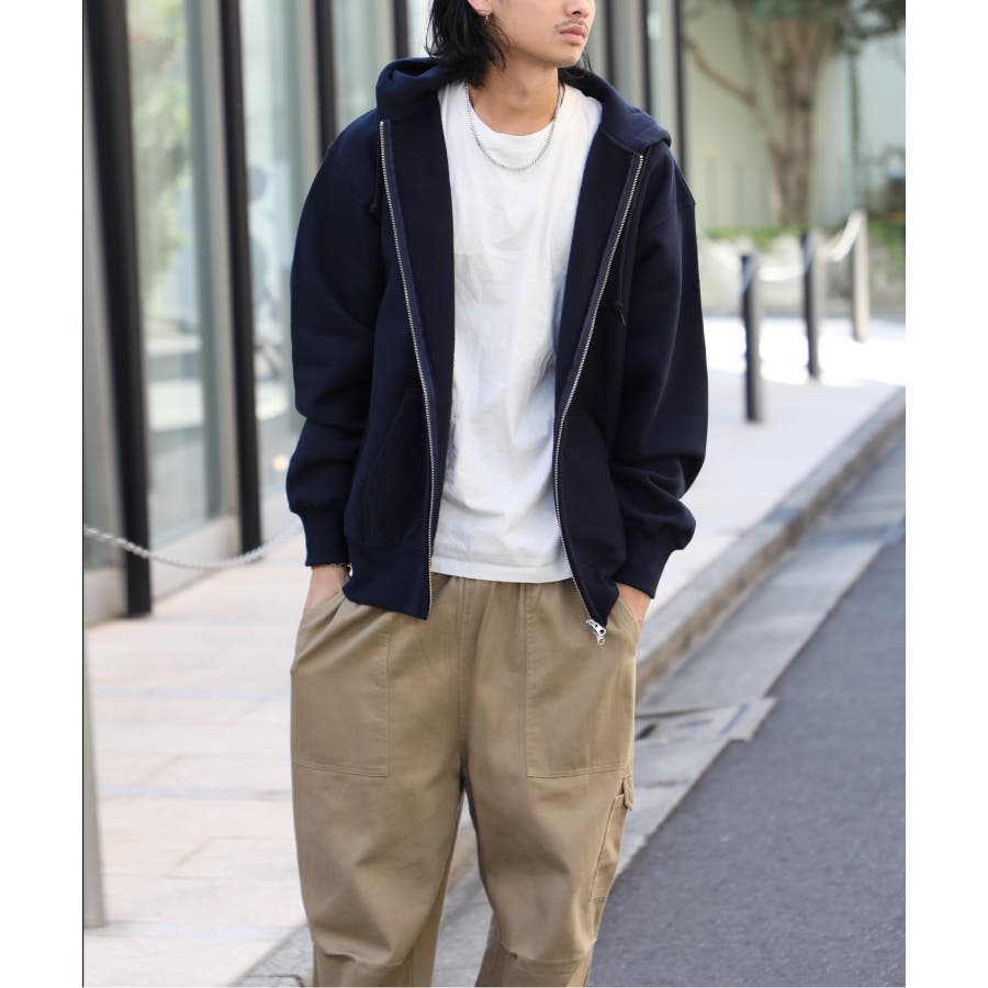 オープンエンド糸特有のドライな質感が特徴の12.0オンス裏起毛フルジップパーカー。