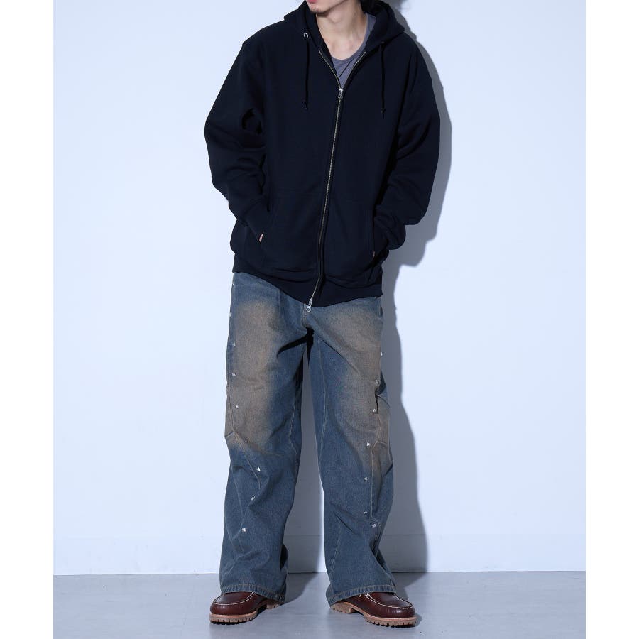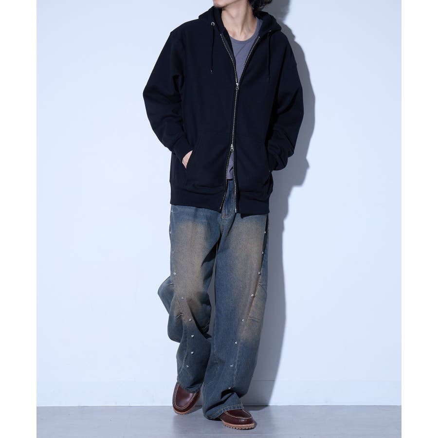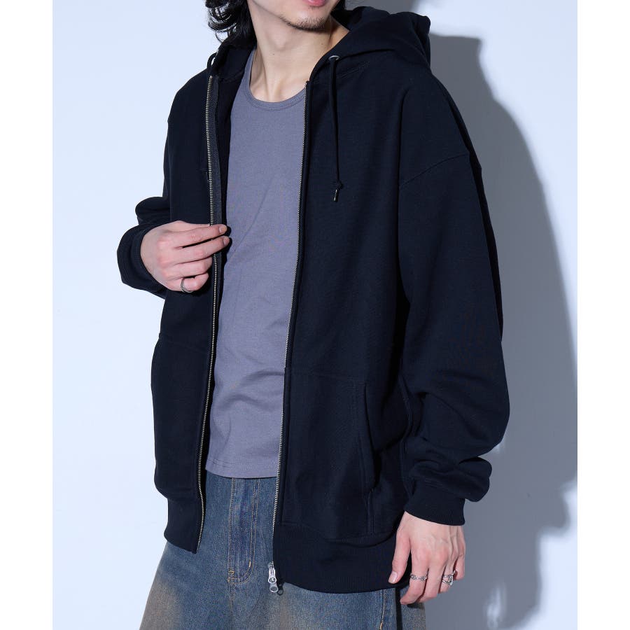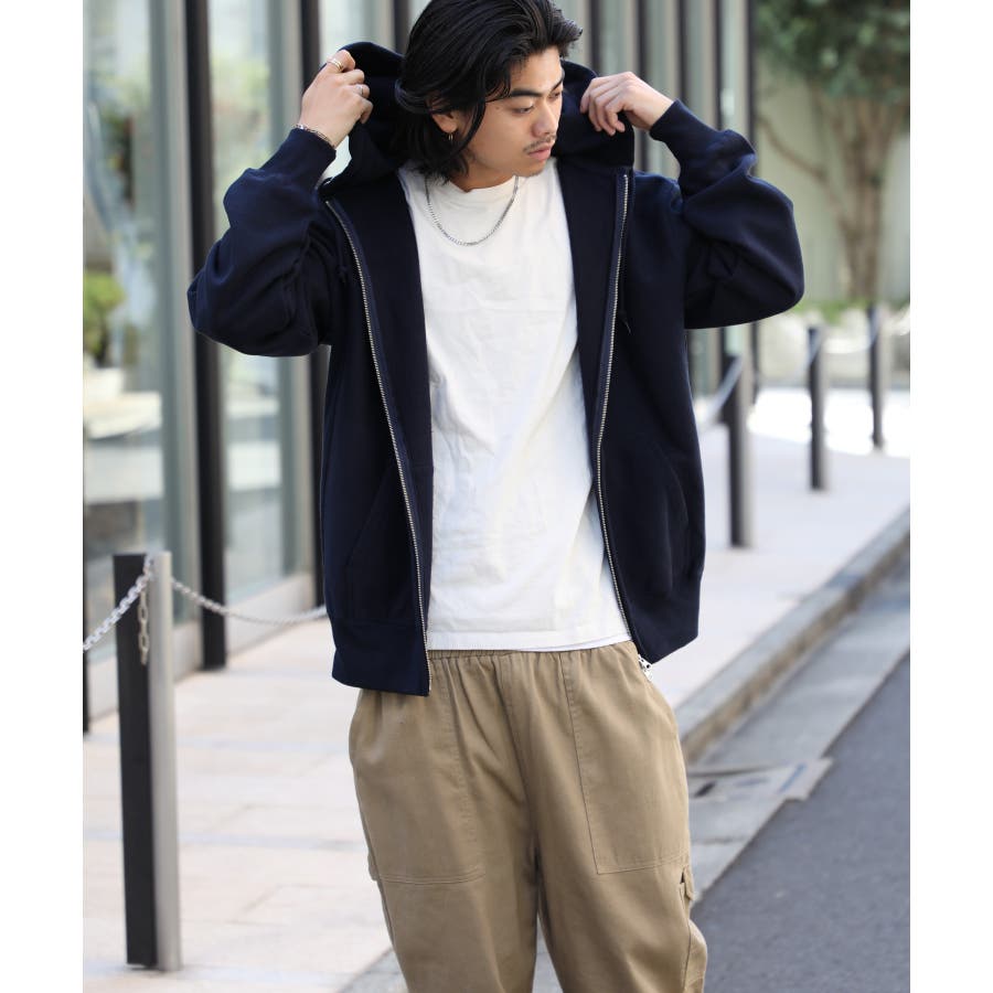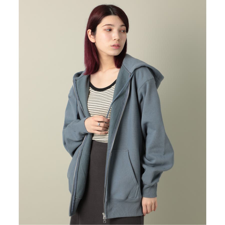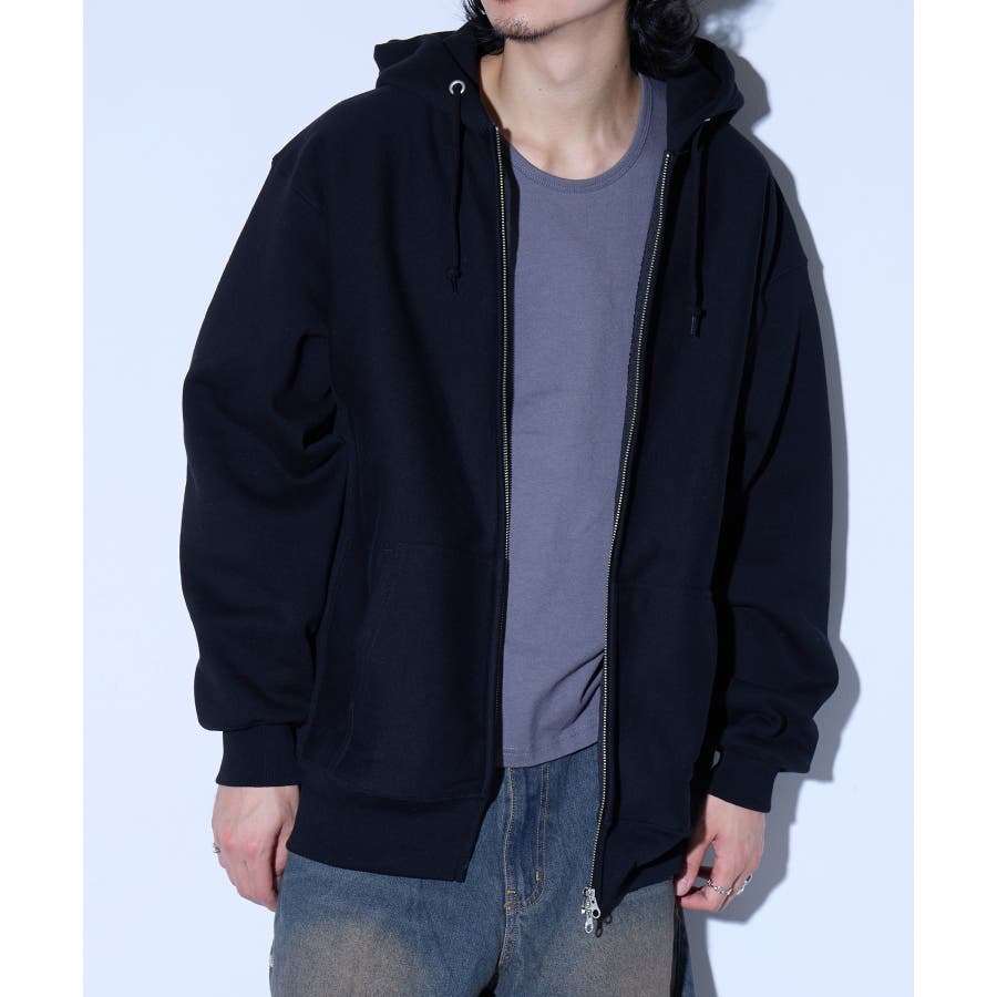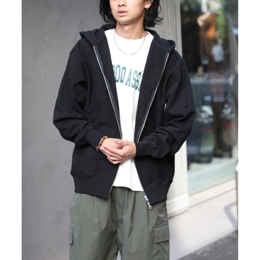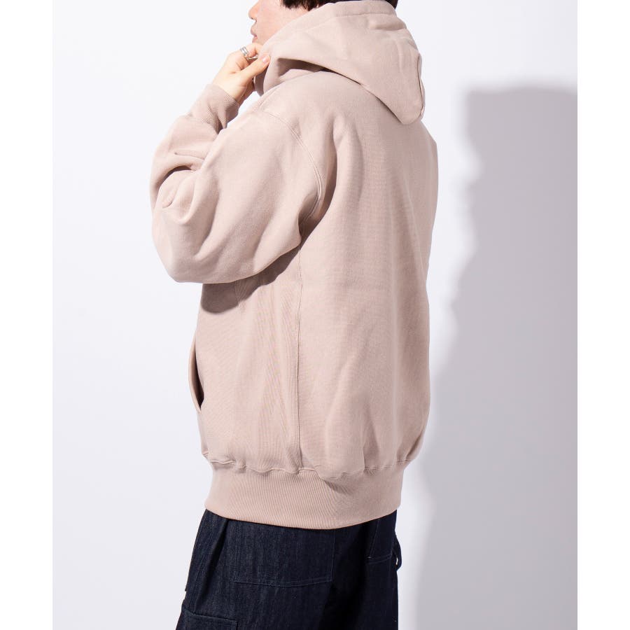 オープンエンド糸特有のドライな質感が特徴の12.0オンス裏起毛フルジップパーカー。