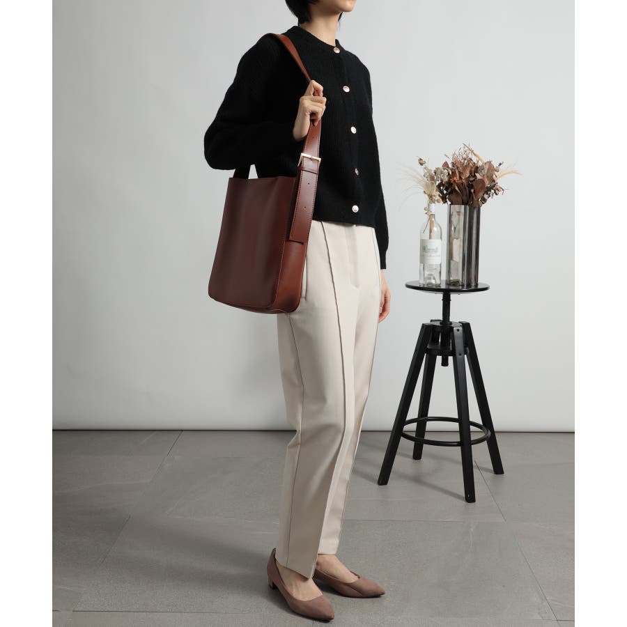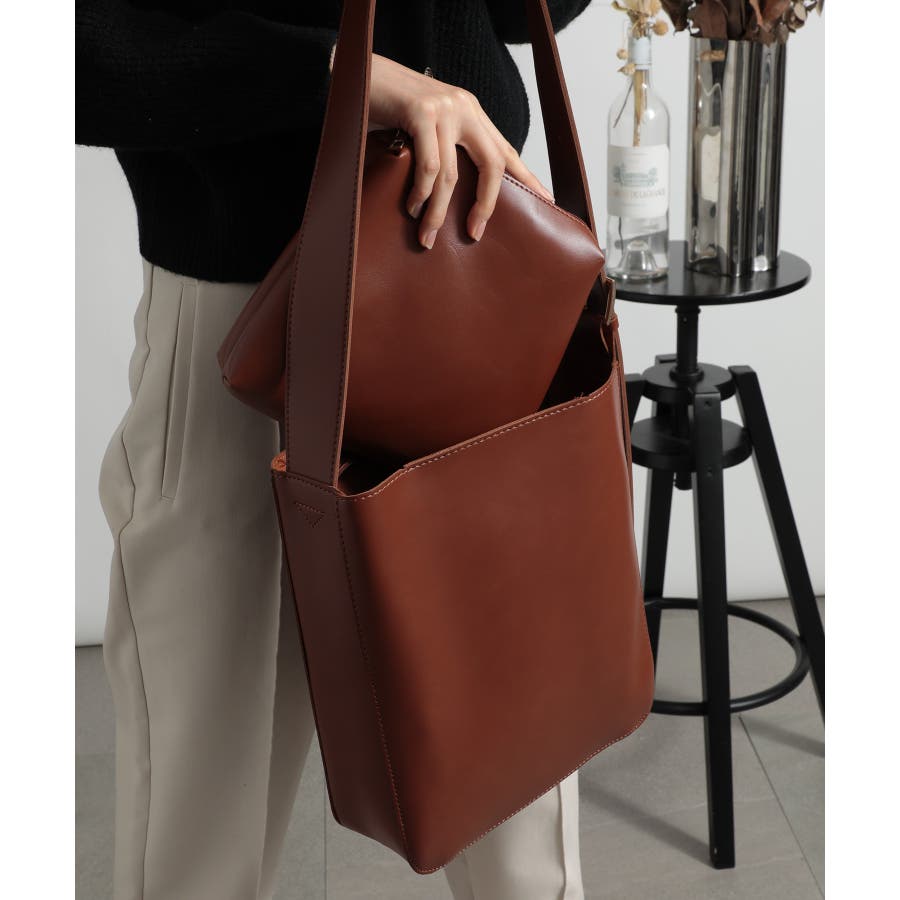 ・シンプルなデザインのバッグなので、今季注目のファーベスト、透かし編みニットなどと合わせたら、トレンド感アップ。