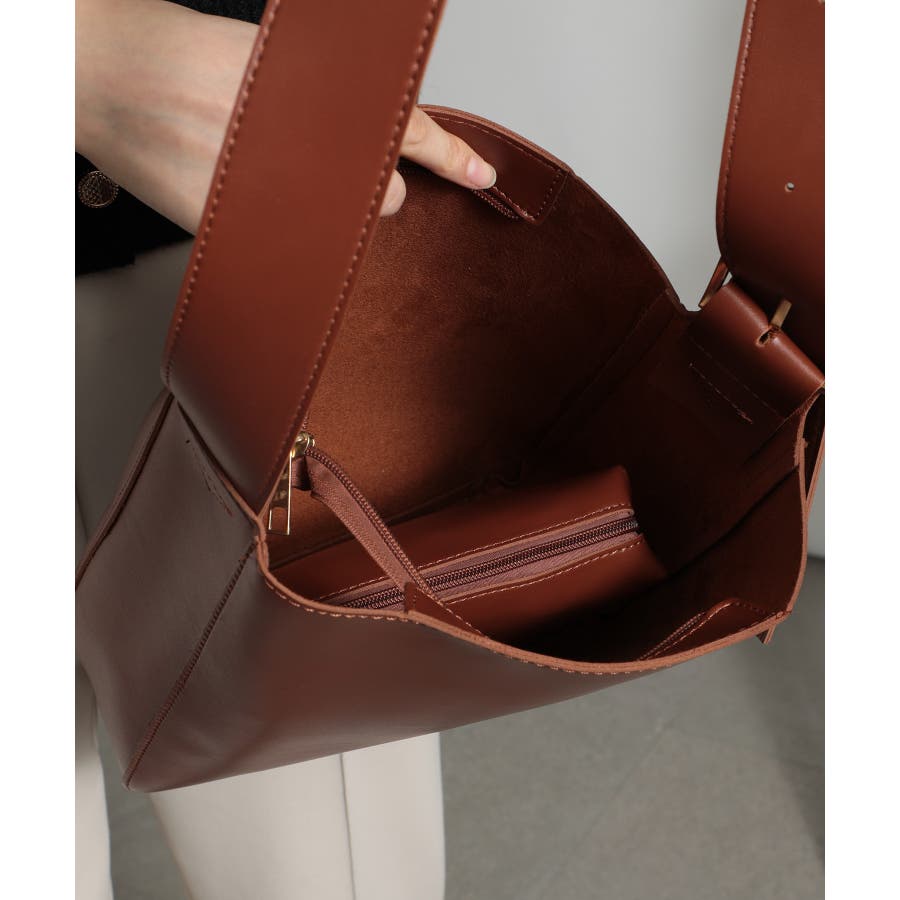 ・上品な艶のあるフェイクレザーでどんなシーンにもマッチ。