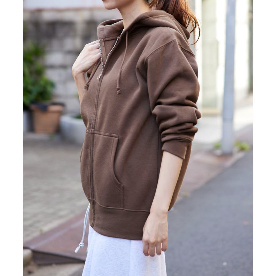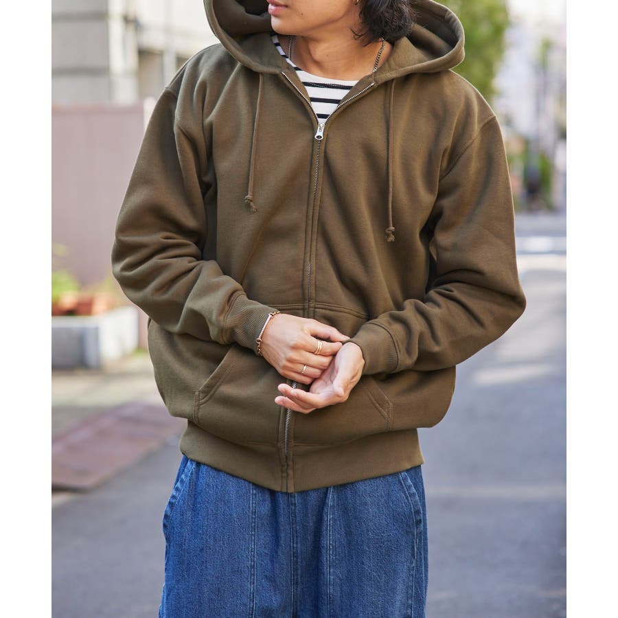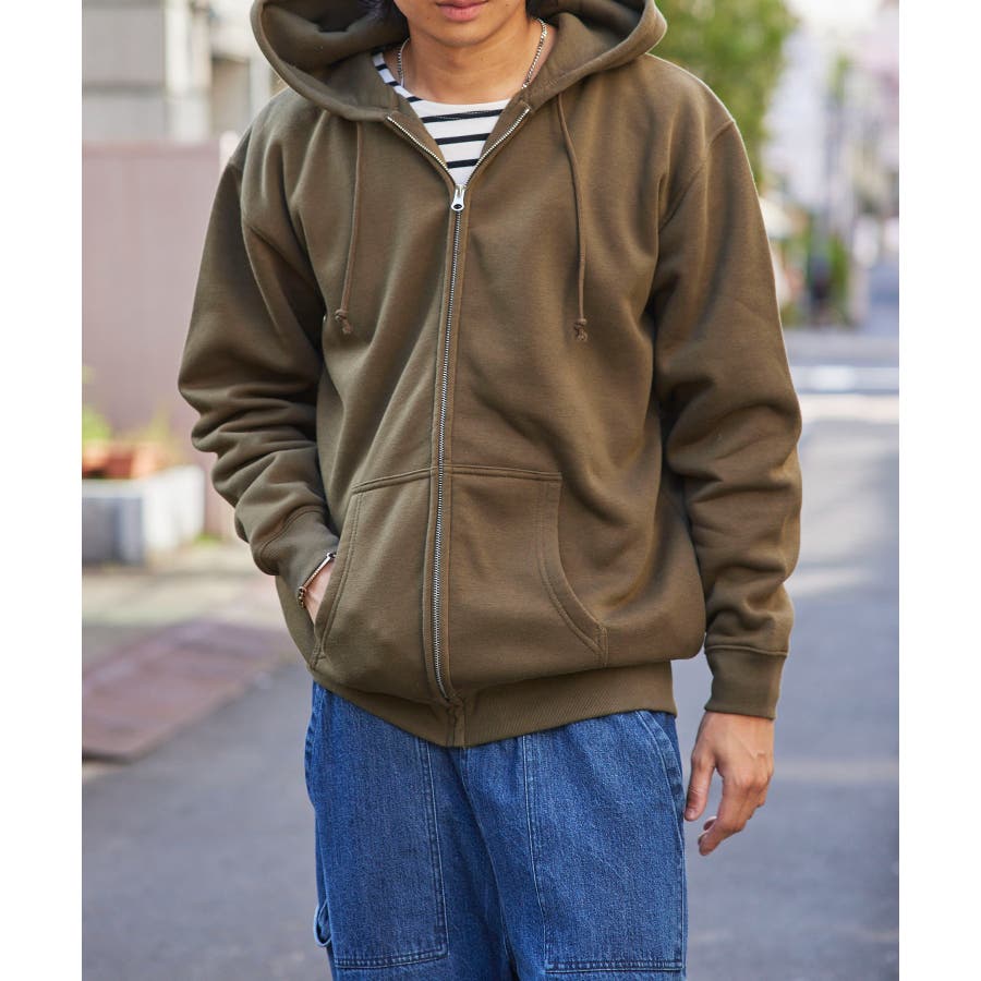 着脱が容易なフルジップタイプは、屋内外のアウターとして重宝!裏地はふかふかで保温性の高い裏起毛にしながら、T/C(綿×ポリエステル)の生地にすることで軽くて丈夫なスウェットに仕上げました。