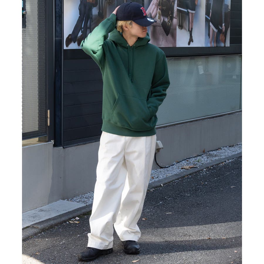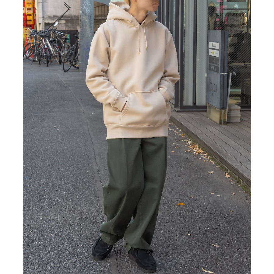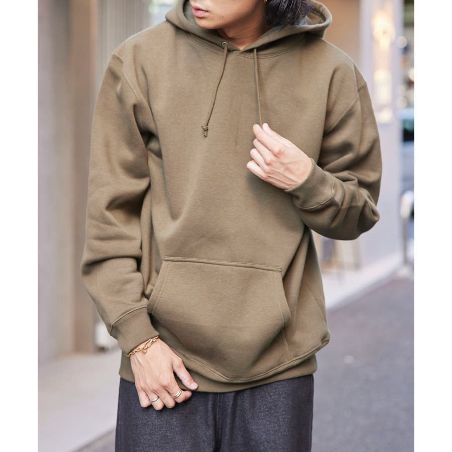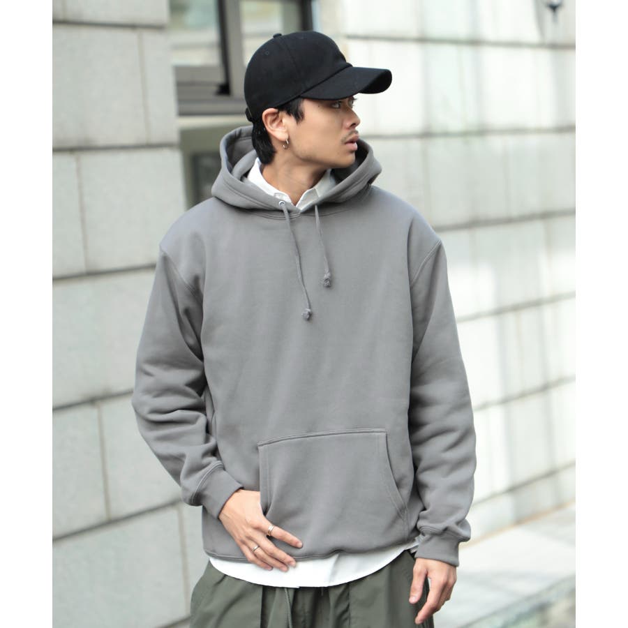 飽きのこないシンプルなデザインの秋冬コーデに定番のスウェットプルオーバーパーカーです。