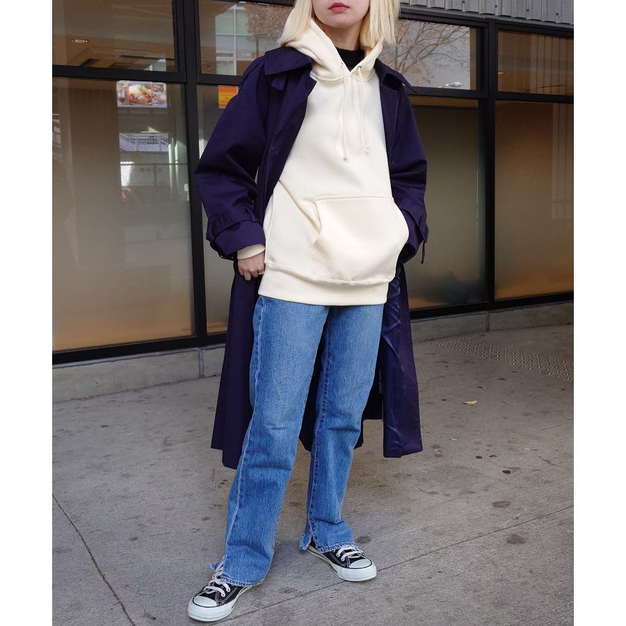 裏地はふかふかで保温性の高い裏起毛にしながら、T/C(綿×ポリエステル)の生地にすることで軽くて丈夫なスウェットに仕上げました。