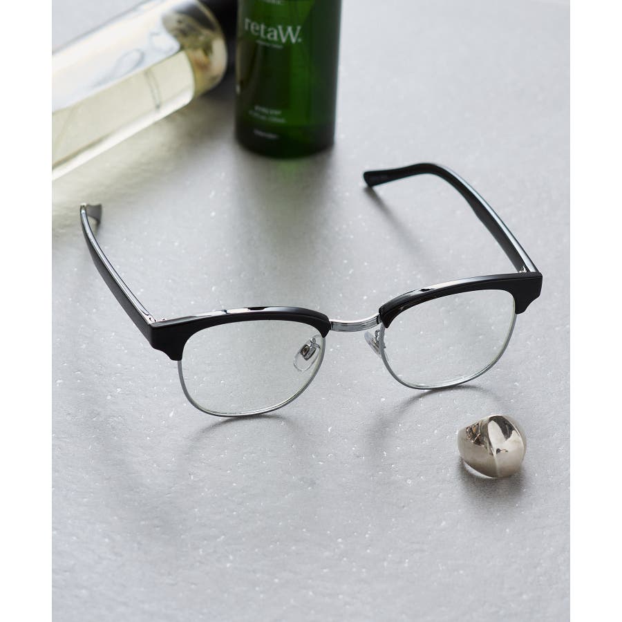 メタルコンビフレームクリアメガネ UVカットクリアサングラス SPNM