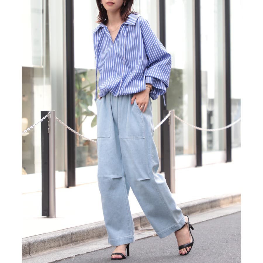 セミワイドシルエットが今っぽく、普段の着こなしにプラスするだけで一気にこなれ感がアップします。