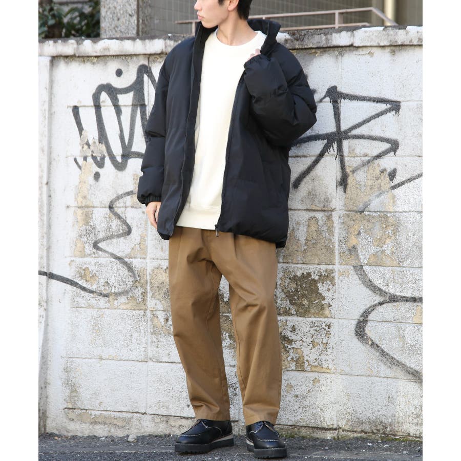 スラックスなどのキレイ目なパンツにも外しで合わせることができるので、