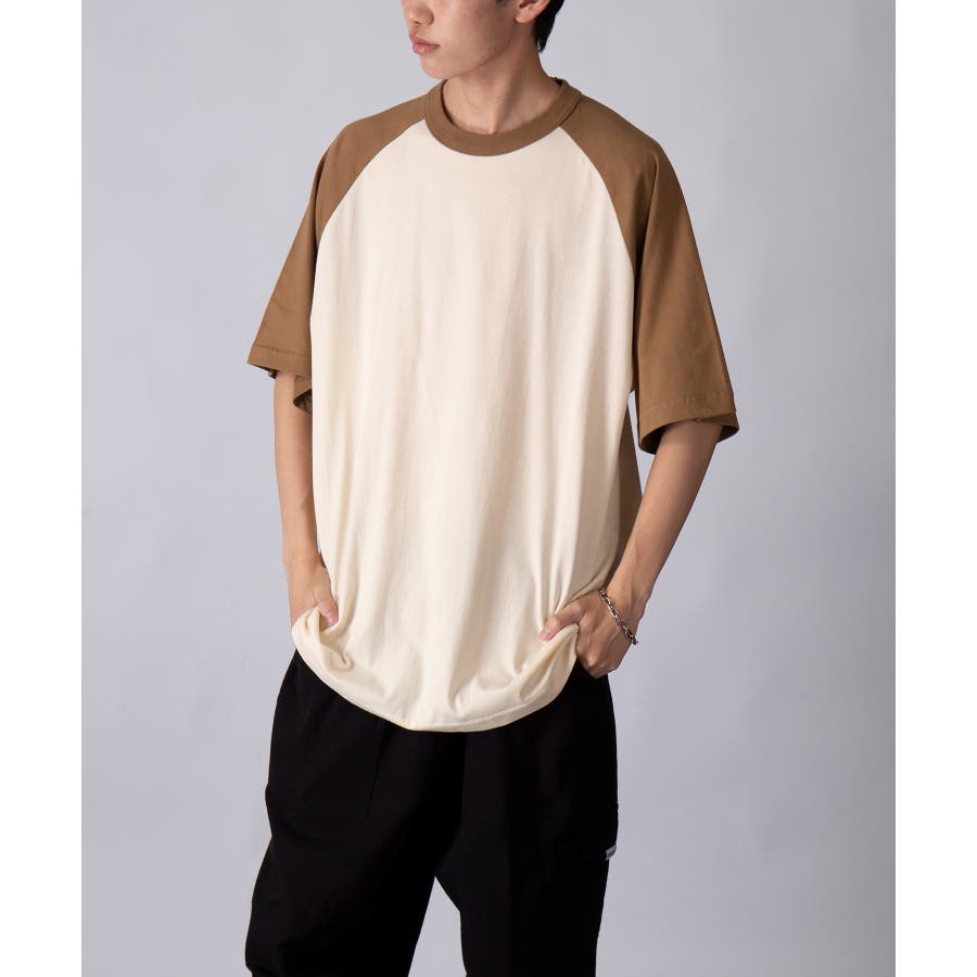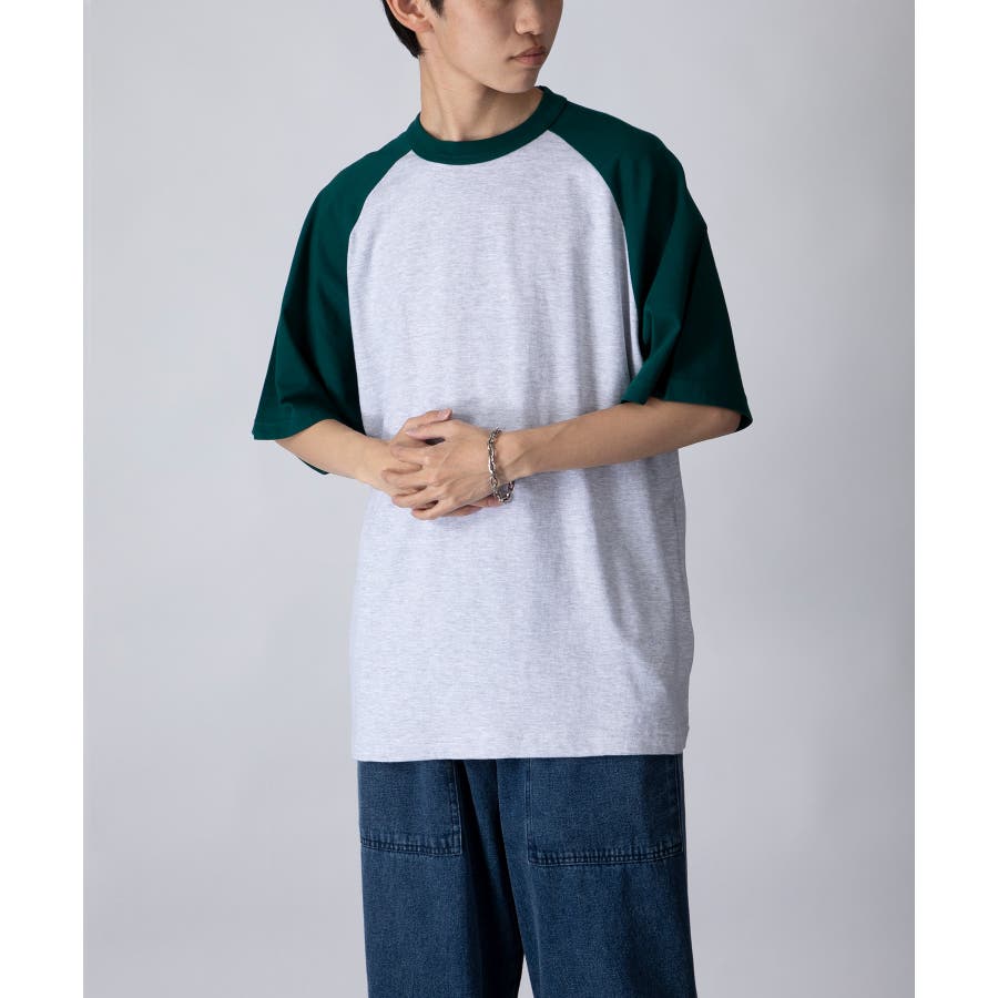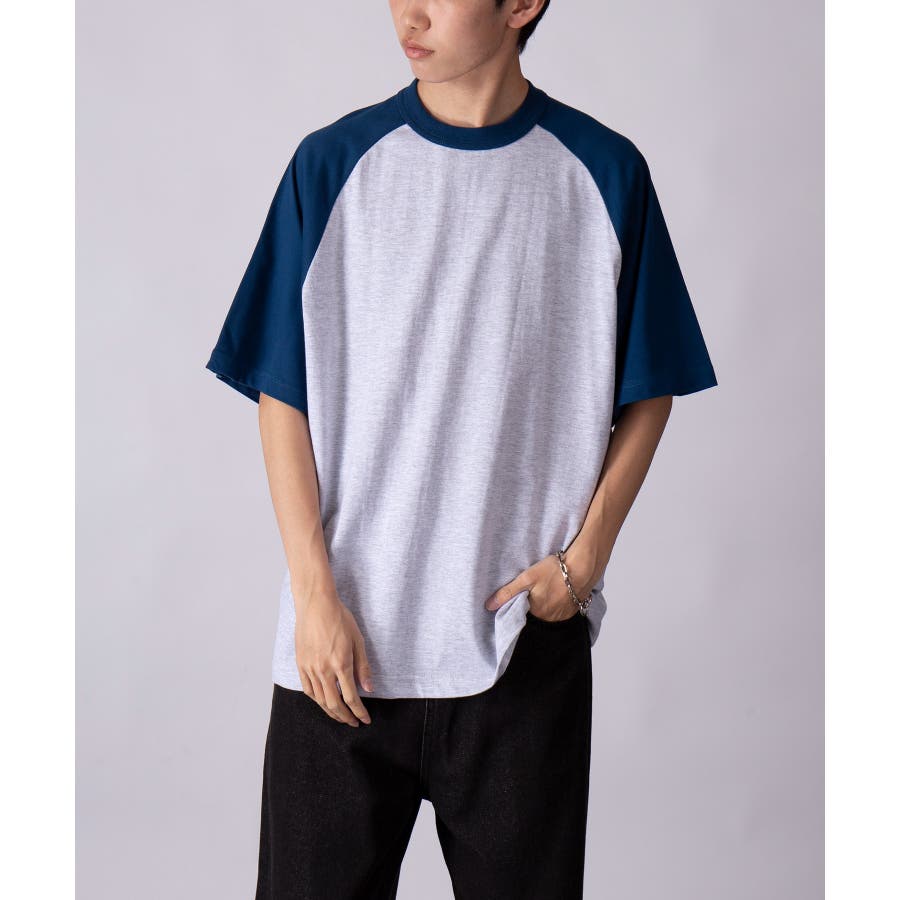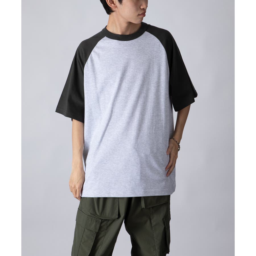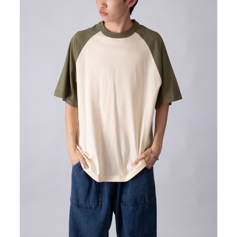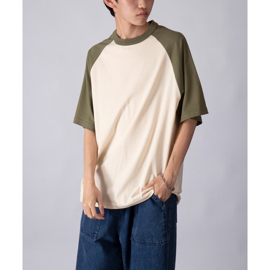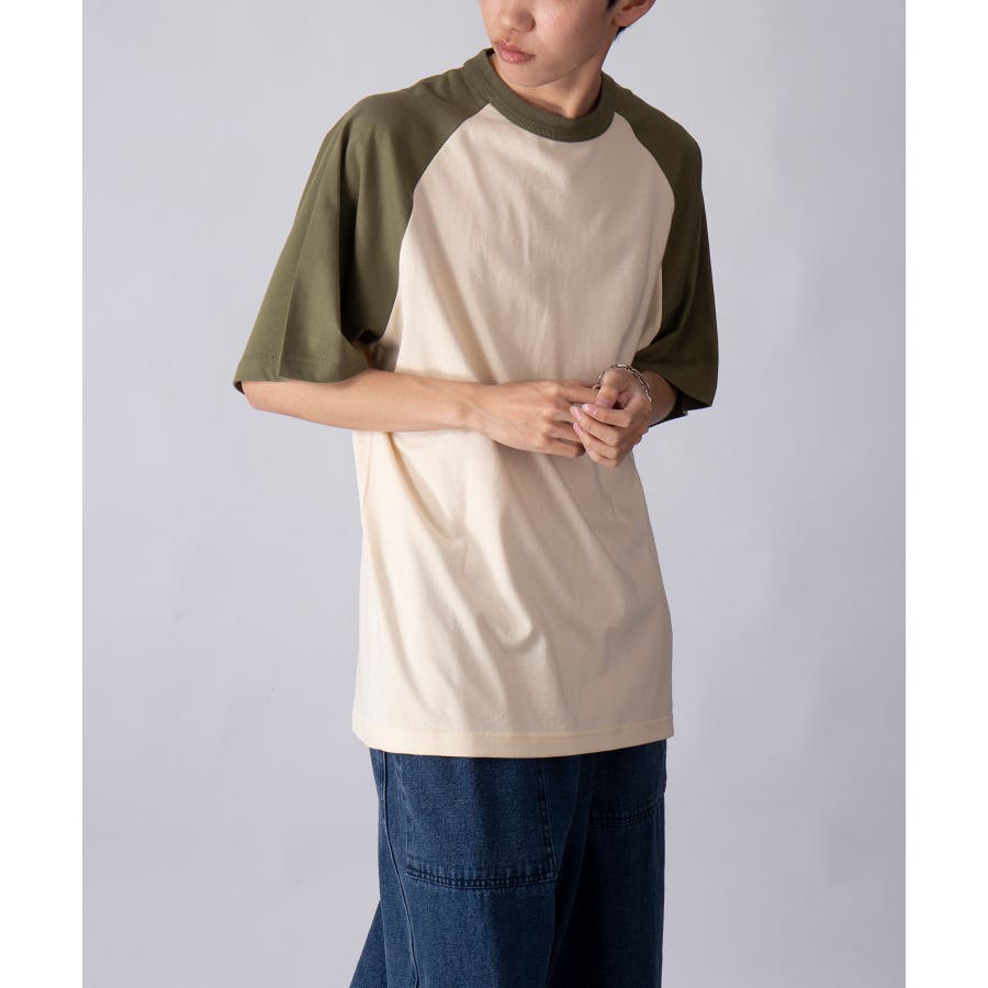 袖の切替えデザインがアクセントのラグランTシャツ。