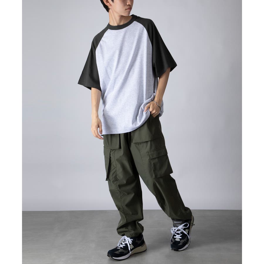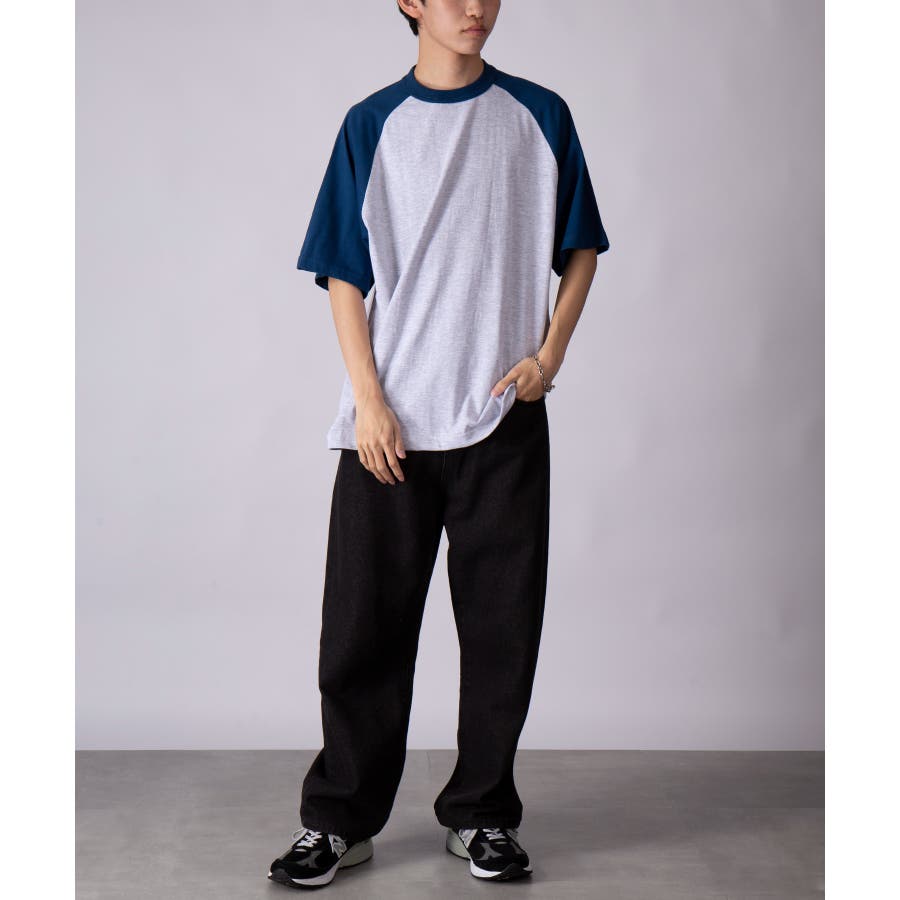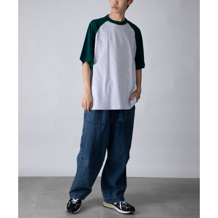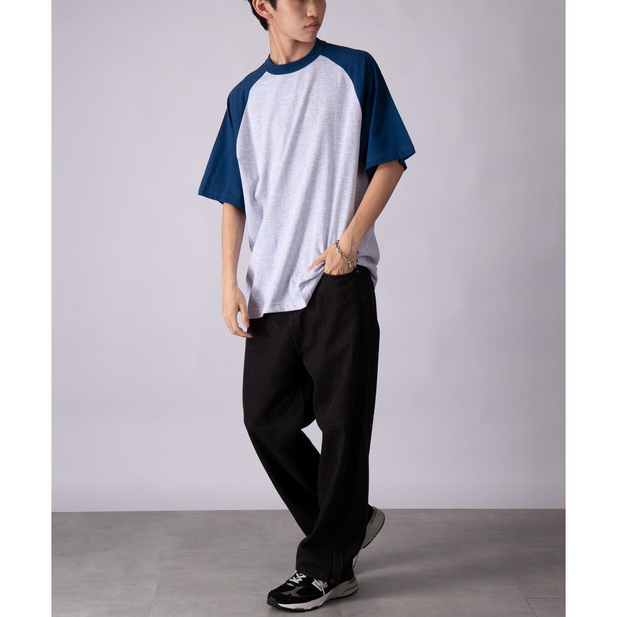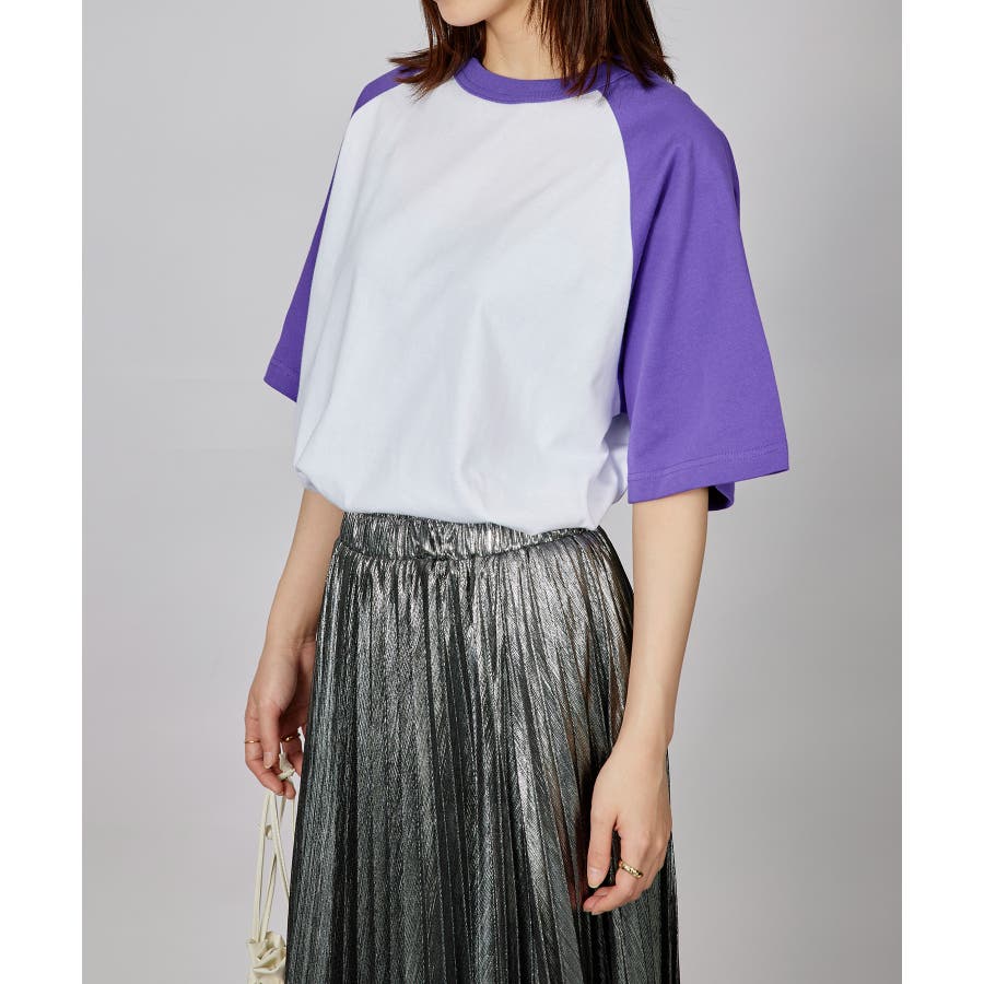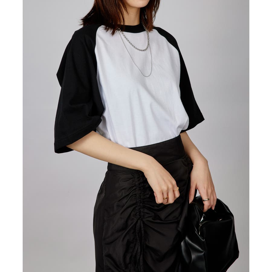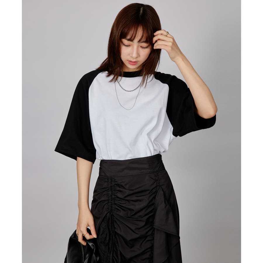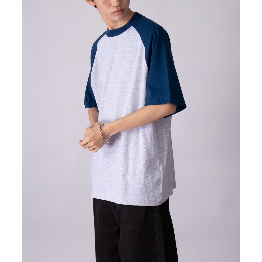 袖の切替えデザインがアクセントのラグランTシャツ。