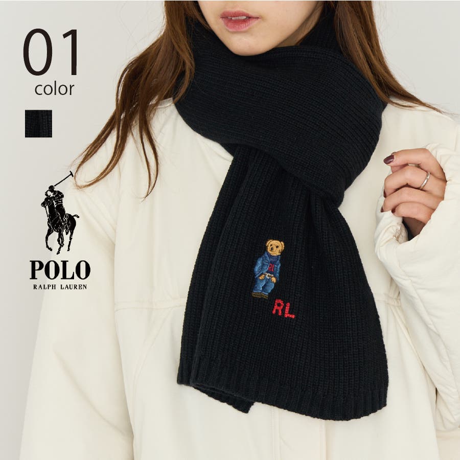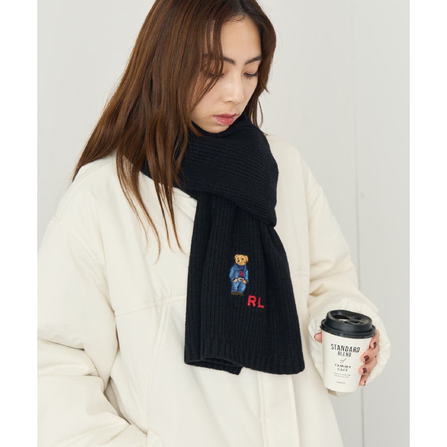 ポロ ラルフローレン定番のベアーが施されたリブニットマフラー