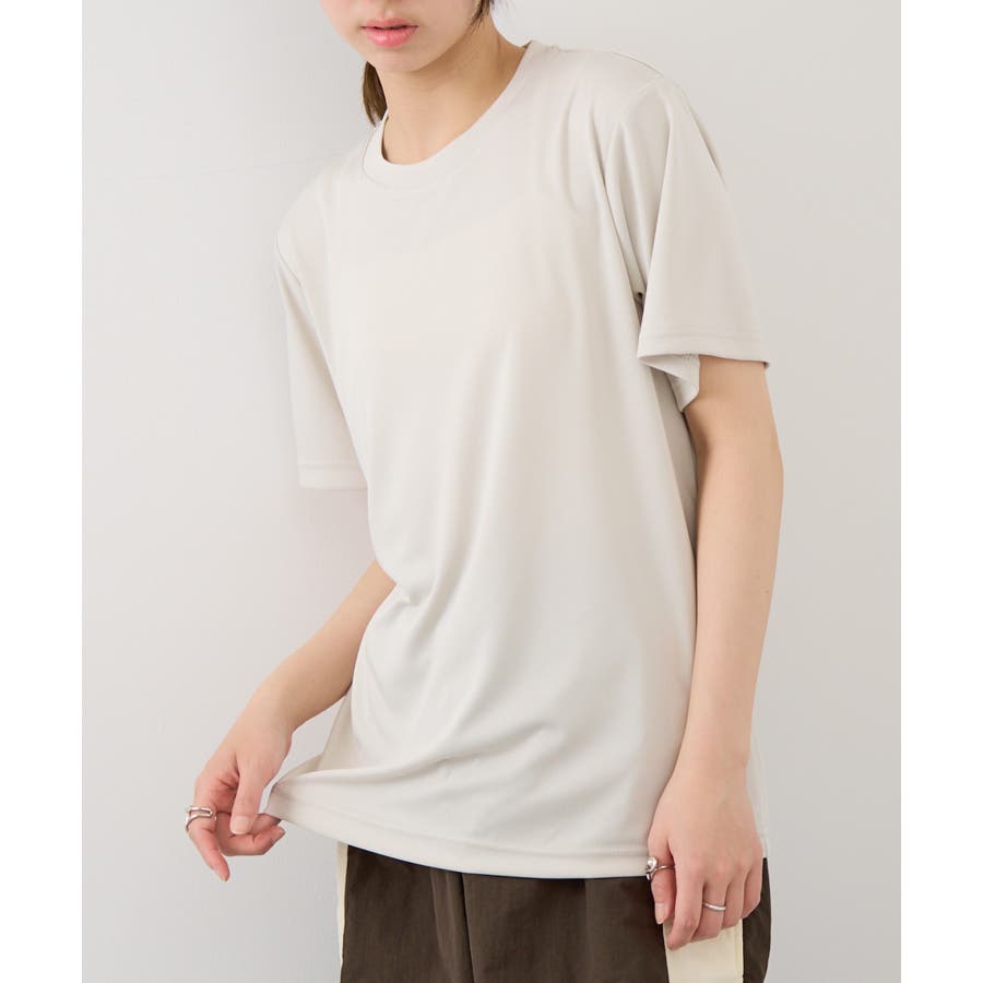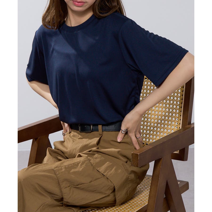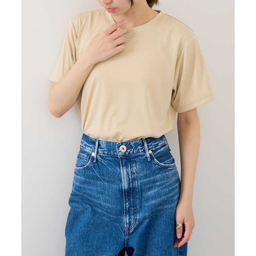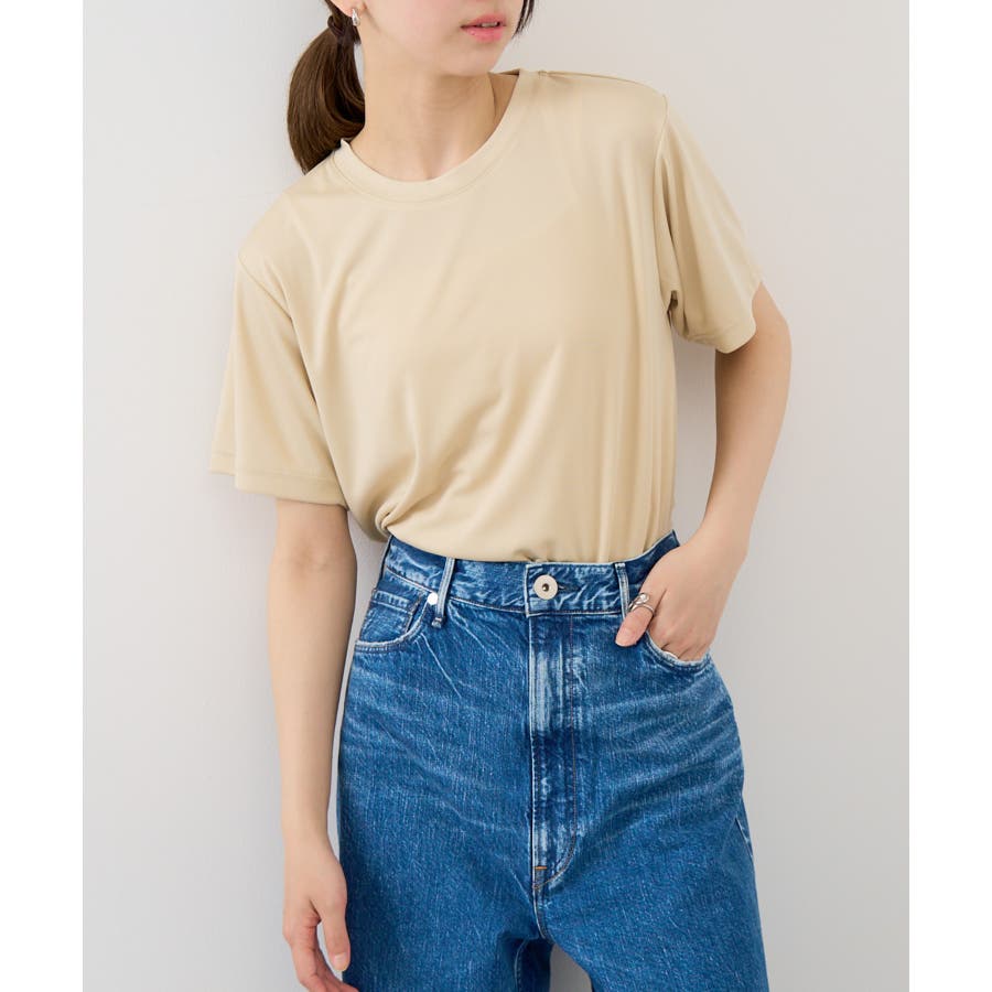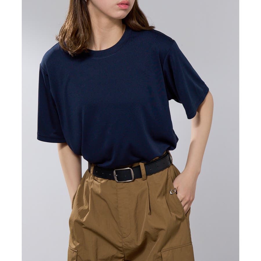 セミダル糸を採用することで、透けにくく、テカリやツヤが抑えられた自然な光沢感のある、洗練された印象のドライTに仕上がりました。