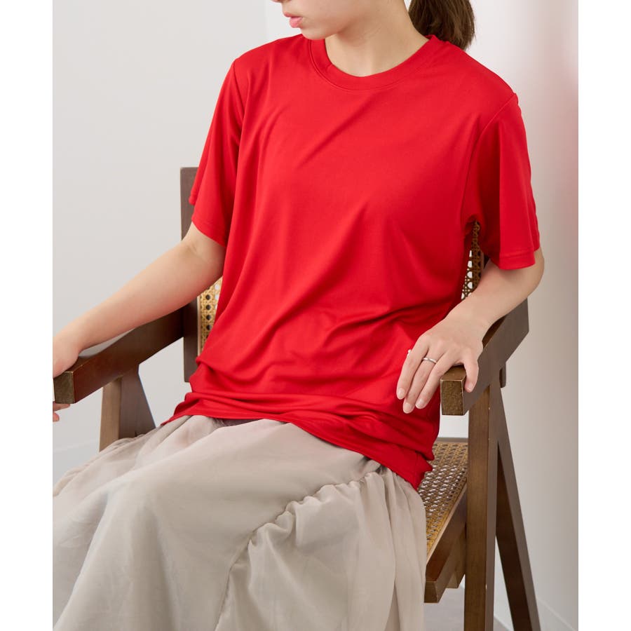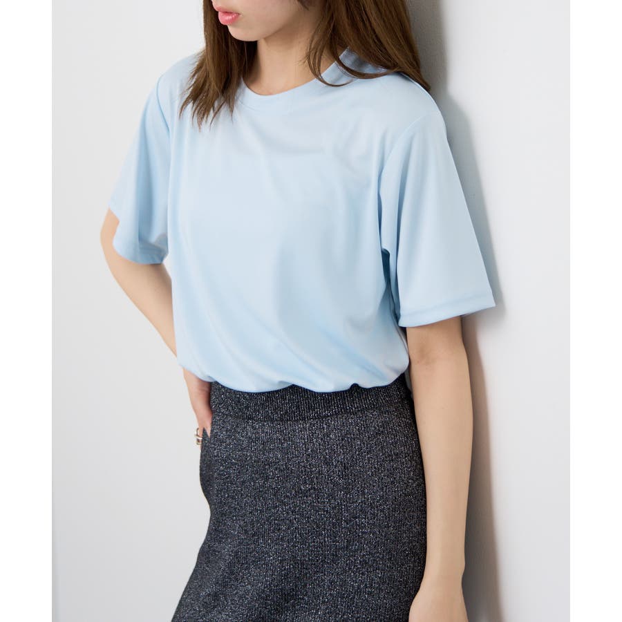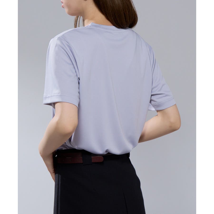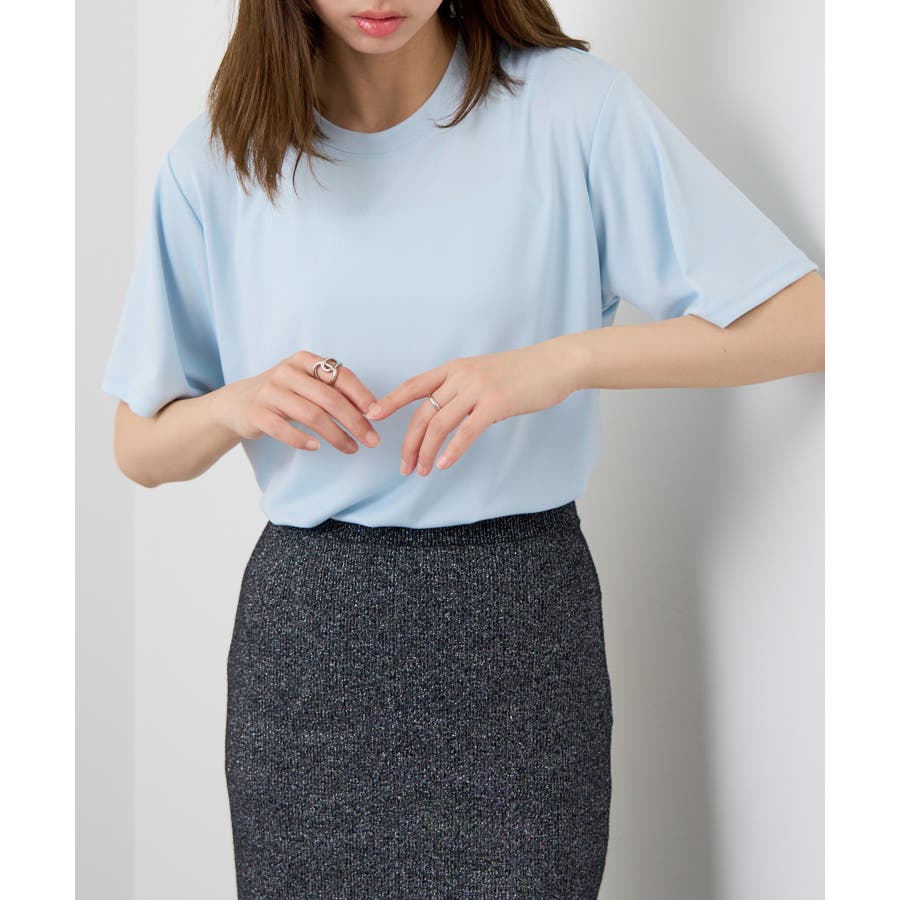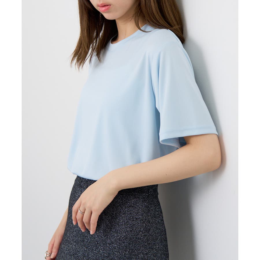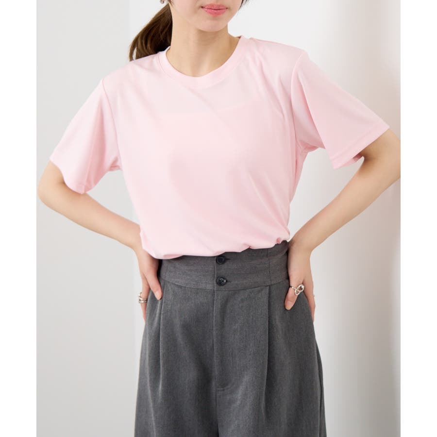 セミダル糸を採用することで、透けにくく、テカリやツヤが抑えられた自然な光沢感のある、洗練された印象のドライTに仕上がりました。