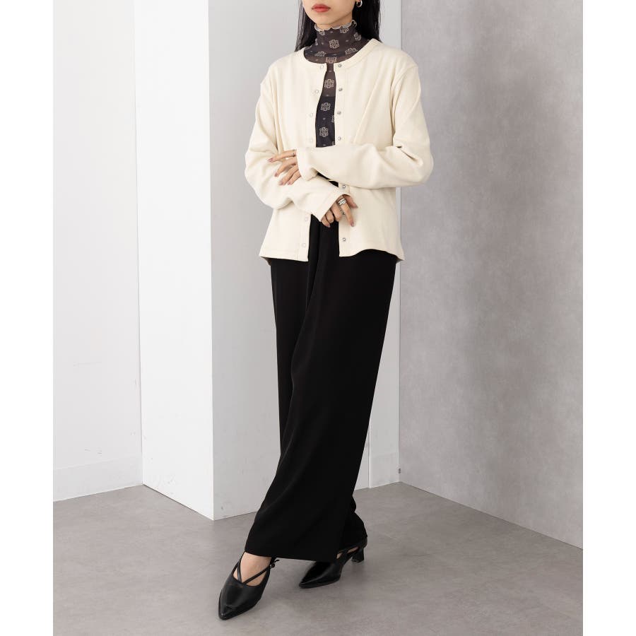 前を閉じればトップスとして、開けて羽織れば抜け感あるニュアンスに