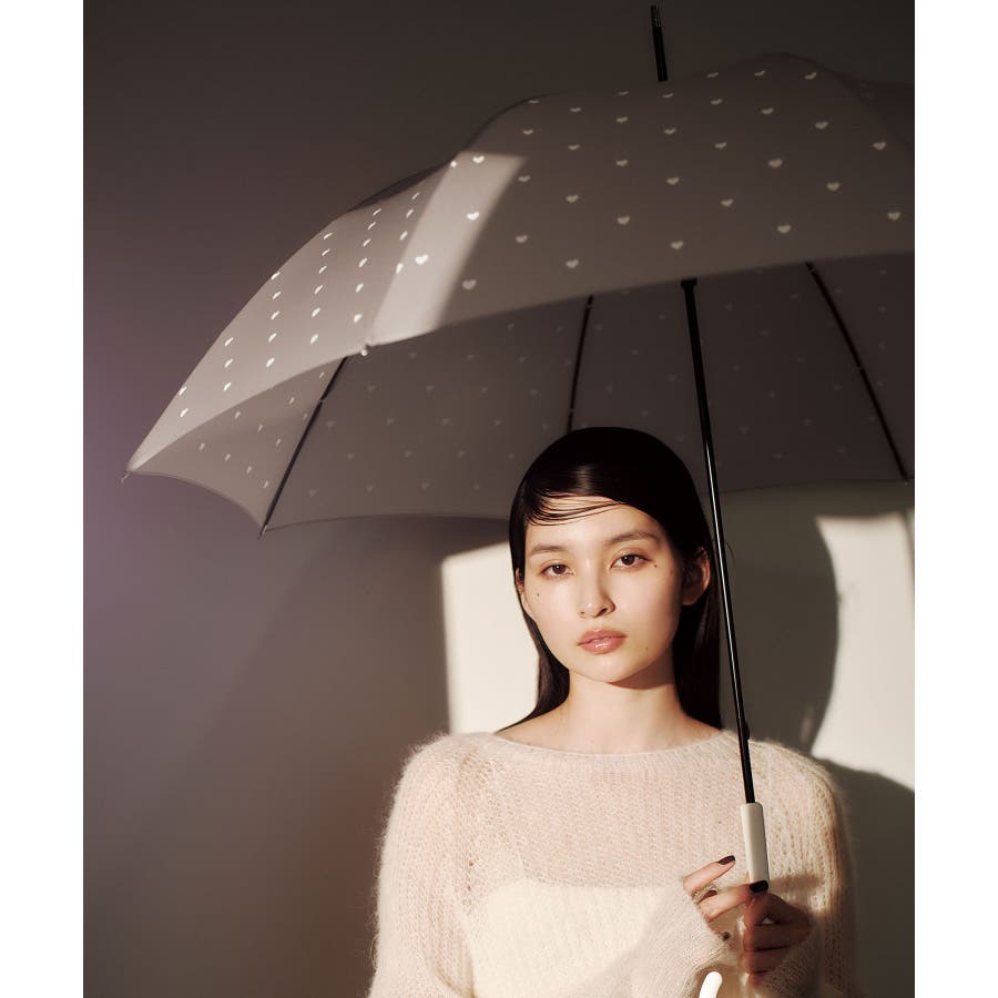 ハート柄がほどよく甘さを添える、大人かわいい長傘