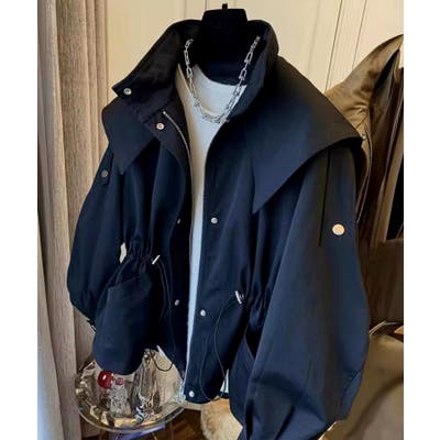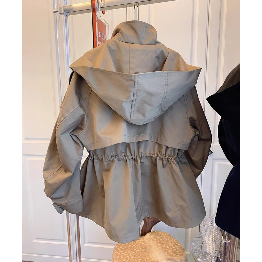 洗練されたデザインが魅力のクロップドギャザーフードジャケット