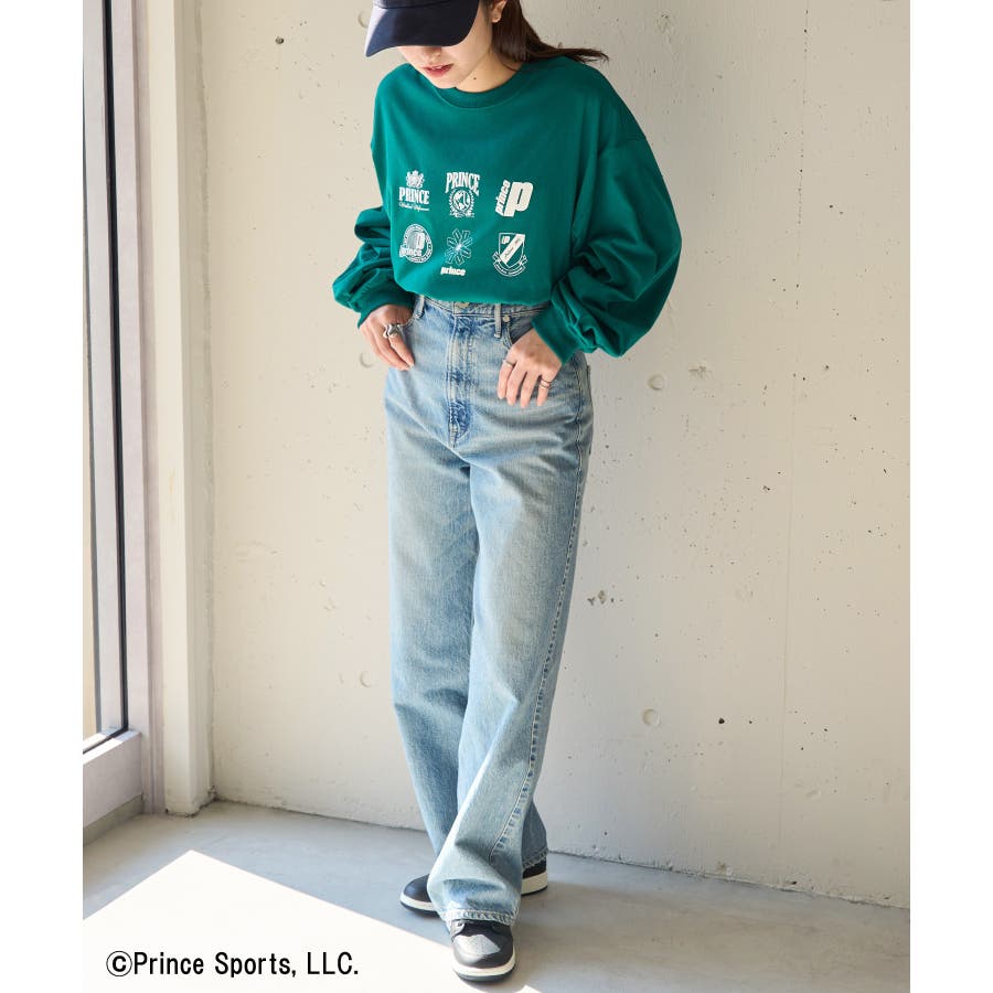 ・ワイドデニムにスニーカーを合わせたストリートライクスタイル