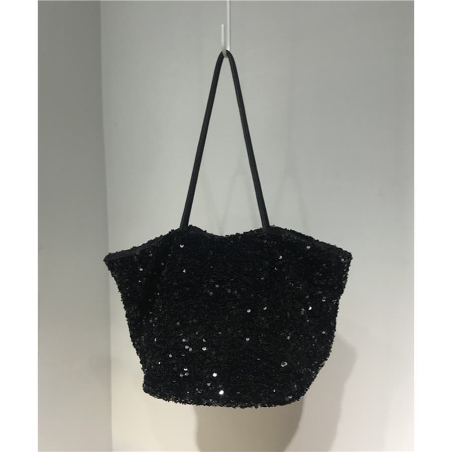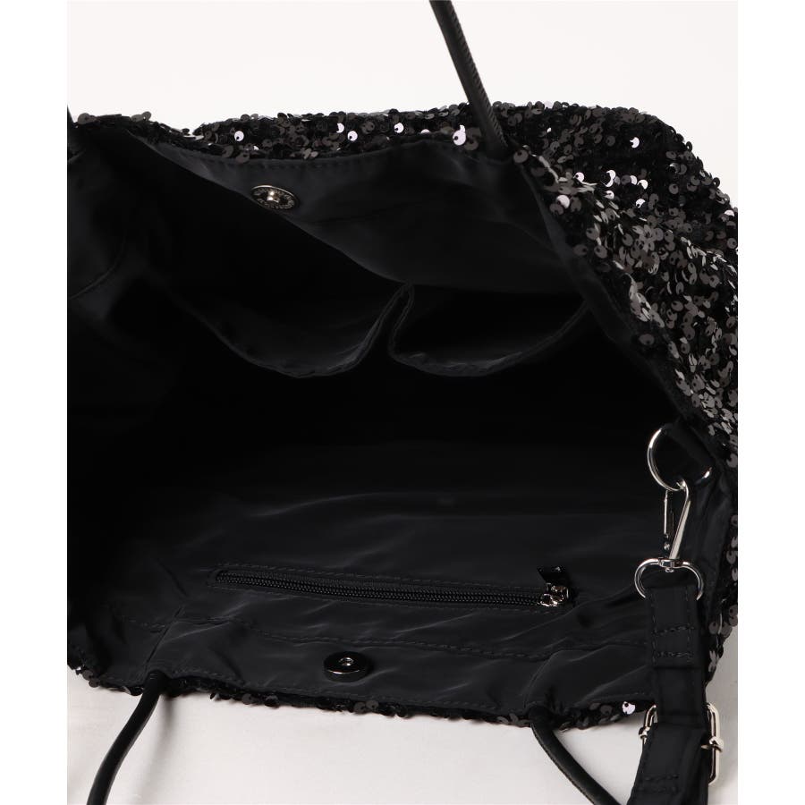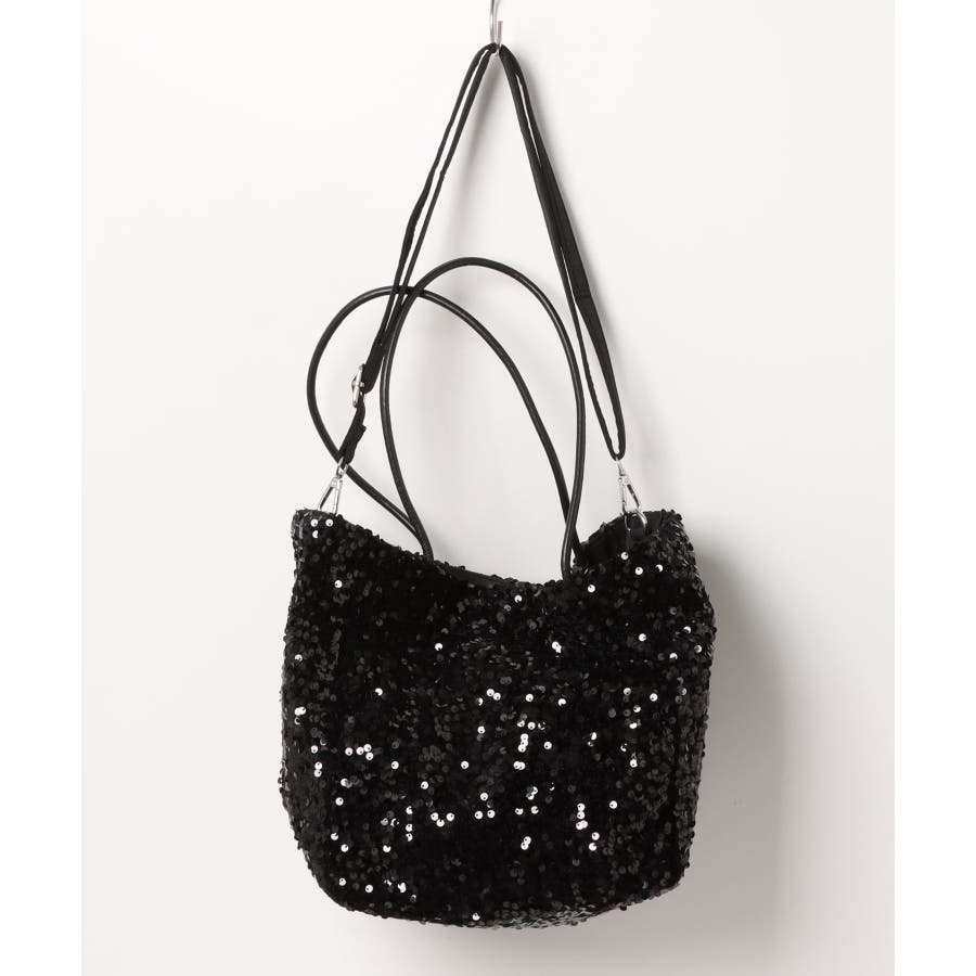 表面全体にあしらわれたスパンコールが、光の角度によってきらめきを放ち、持つだけでコーディネートに華やかさをプラスしてくれるデザイン。