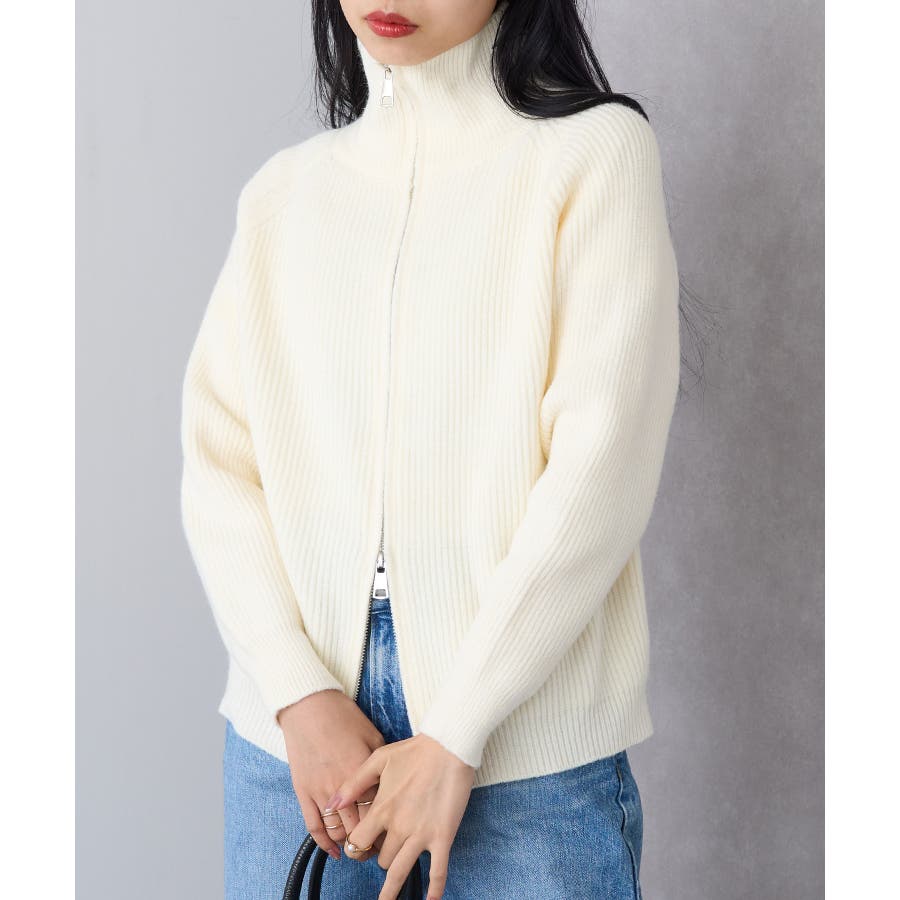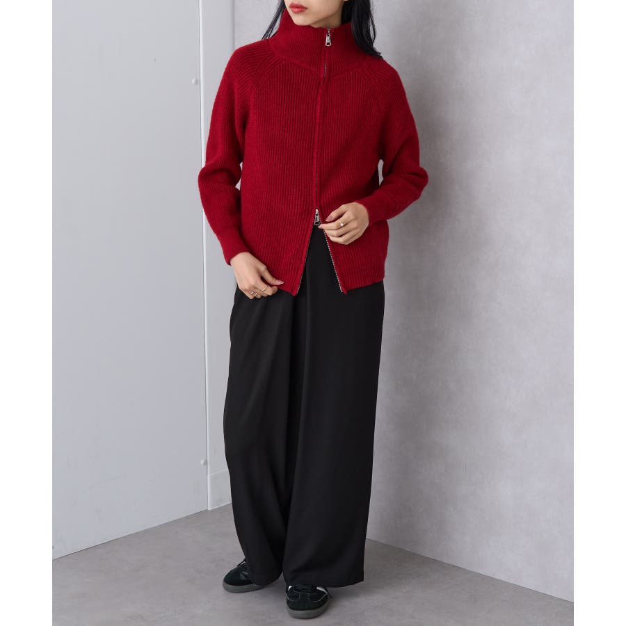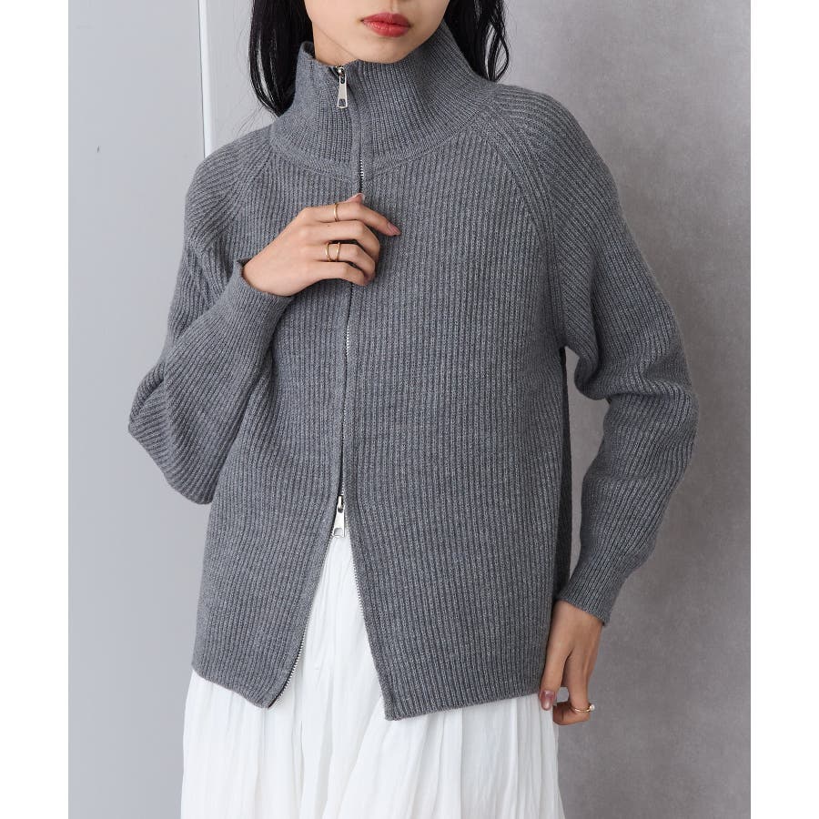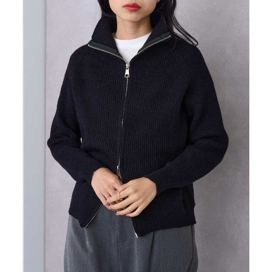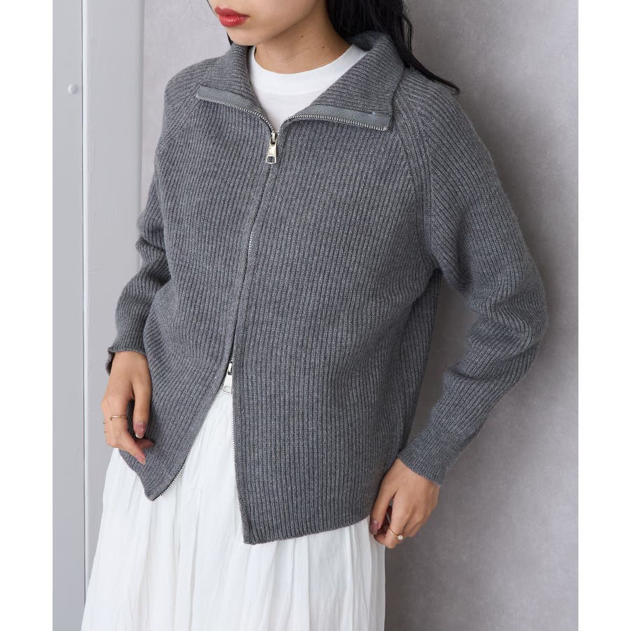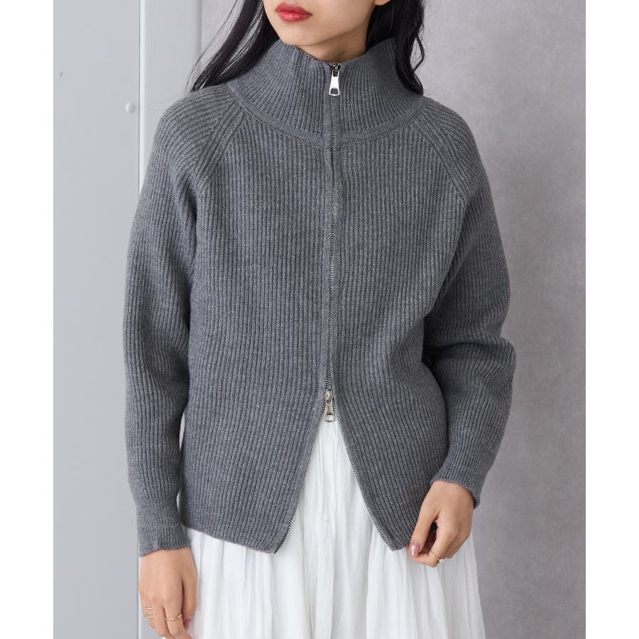 表面にはリブ編みを施し、程よく厚みのある編地で仕立てた一着です。
