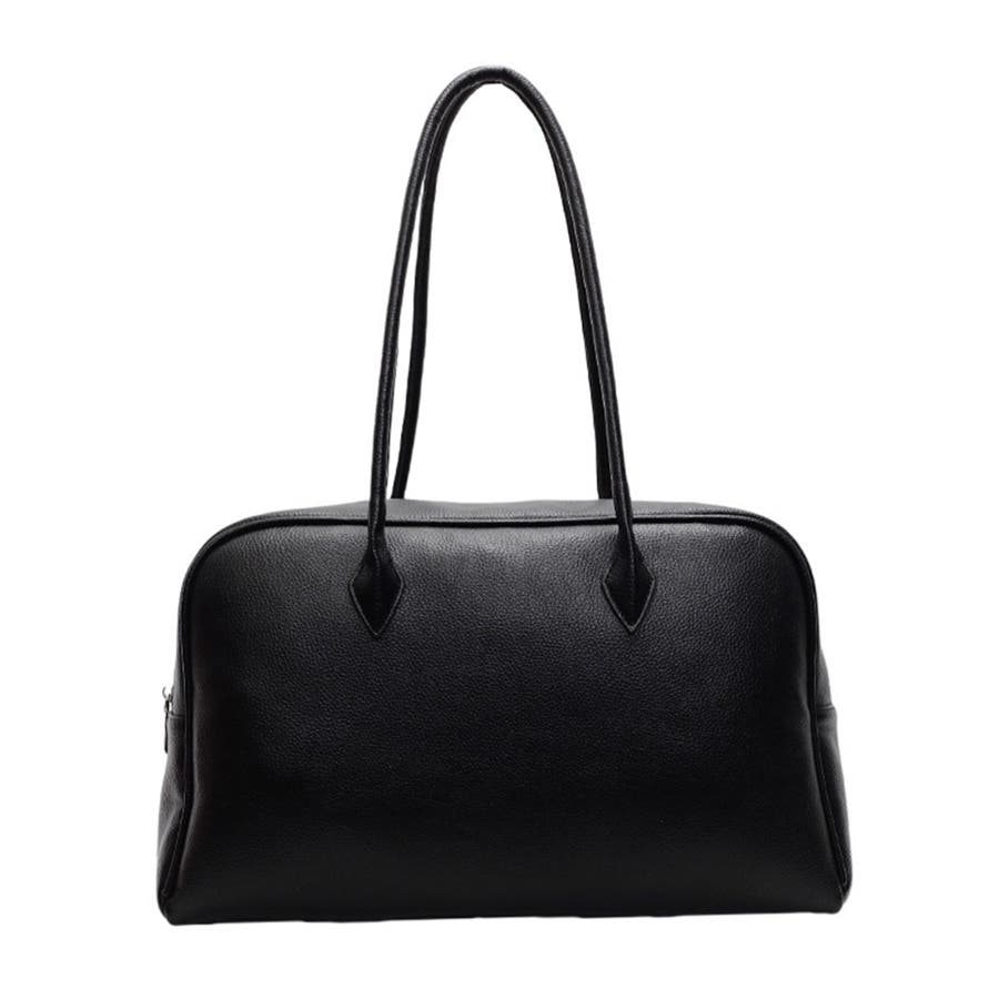 シンプルで使いやすいスクエア型のクラシックレザーミニボストンバッグ