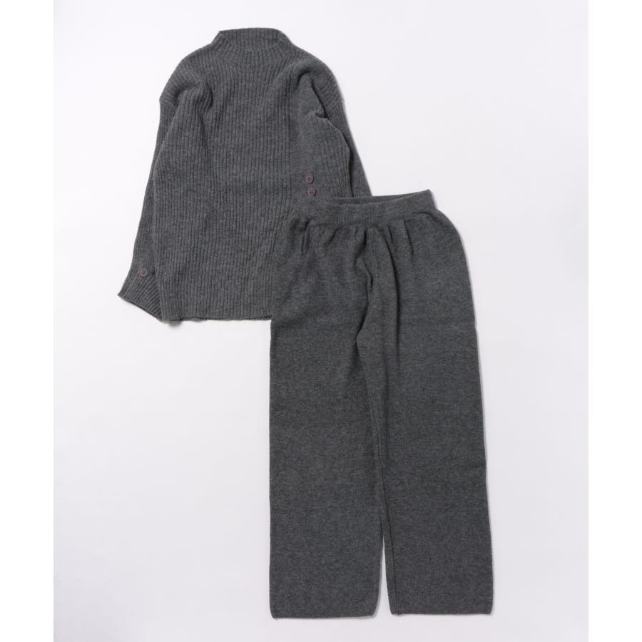 ふんわりとした羊毛のような肌触りを叶えてくれるアクリル混素材を使用したセットアップ。