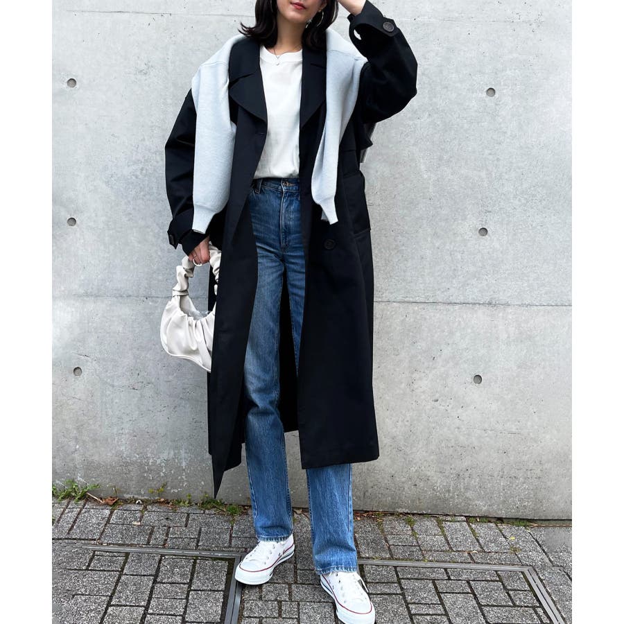 ・ベルトでウエストマークしてガウンコートのように着るのもオススメ。コーディネイトの主役になるアウターです。