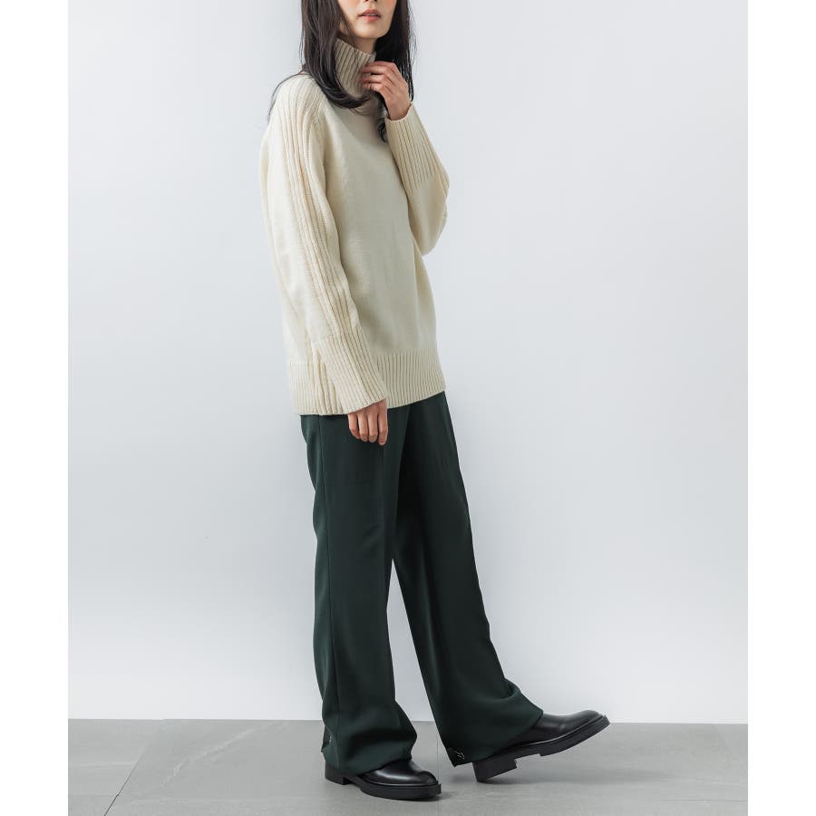 ゆったりとしたシルエットが今年らしいタートルネックニットは、立体的なフォルムに仕上げリラックス感のある着心地に。
