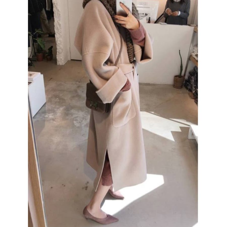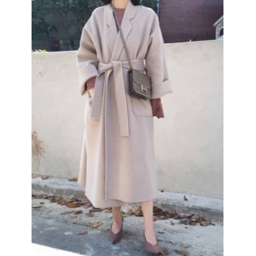 【SETUP7】ミッドレングスベルト付きウールライクガウンコート SCCH35