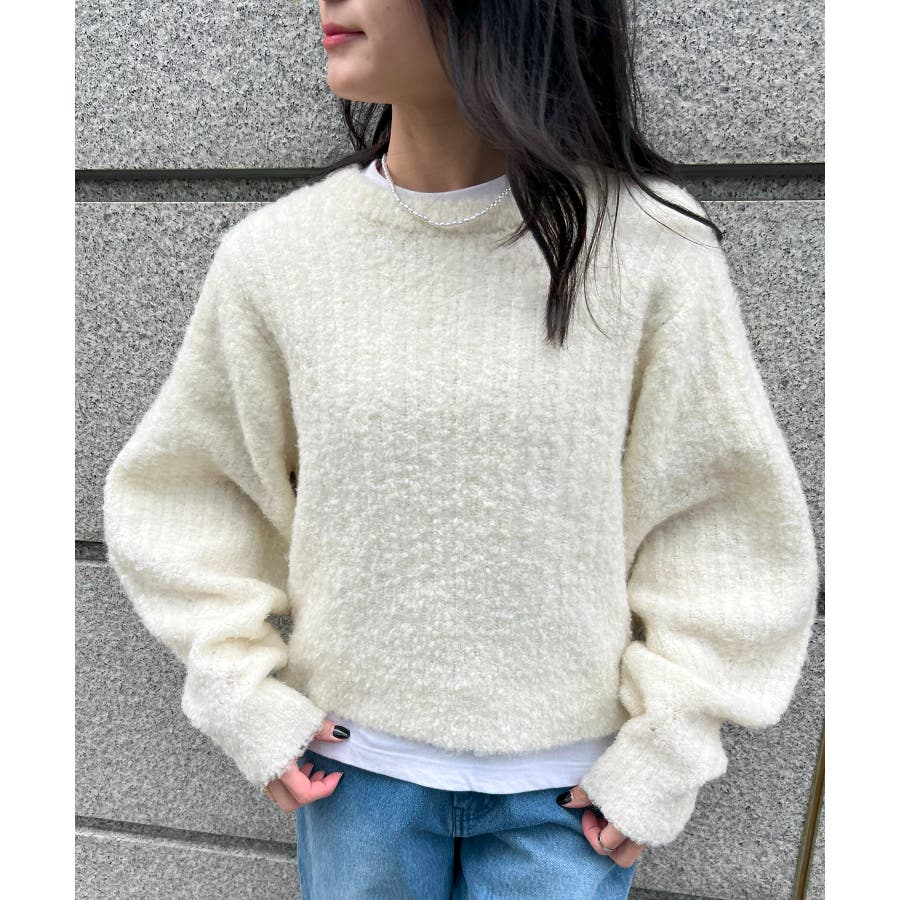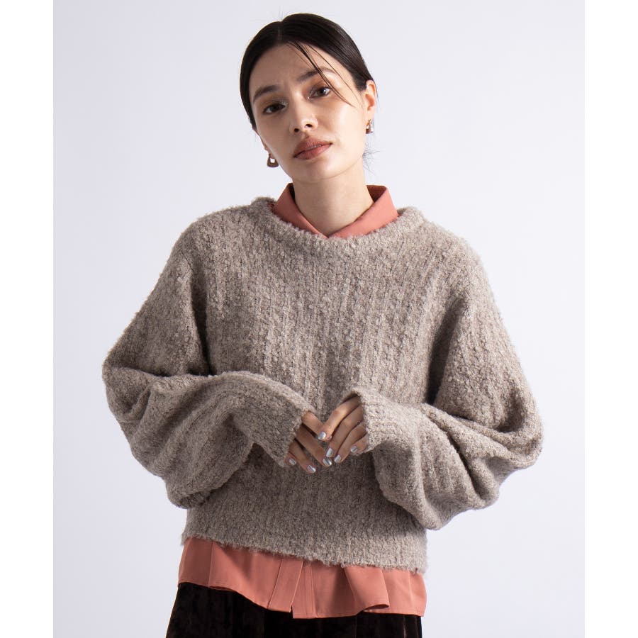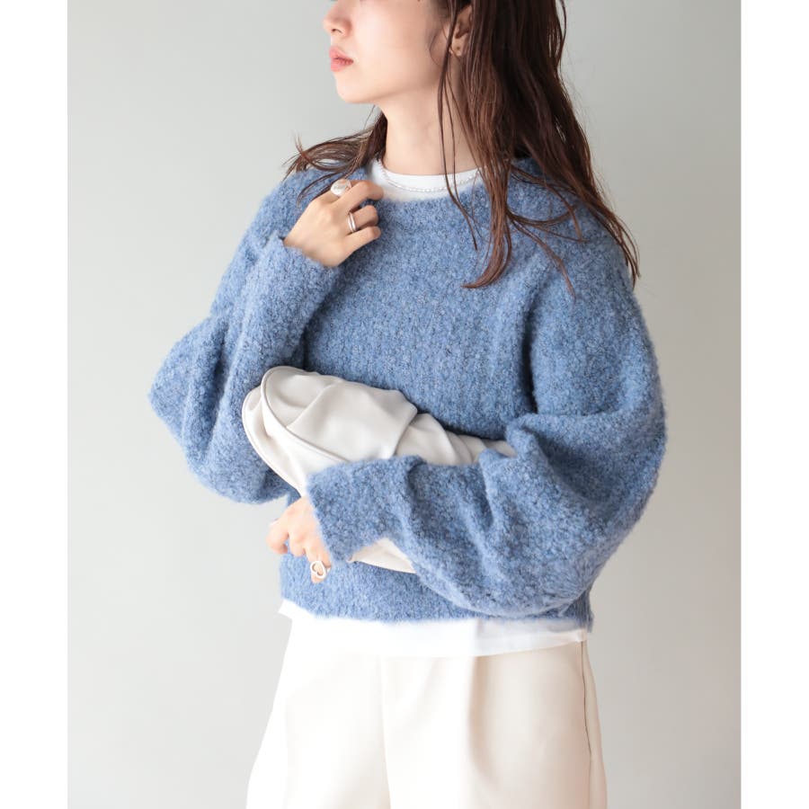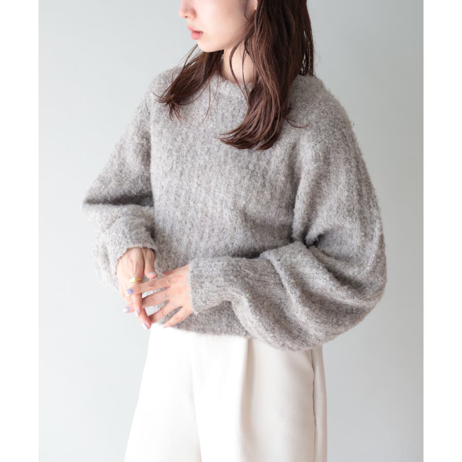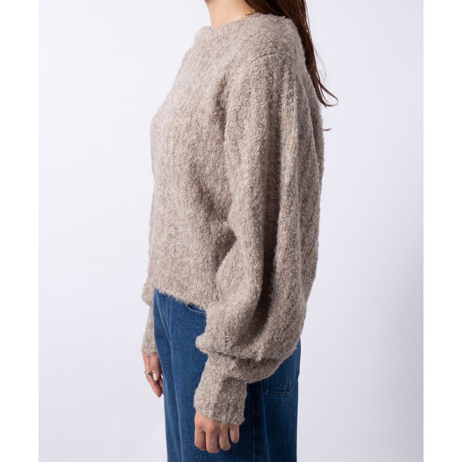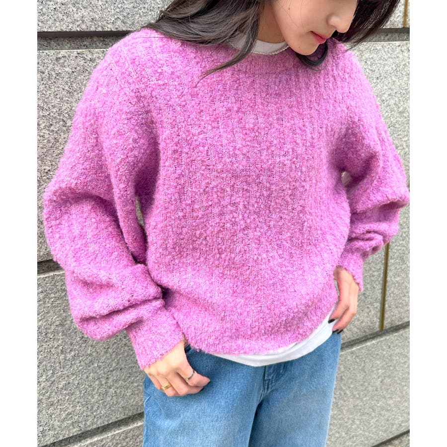 ふっくら程良くボリューミーなラウンドスリーブが手軽に着こなしのアクセントを造ってくれるブークレニットトップス。