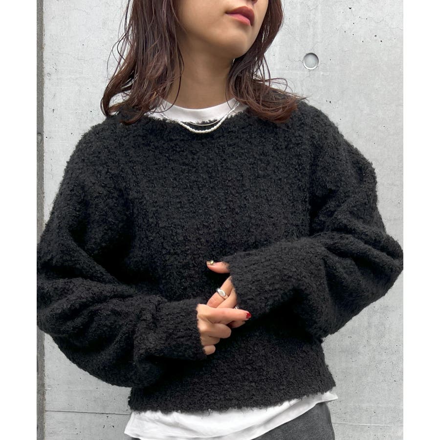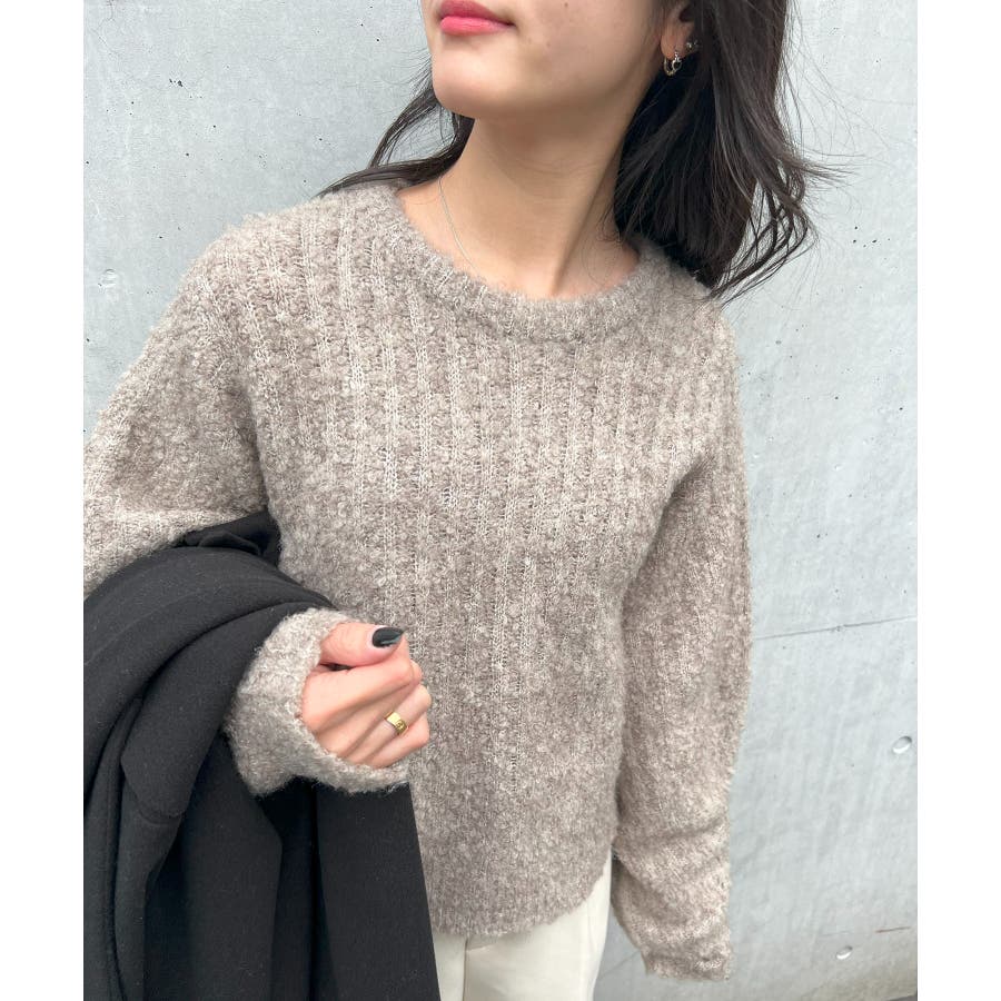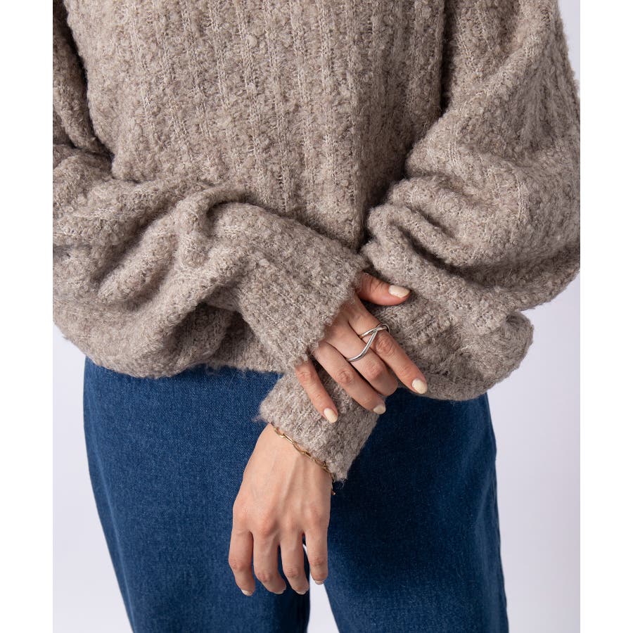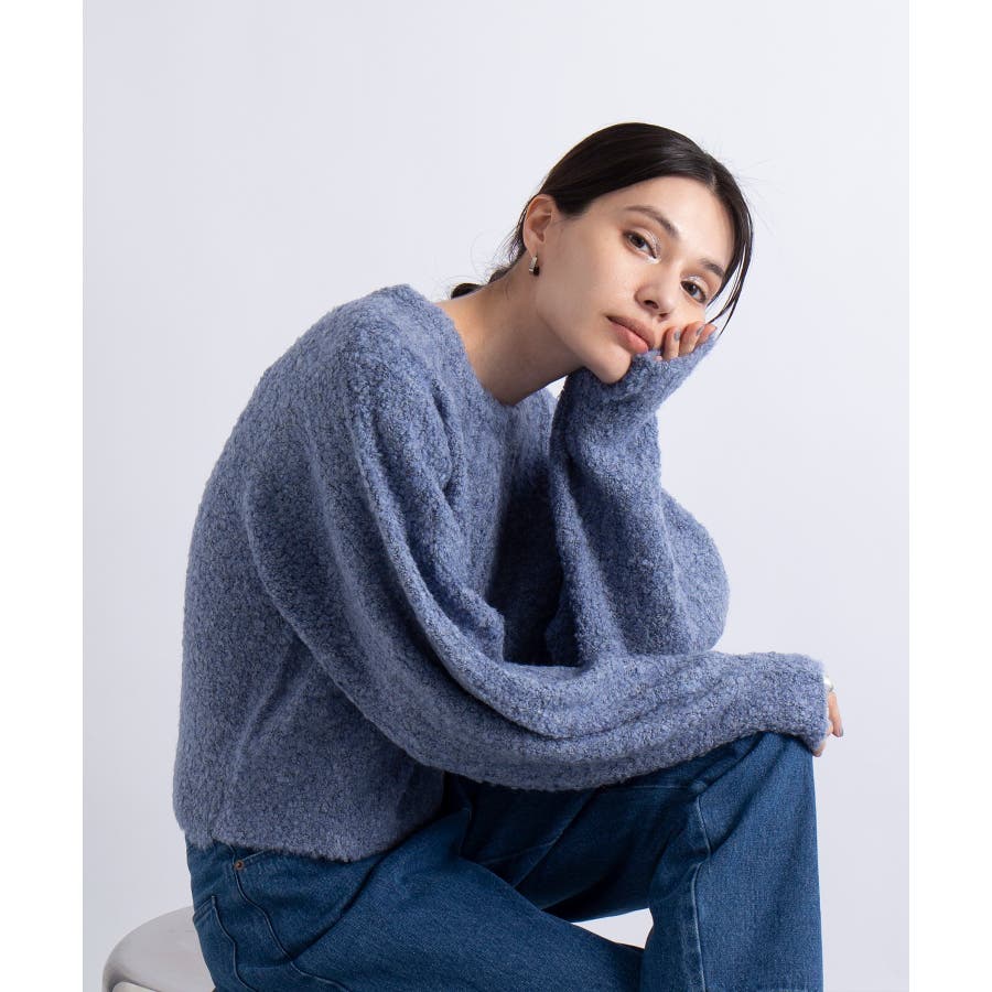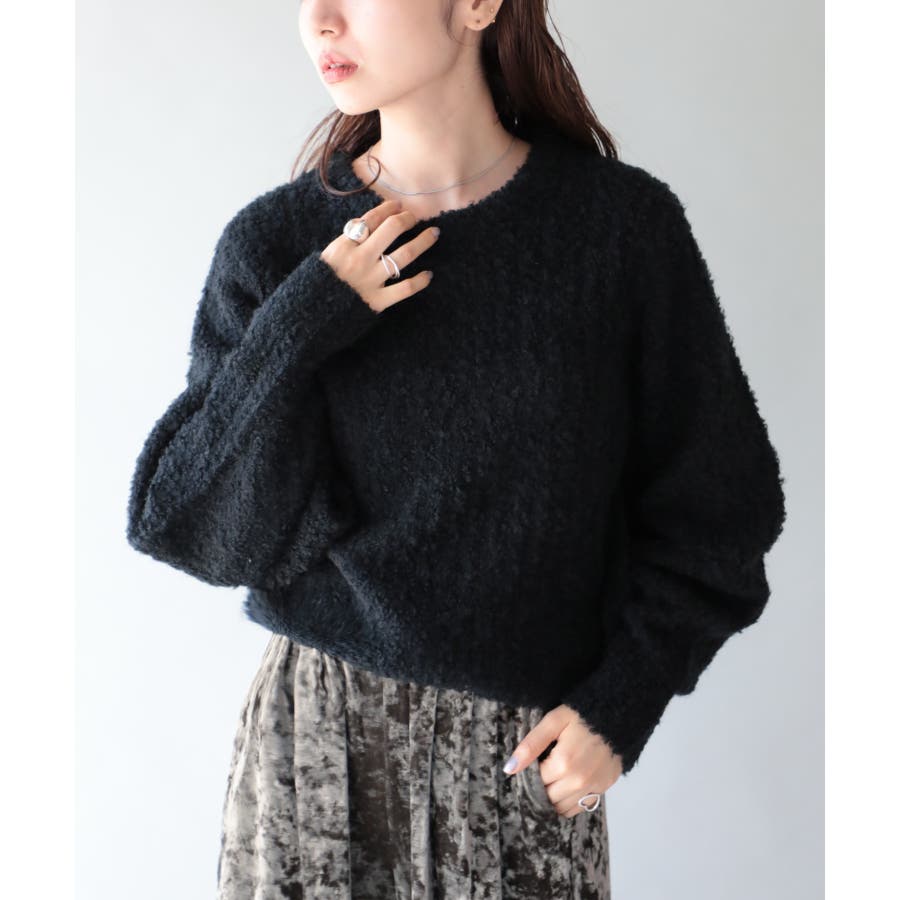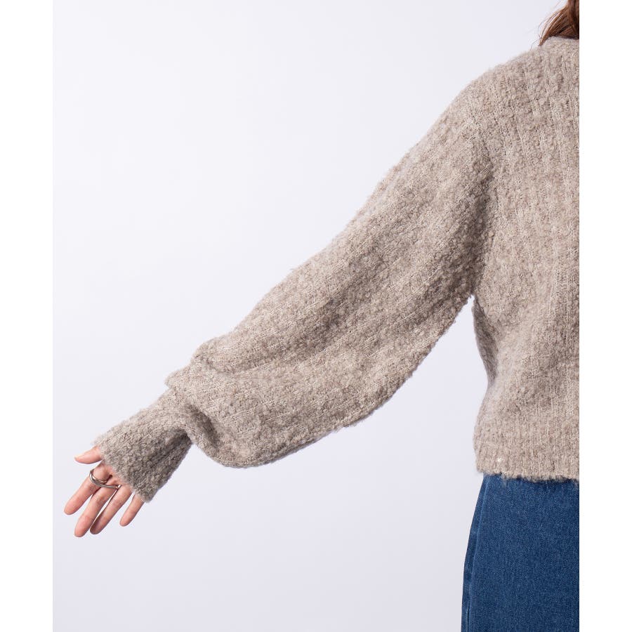 ふっくら程良くボリューミーなラウンドスリーブが手軽に着こなしのアクセントを造ってくれるブークレニットトップス。