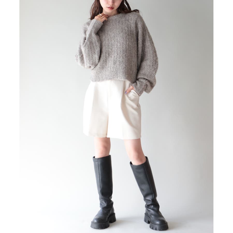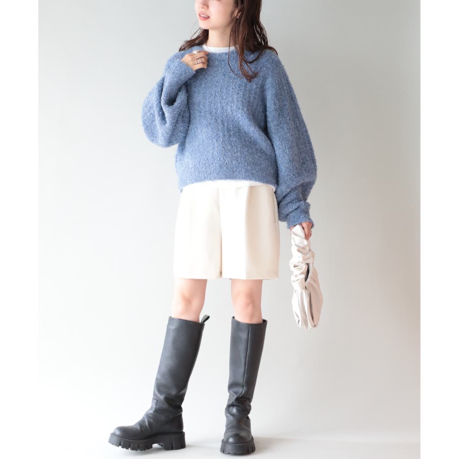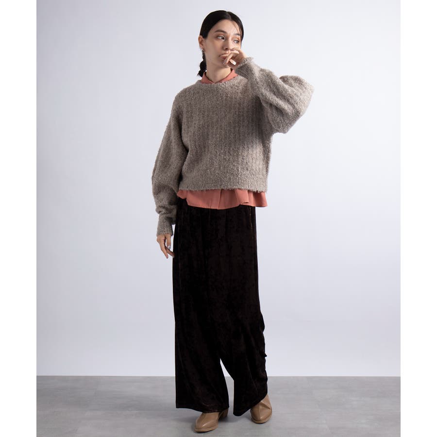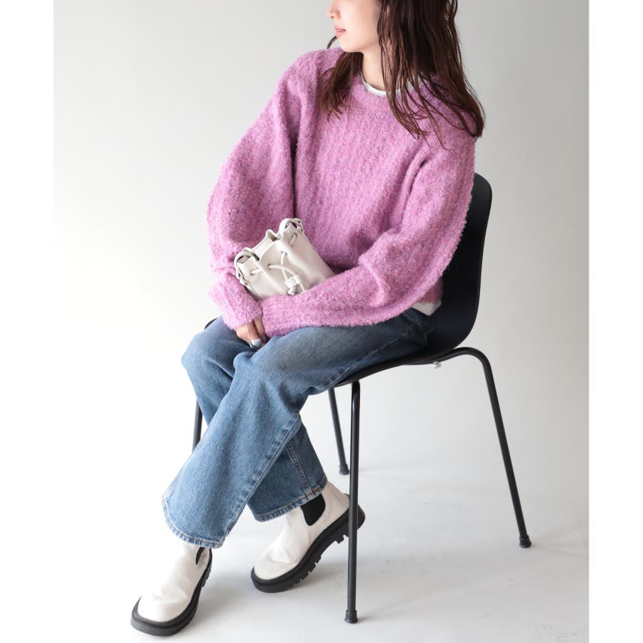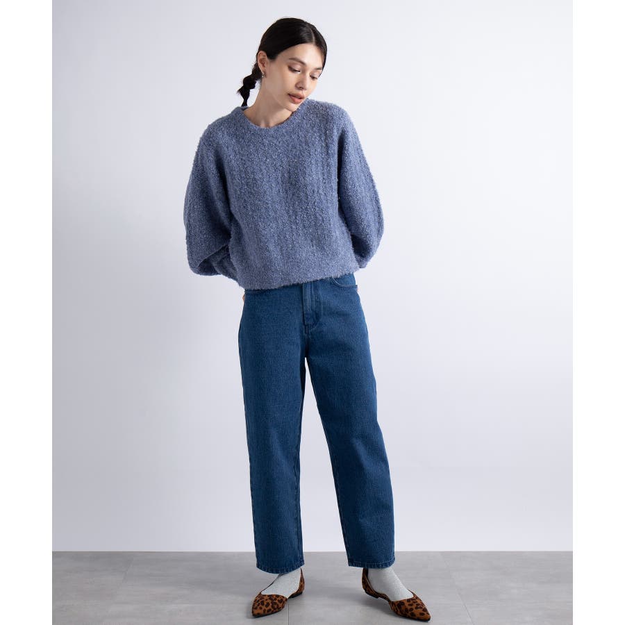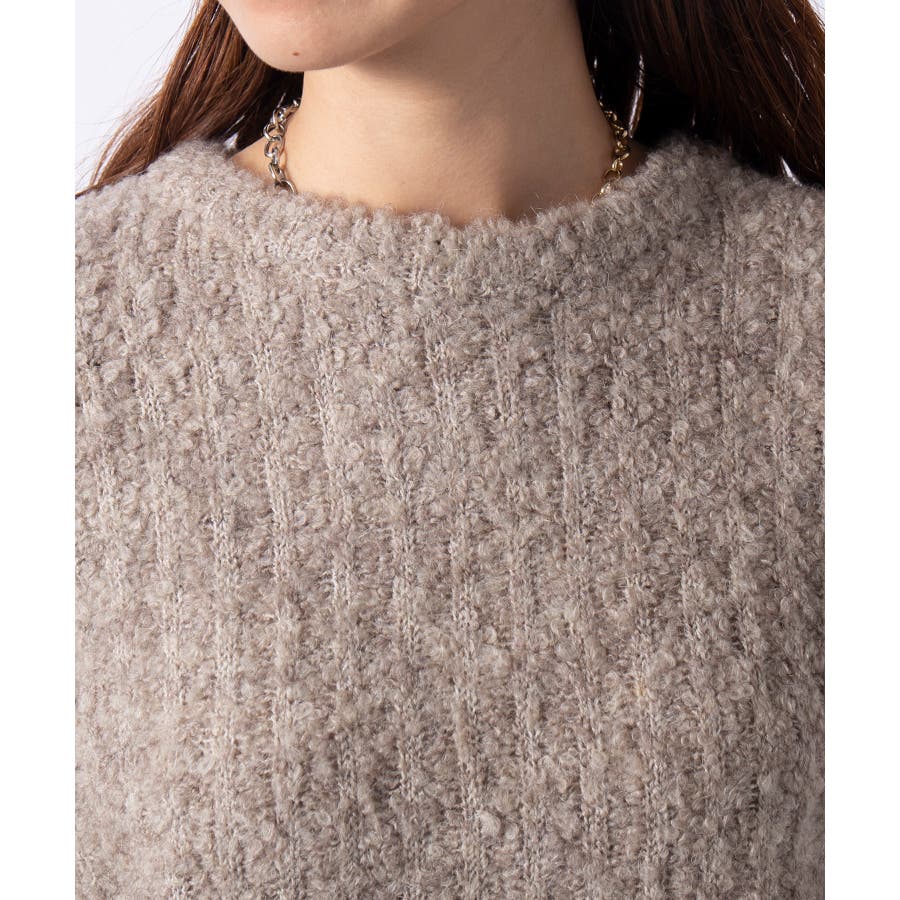 ふっくら程良くボリューミーなラウンドスリーブが手軽に着こなしのアクセントを造ってくれるブークレニットトップス。